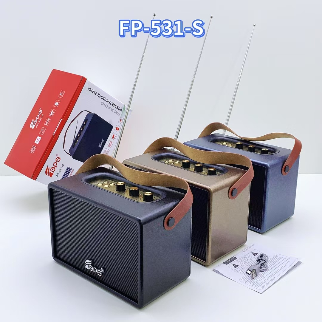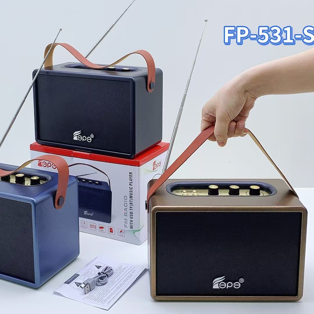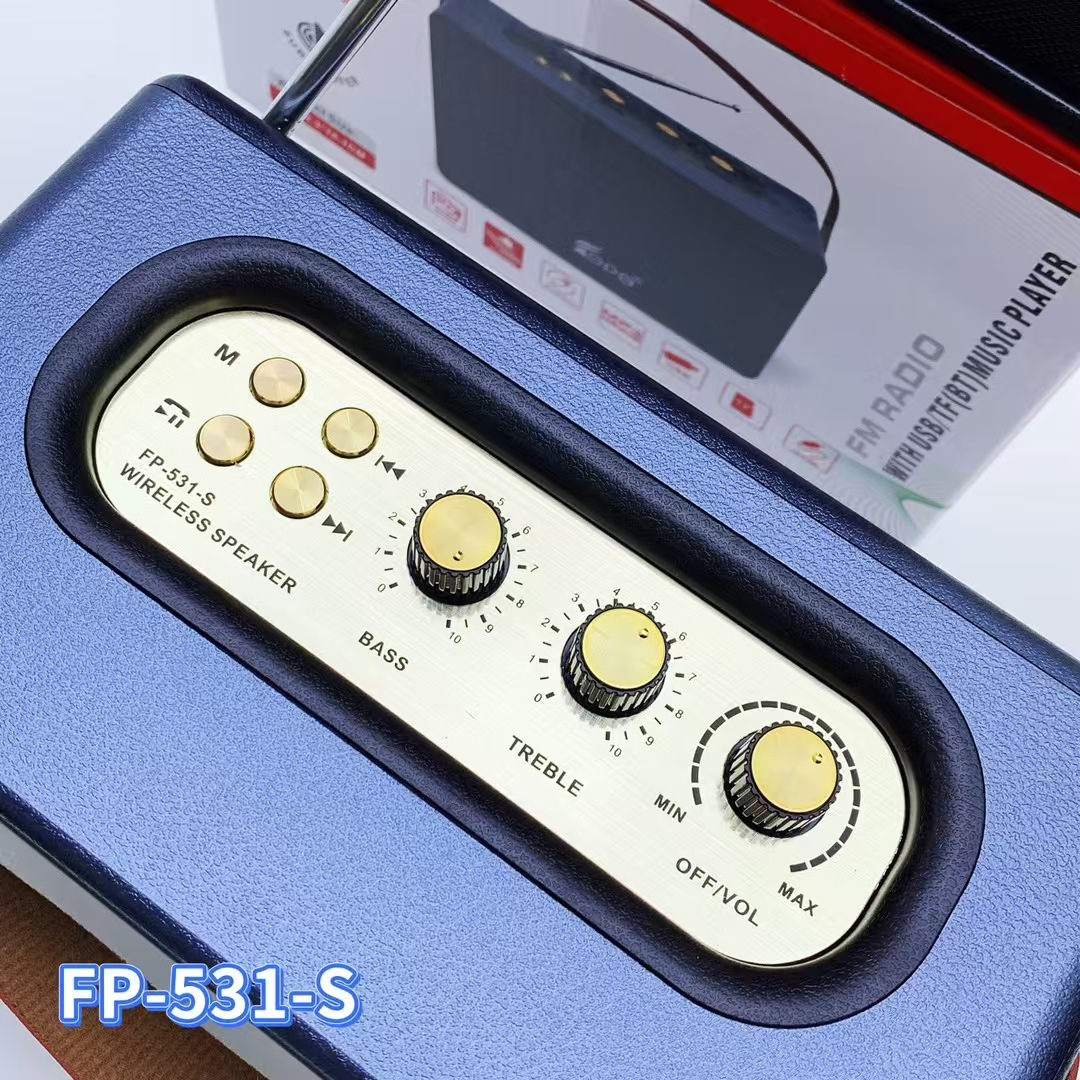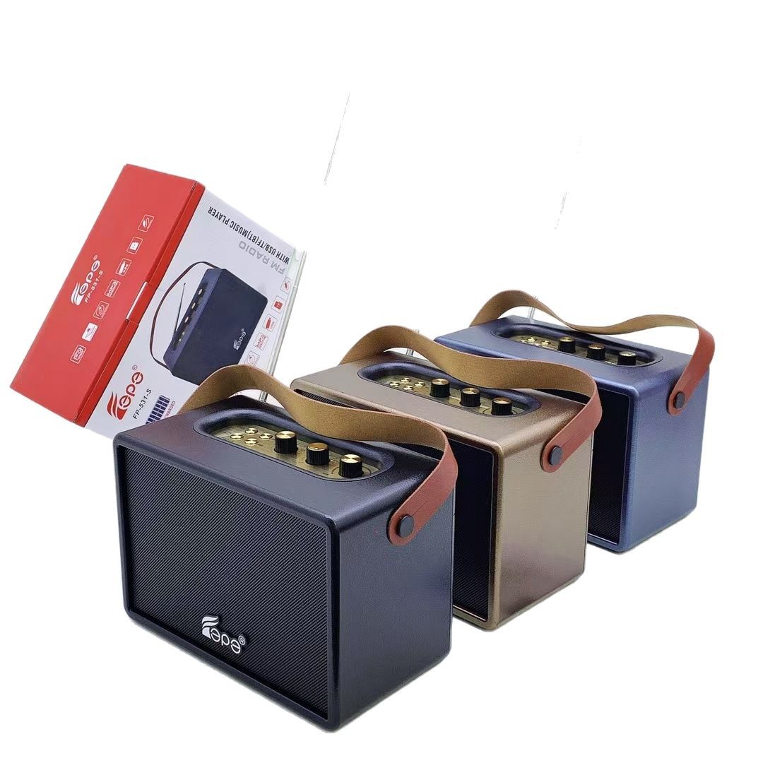 FP-531-S太阳能皮革复古收音机蓝牙音箱手提便携式户外无线低音炮