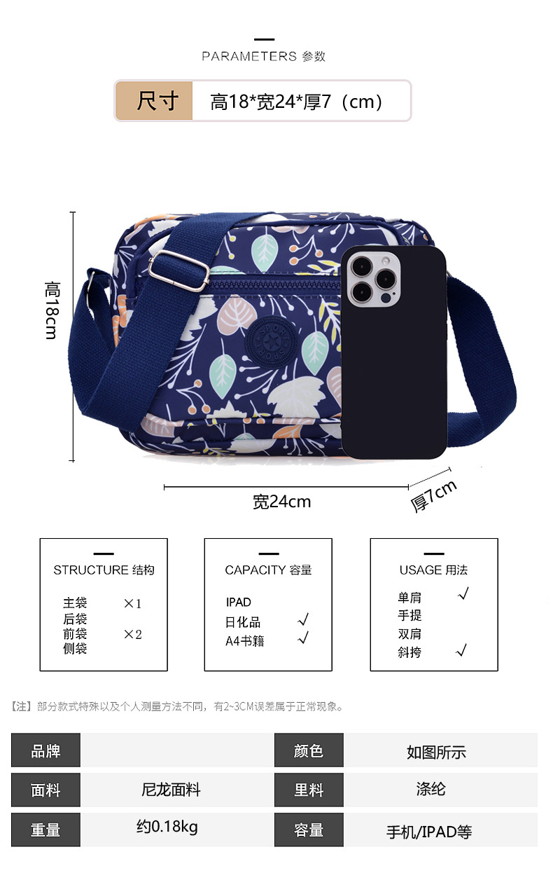 时尚韩版轻便印花小方包新款潮流休闲百搭单肩包多层收纳斜挎包女