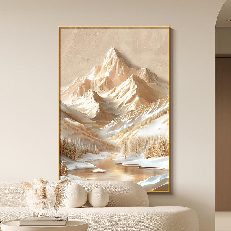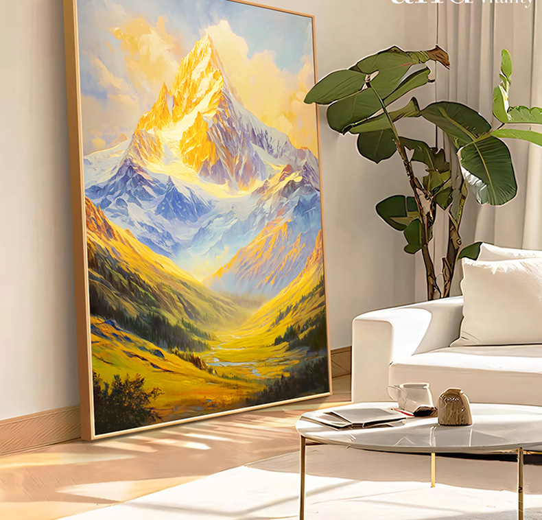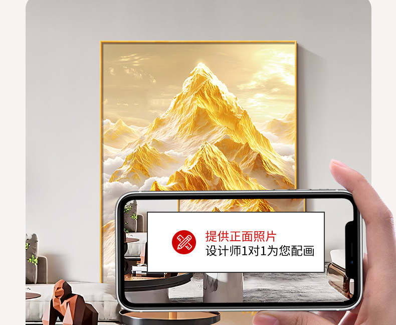 日照金山挂画客厅装饰画现代简约沙发落地画高级感背靠金山卧室画