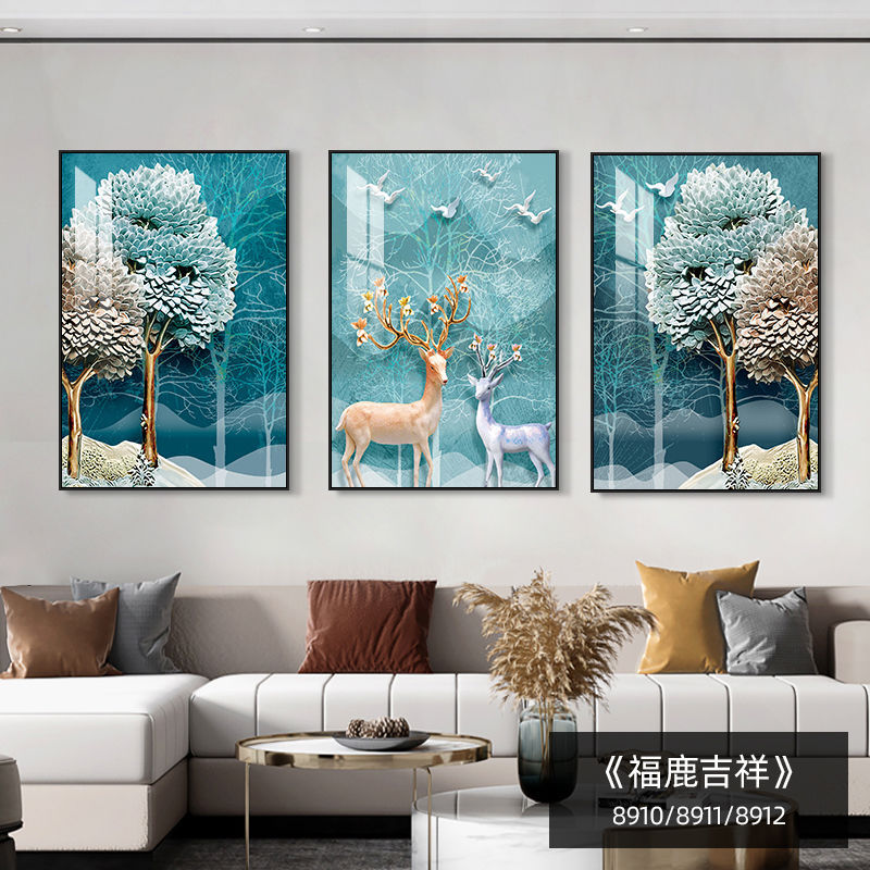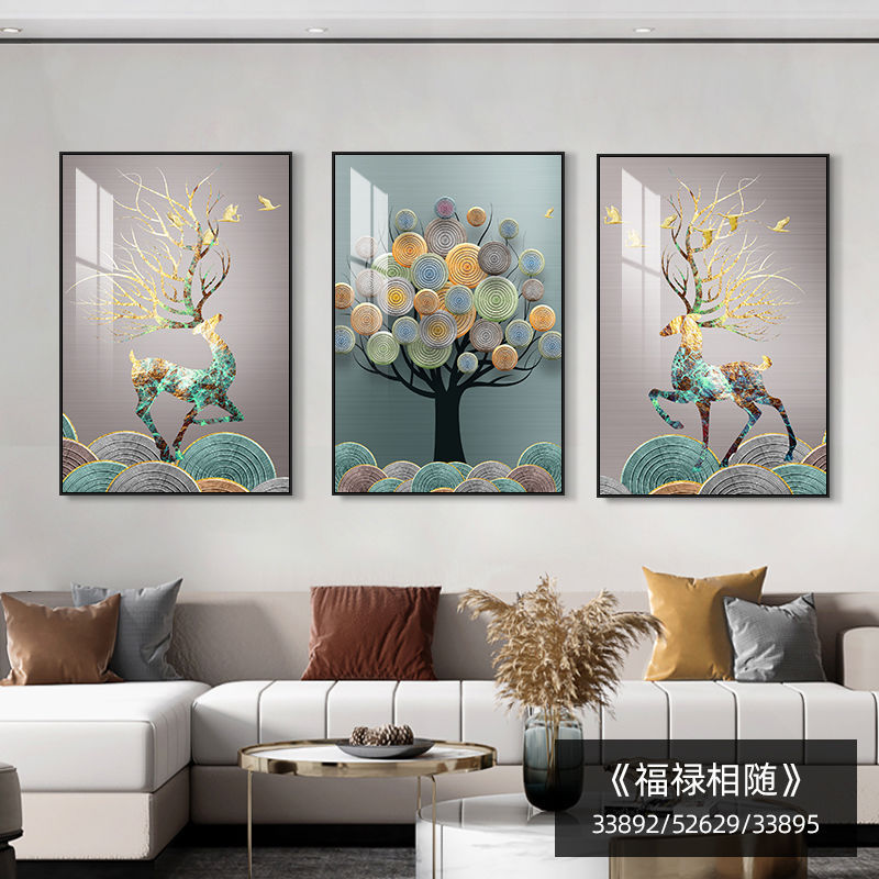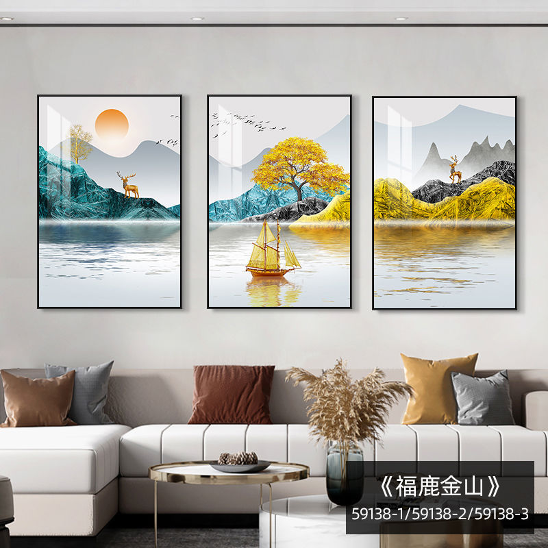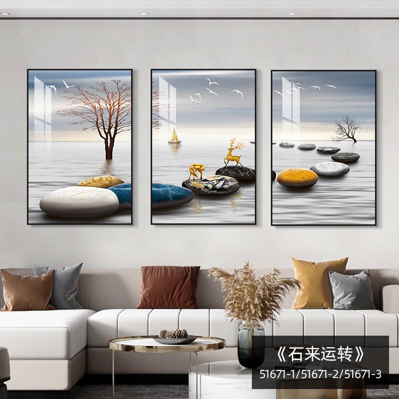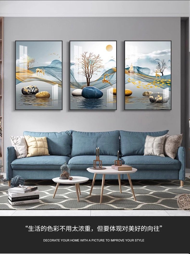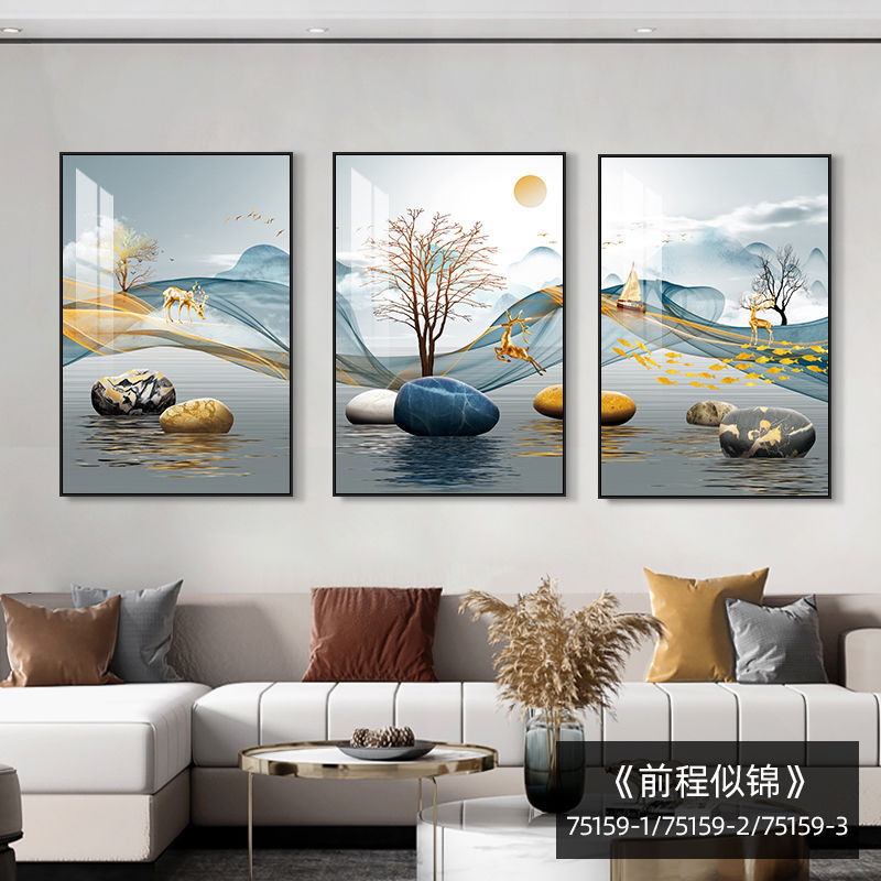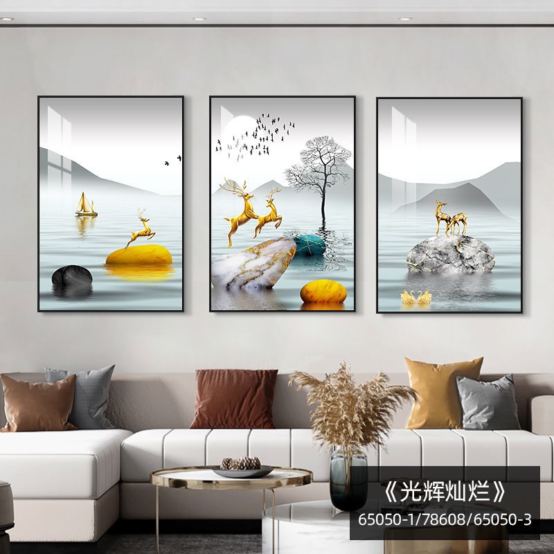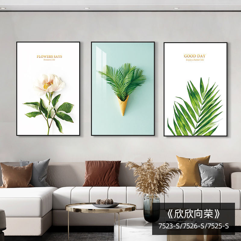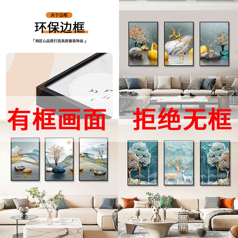 客厅三联装饰画现代简约沙发背景墙壁画餐厅卧室床头挂画免打孔