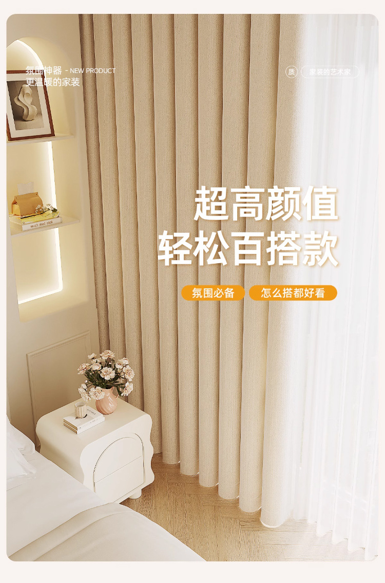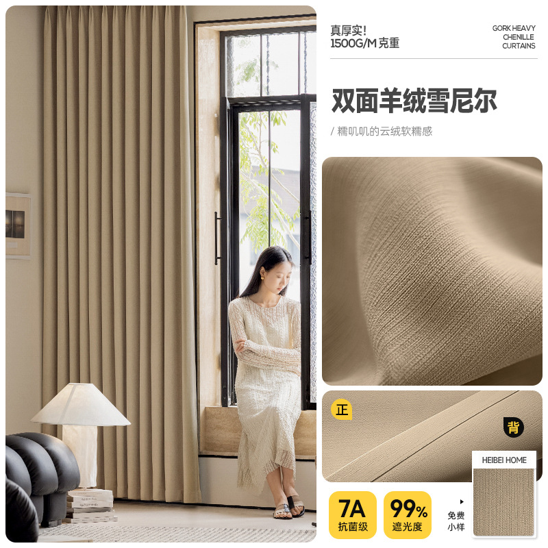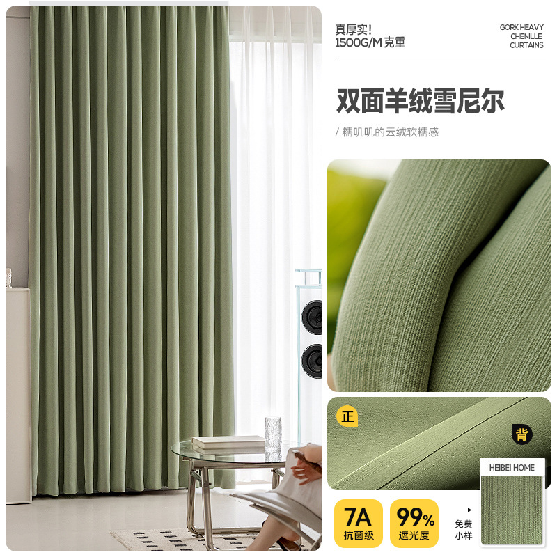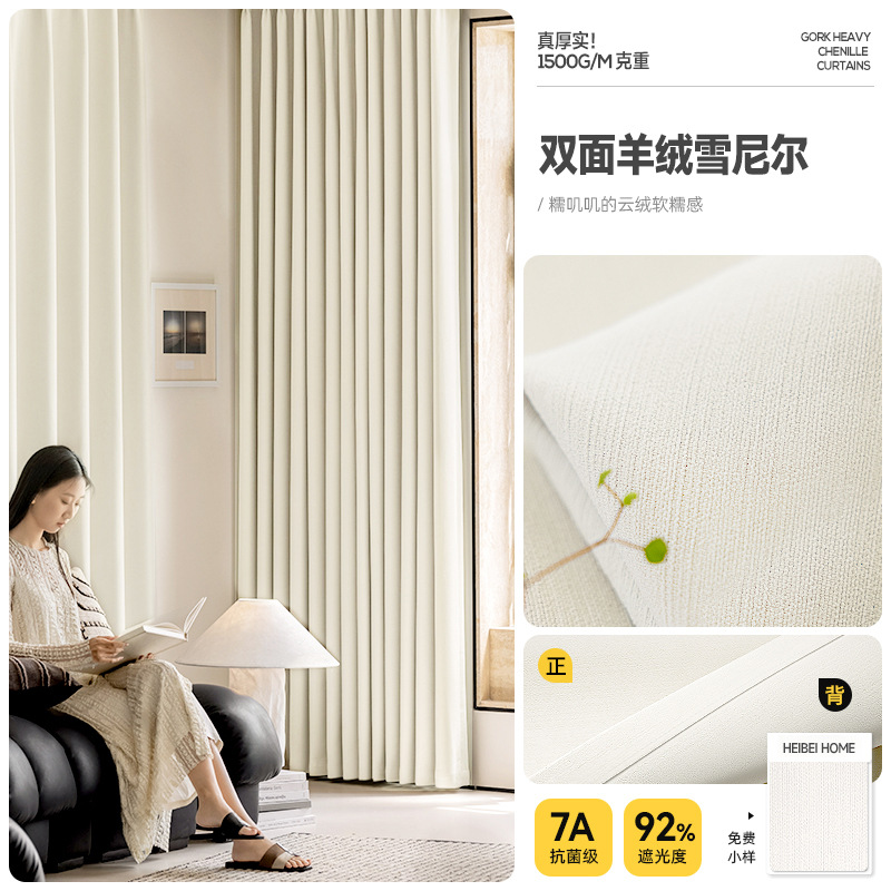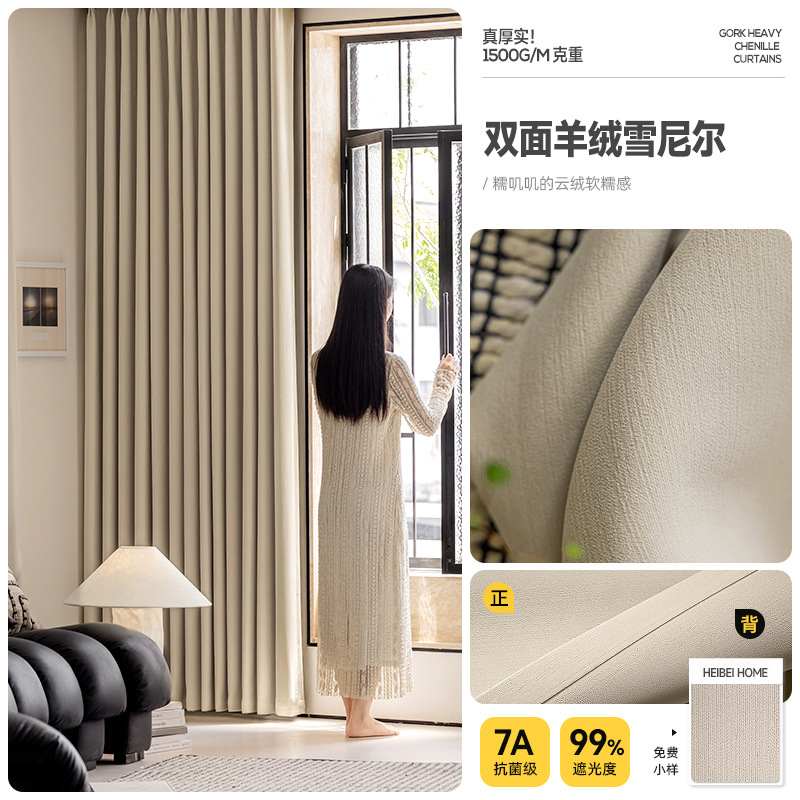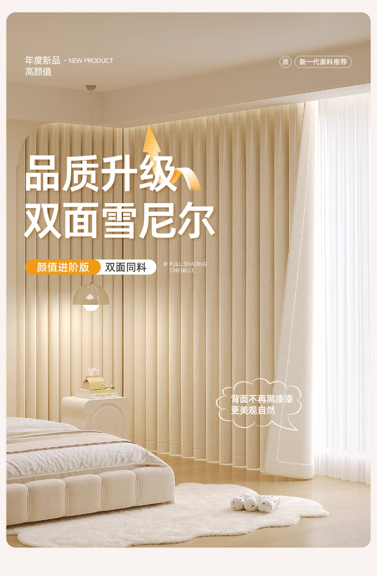新款羊绒双面雪尼尔窗帘遮光卧室奶油风绍兴柯桥全屋定制窗帘成品