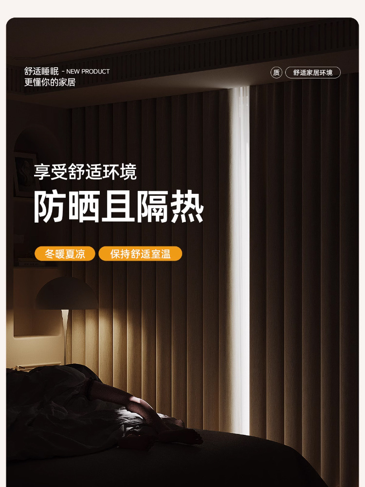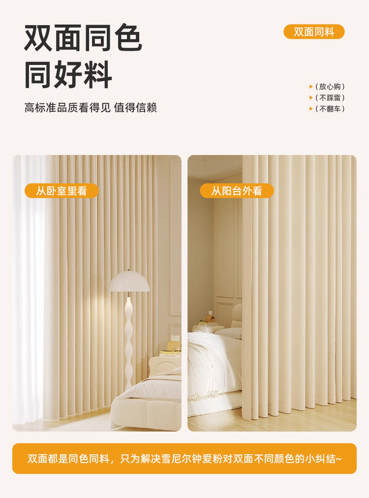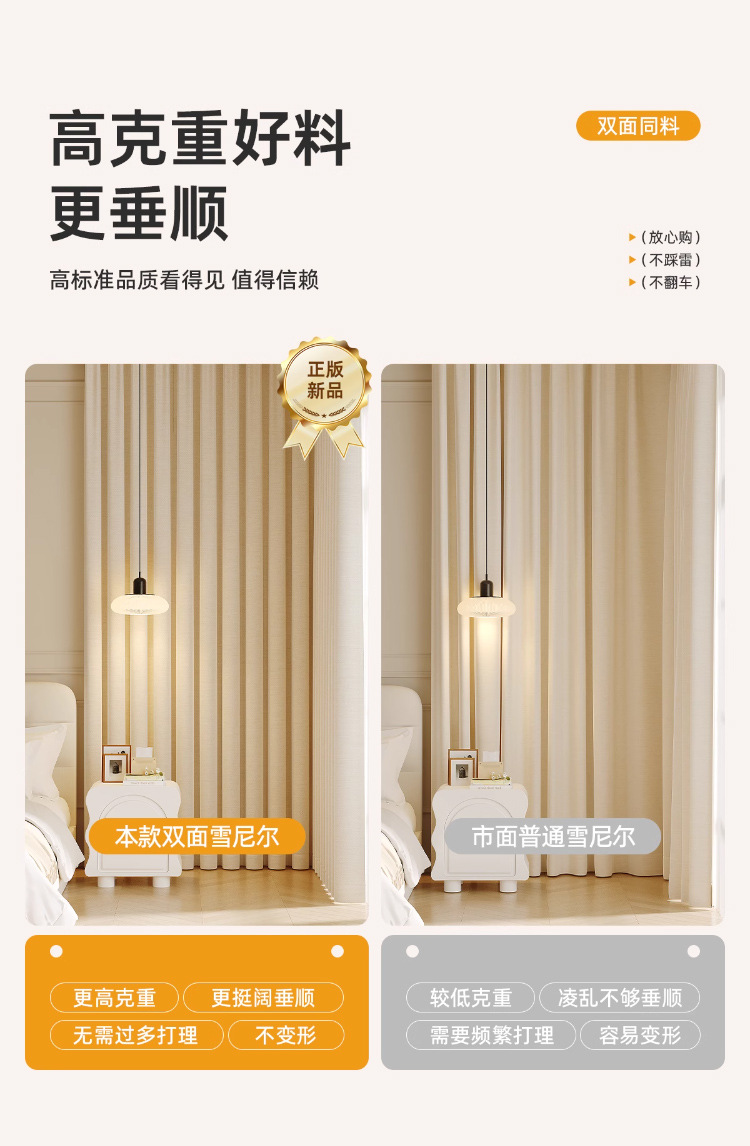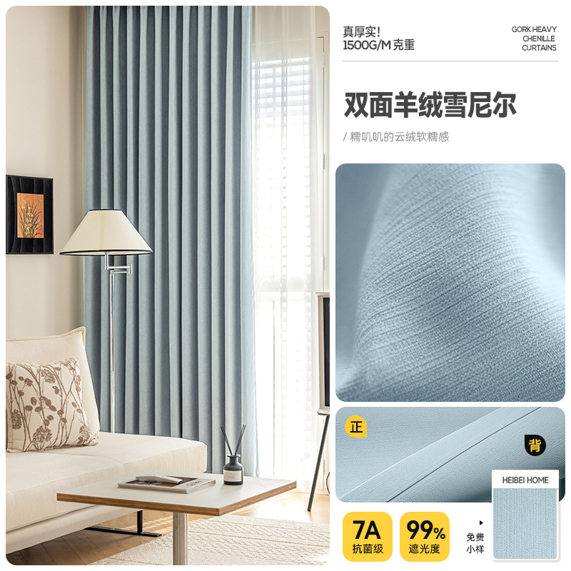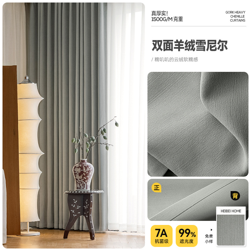 新款羊绒双面雪尼尔窗帘遮光卧室奶油风绍兴柯桥全屋定制窗帘成品