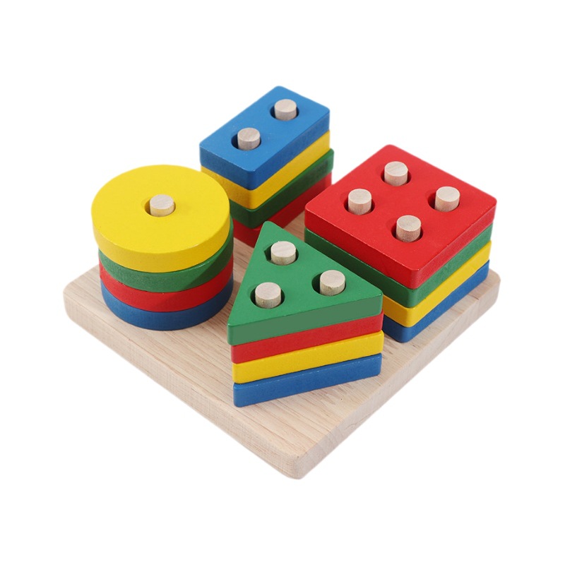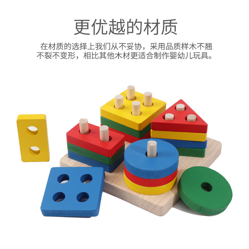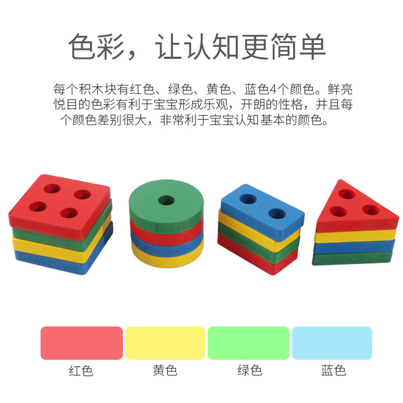 儿童益智拼装玩具 婴幼儿启蒙早教四套柱宝宝形状配对积木玩具