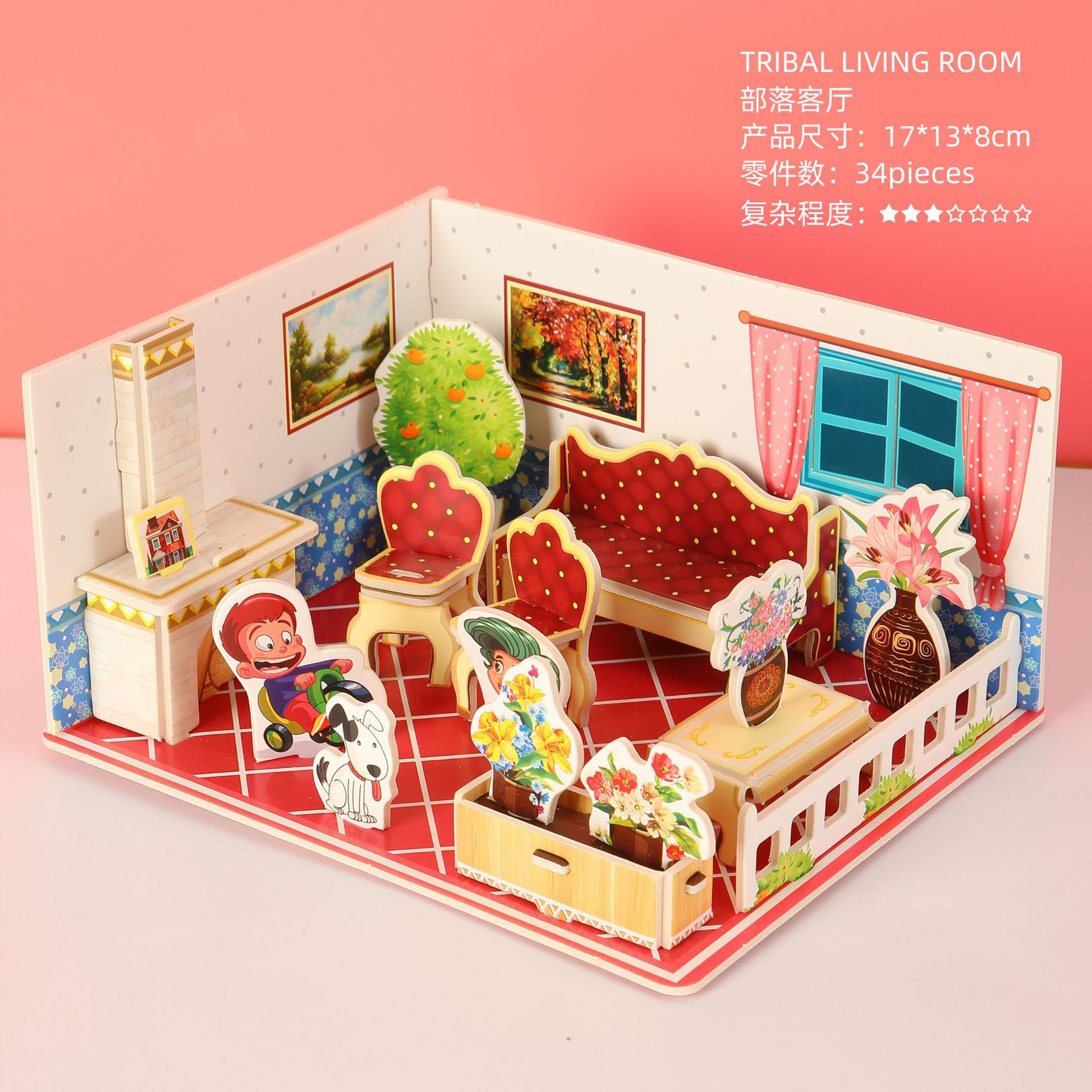 儿童立体拼图批发3d模型亲子互动益智纸质拼装房子玩具男女孩礼物