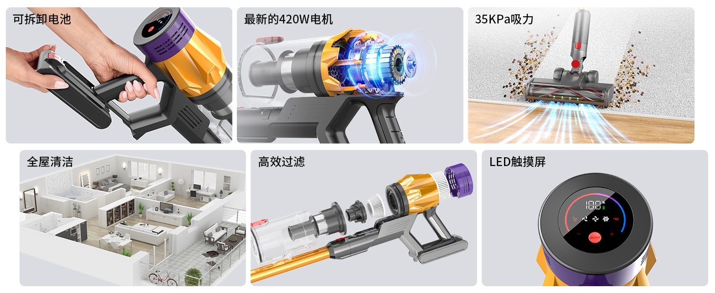 跨境吸尘器无线手持式家用420W35Kpa大吸力大功率地毯清洁吸尘器