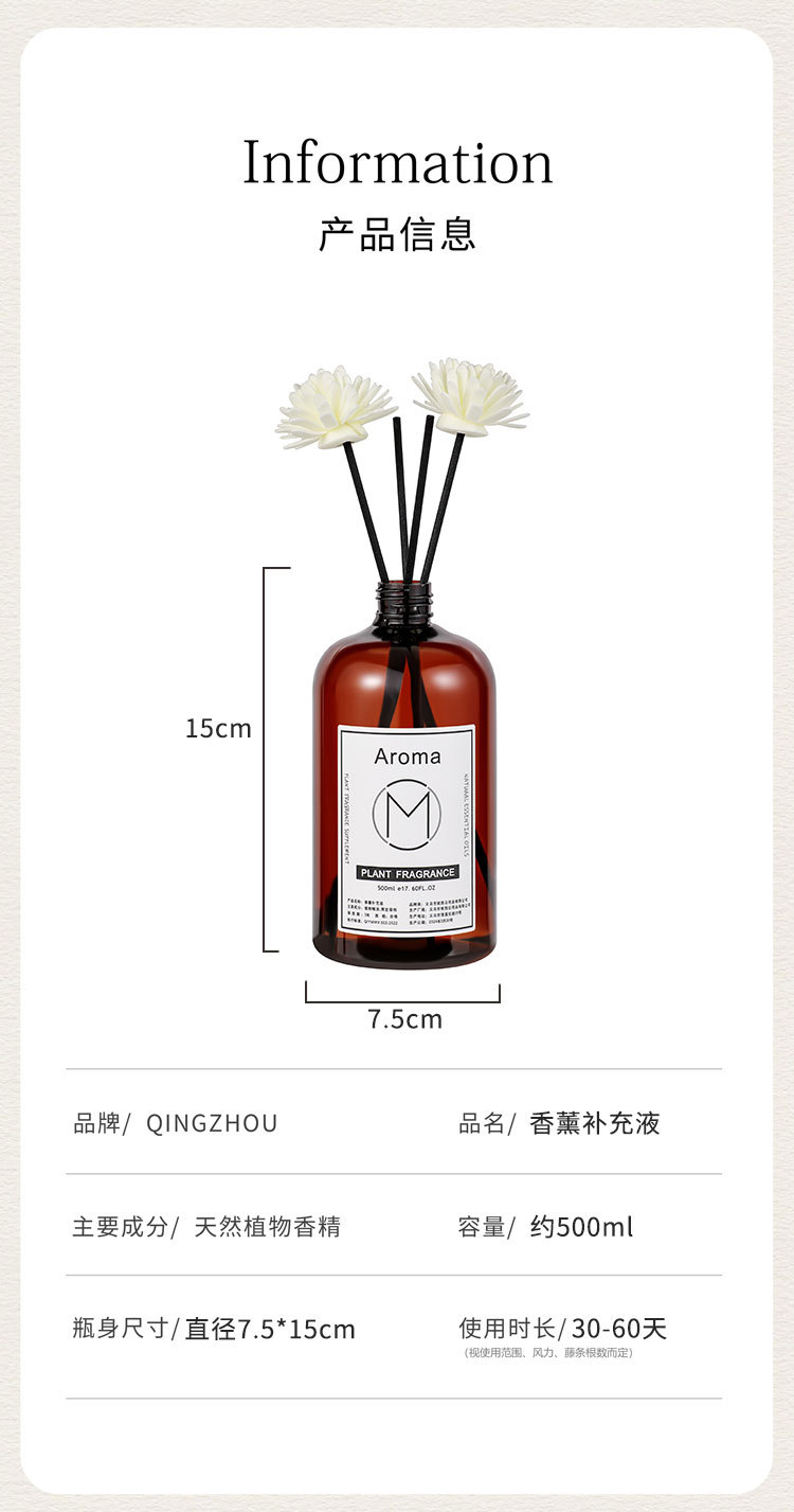 | 500ml free 4 volatile sticks +2 pe flowers(500ml 赠4根挥发棒+2朵PE花) | USD $0.0 | 15298 bottle available |