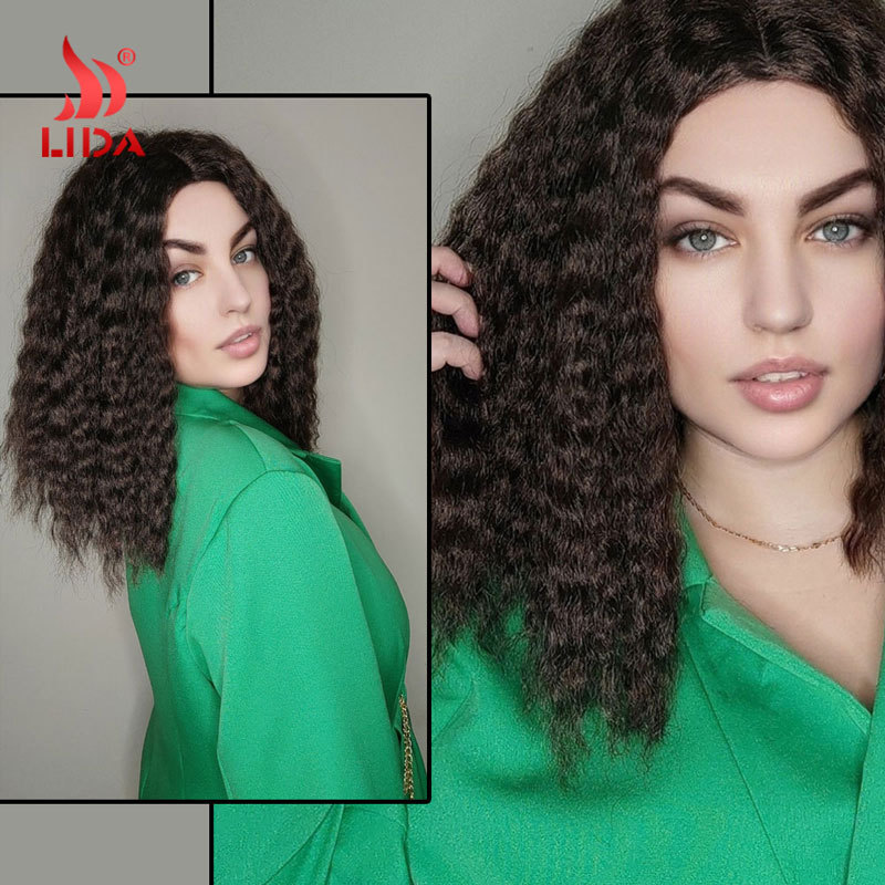 亚马逊假发欧美化纤机制头套中分长卷发Afro curly 厂家LIDA