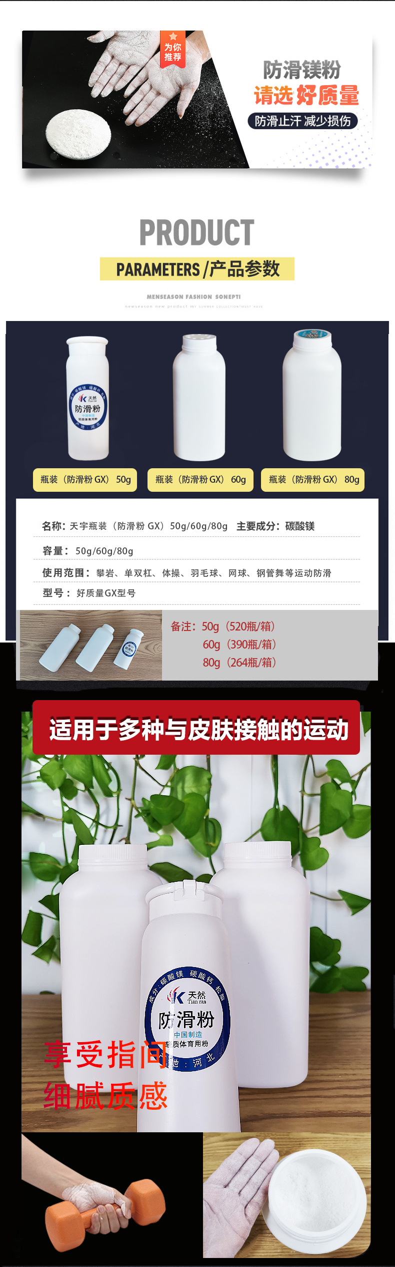 金宇防滑粉50g60g80g瓶装攀岩引体向上体育专用镁粉健身止滑粉