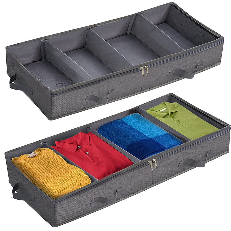外贸透明盖防尘储物盒手提鞋子被子衣物收纳箱4格折叠床底收纳盒