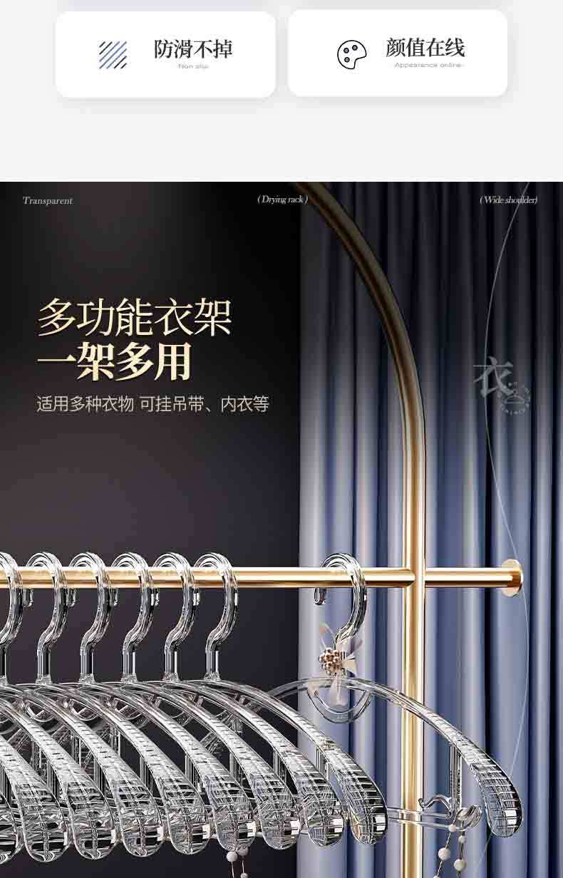 【用坏包赔】透明衣架宽肩无痕家用挂衣架子服装店水晶衣服架衣撑