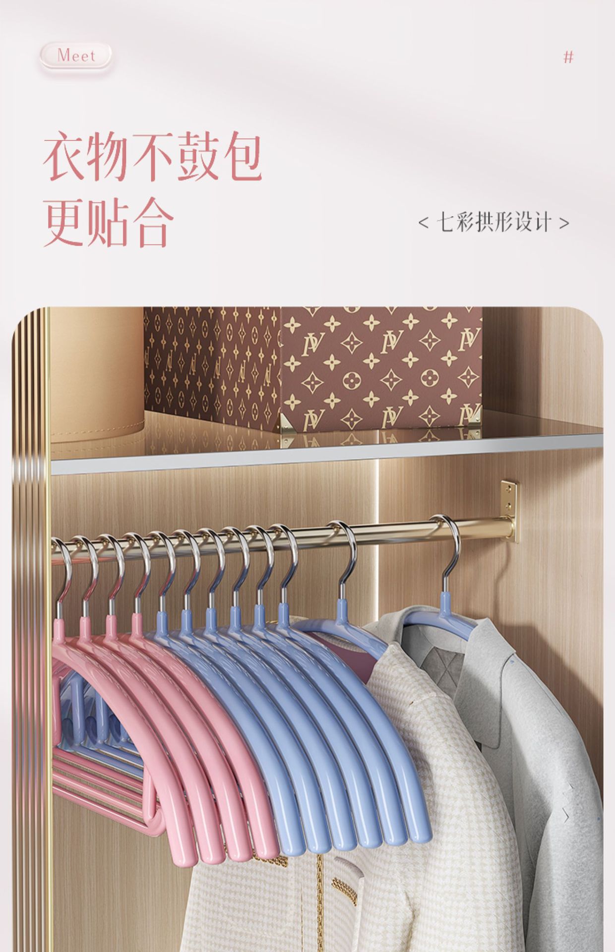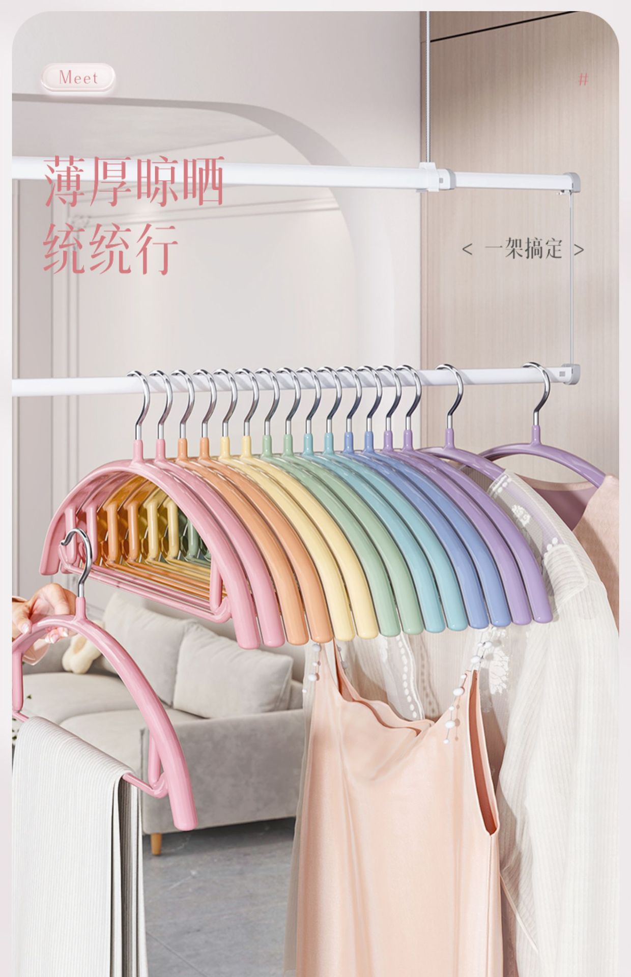 衣架轻奢家用挂衣无痕彩虹衣撑防滑衣服收纳架多功能晾晒衣架批发