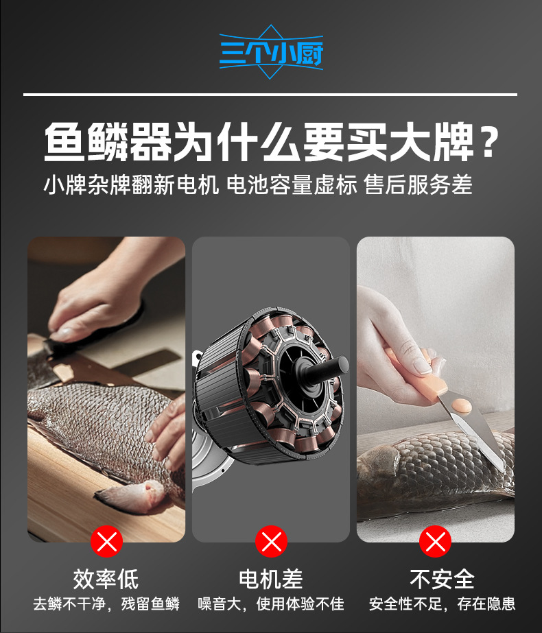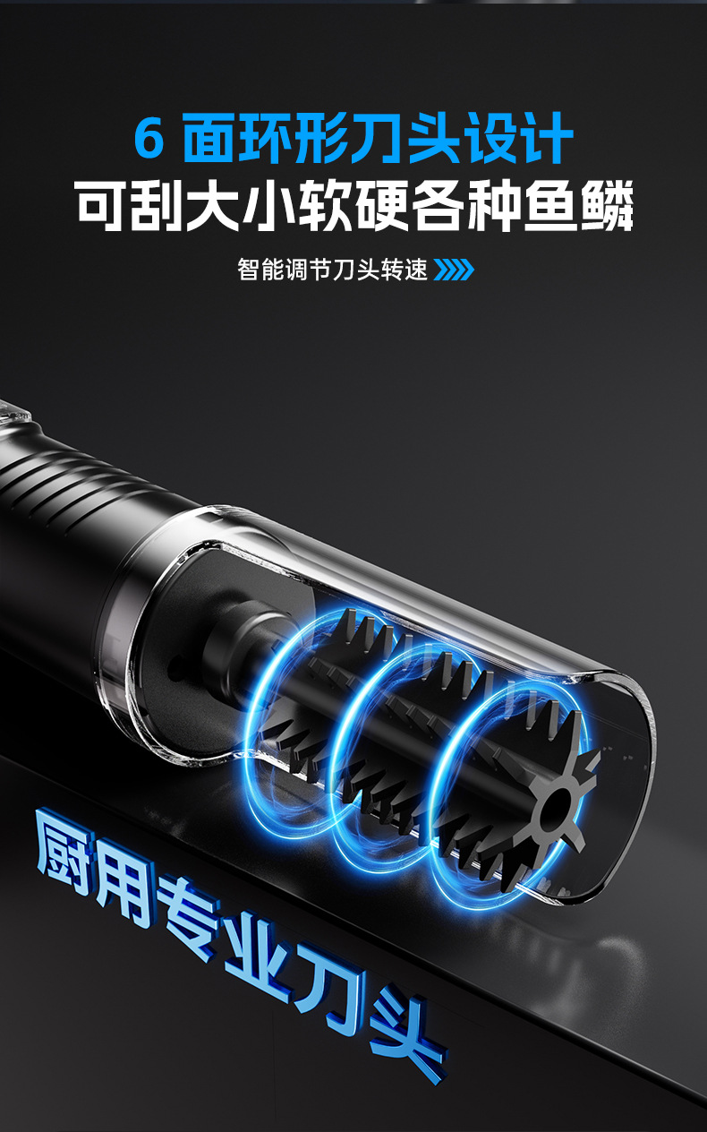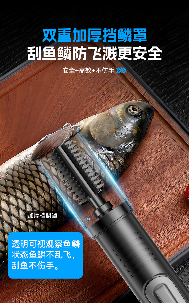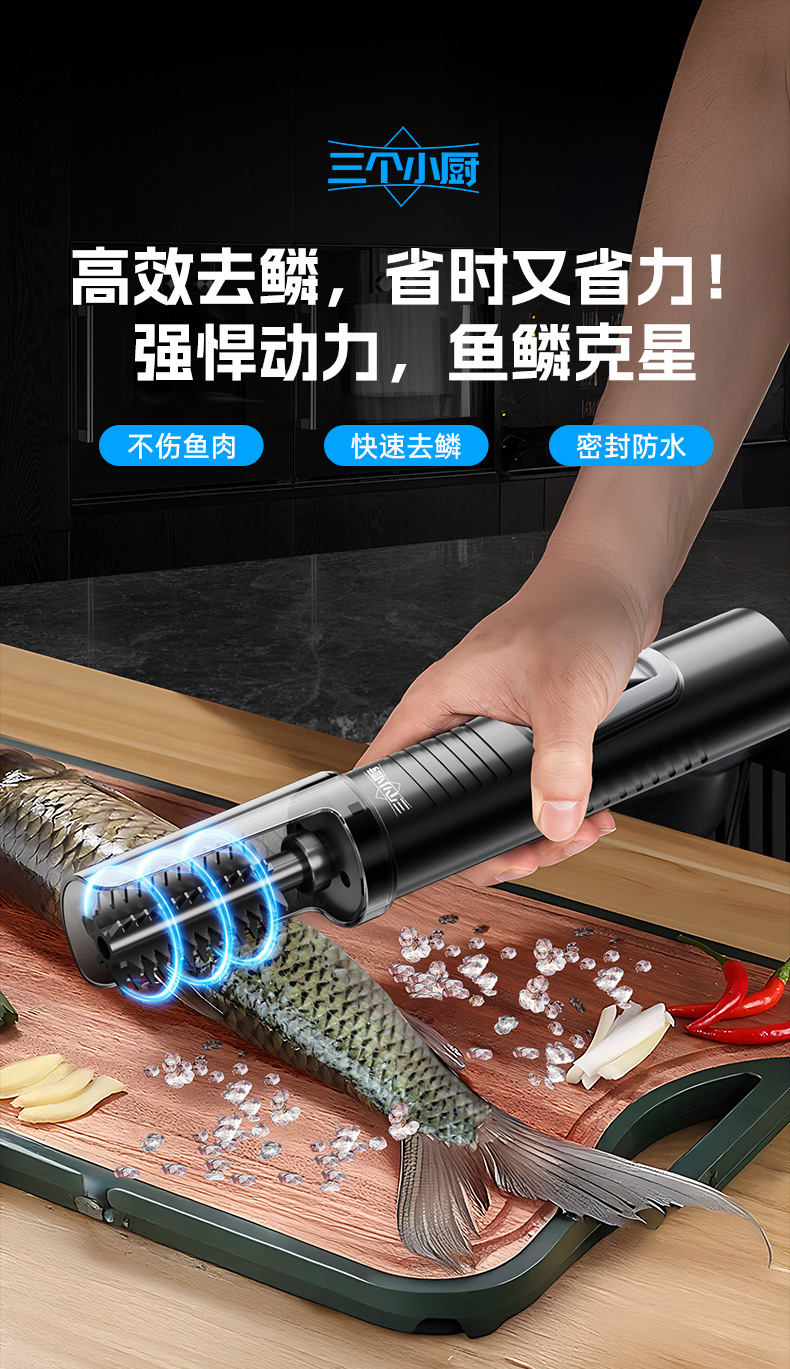 三个小厨无线电动刮鱼鳞机器神全自动打刨鱼鳞家用商用打杀鱼工具