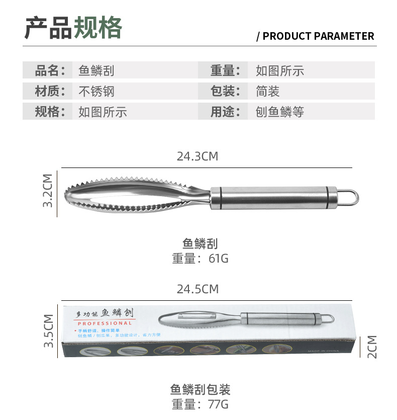 现货批发不锈钢鱼鳞刨304加厚鱼鳞刮鱼器多功能刷鱼刨刀厨房工具