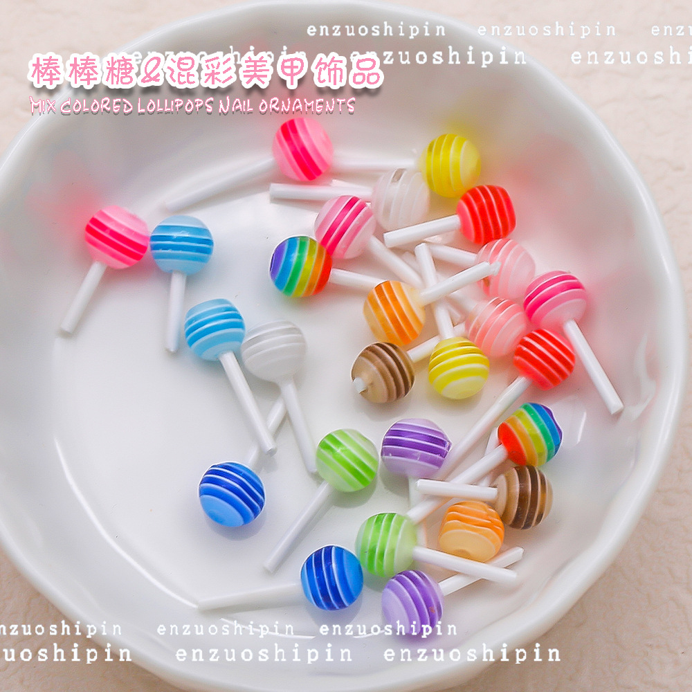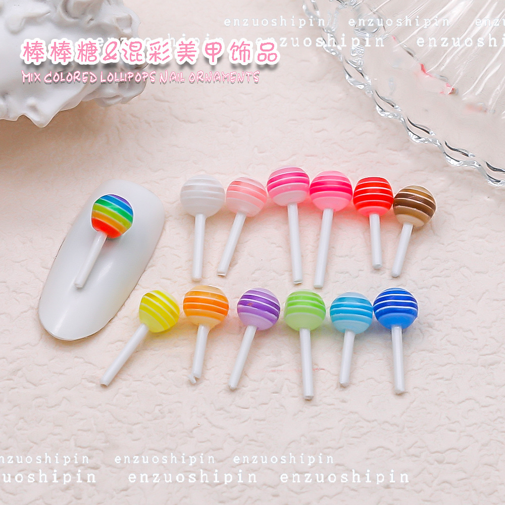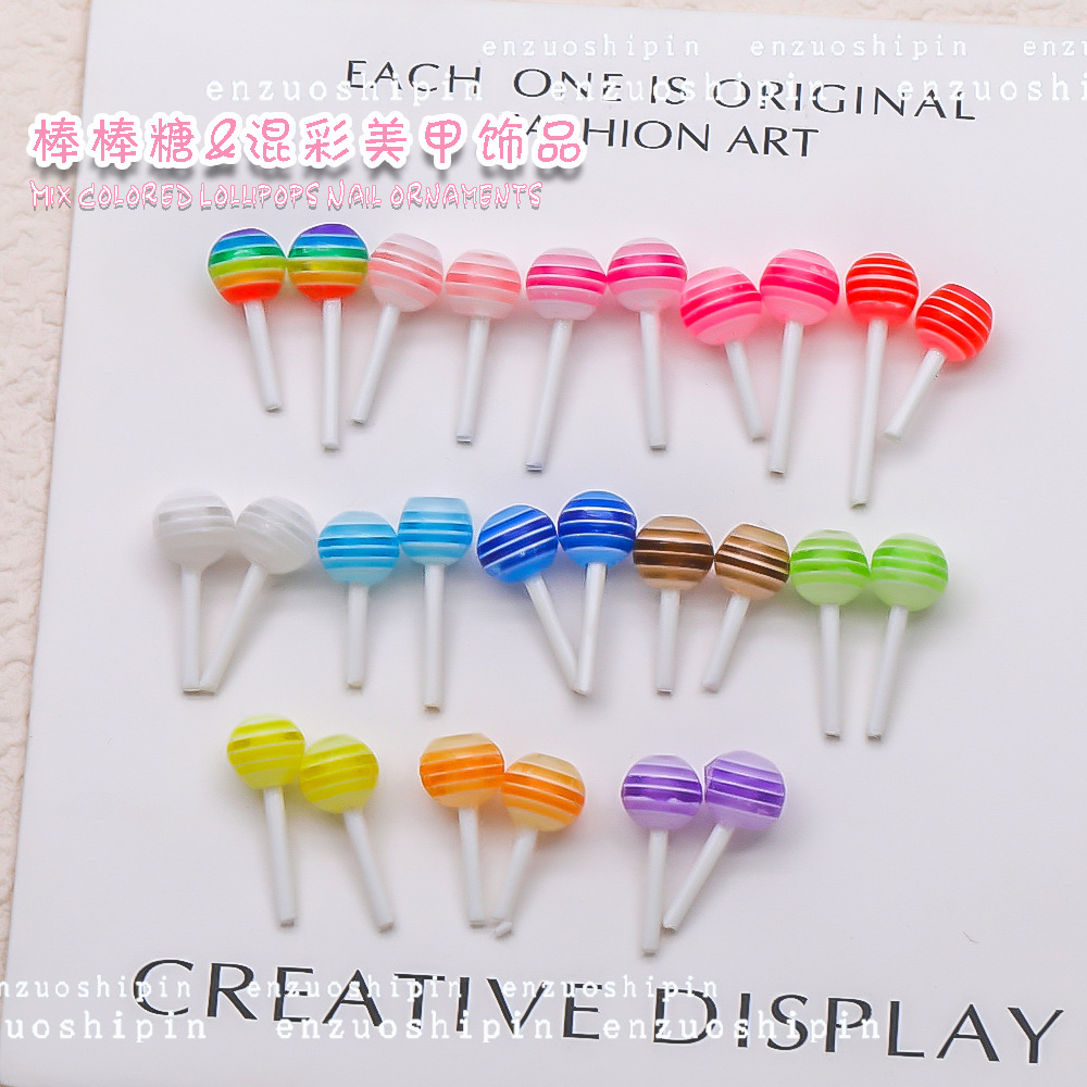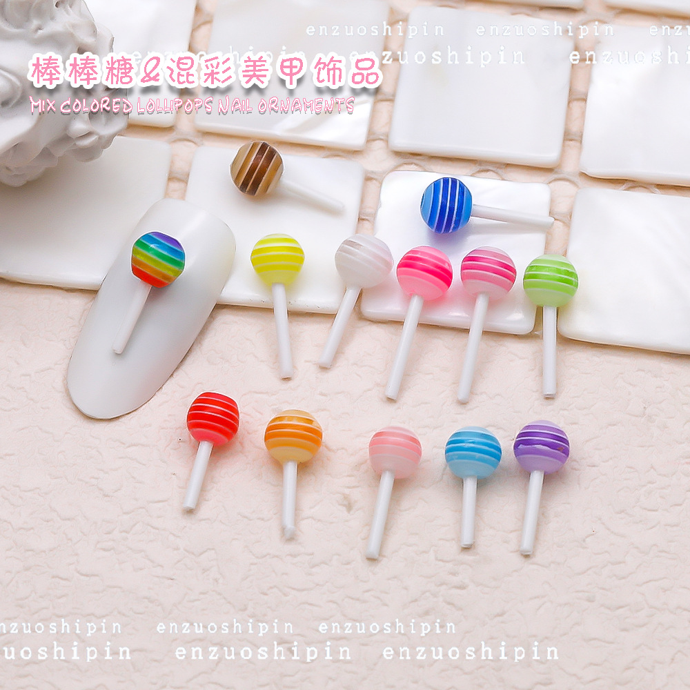网红新款美甲棒棒糖饰品可爱迷你款混色小号彩色3D立体指甲装饰