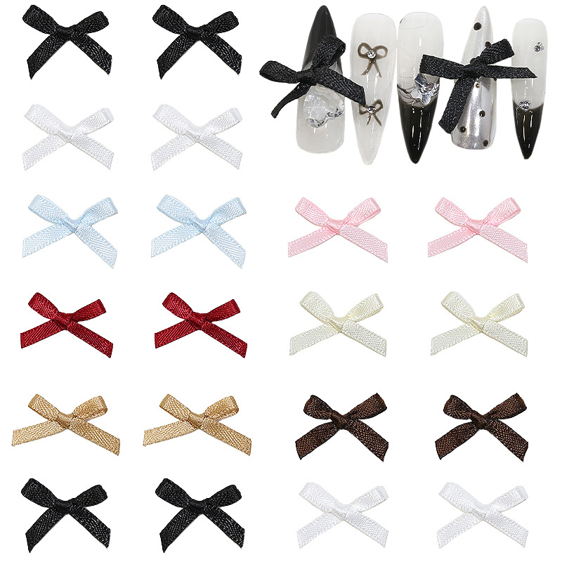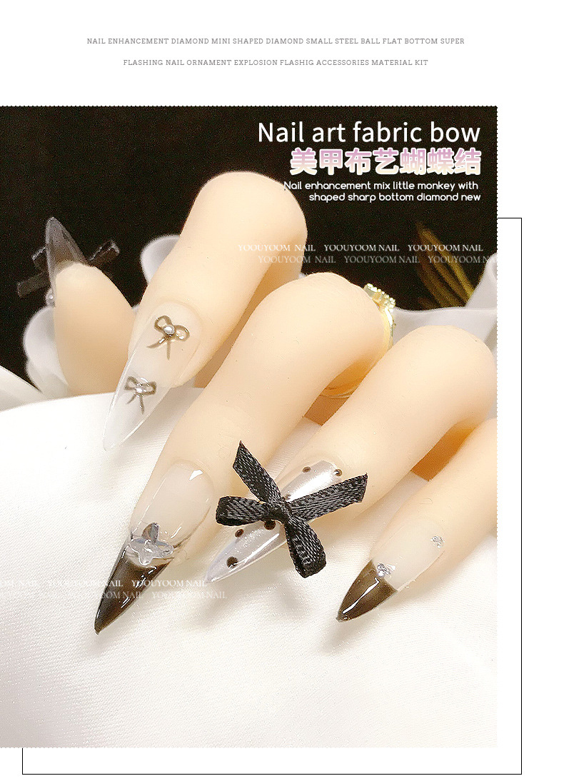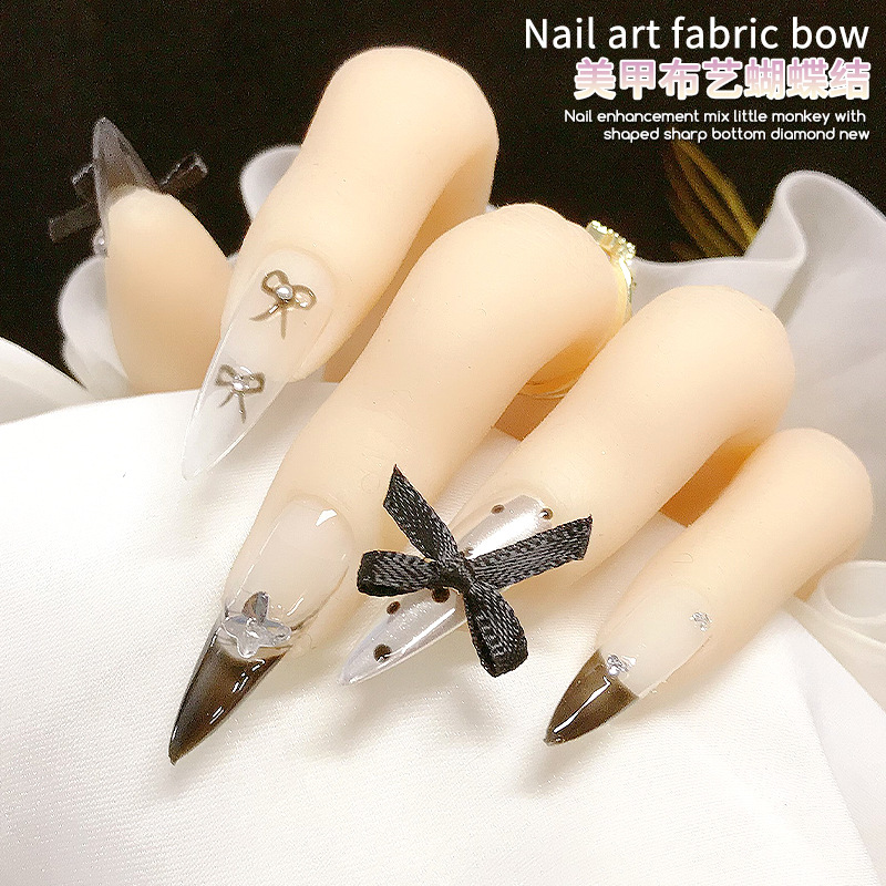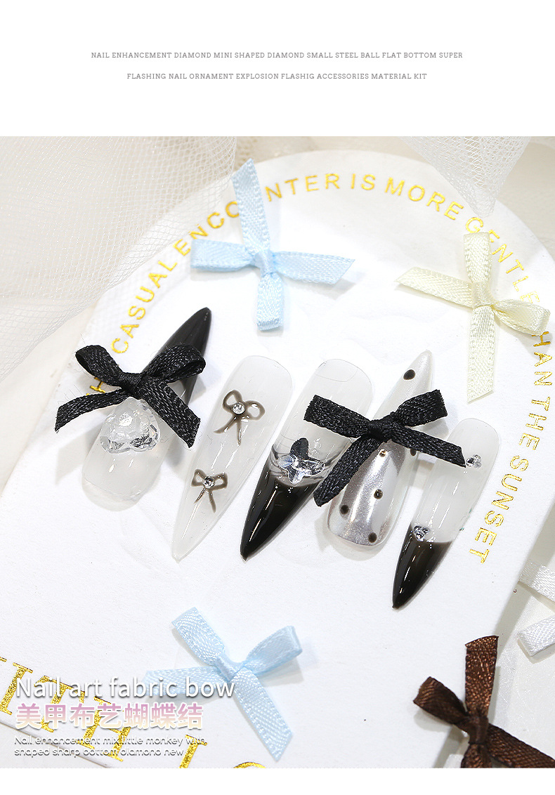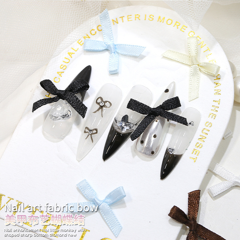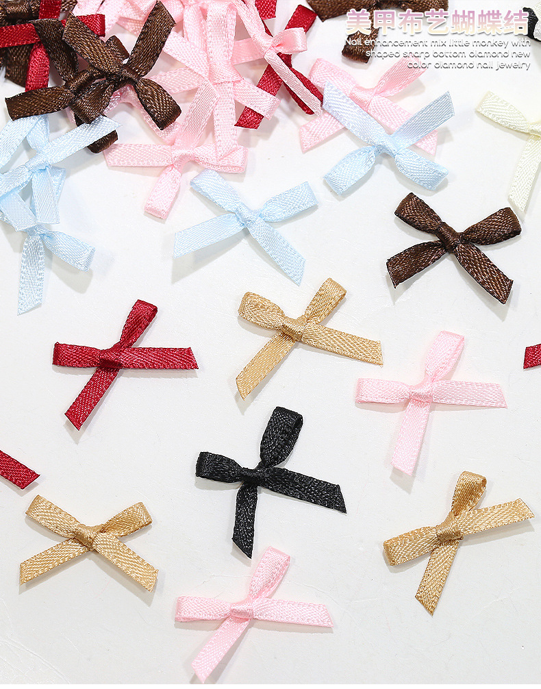 网红芭蕾舞鞋蝴蝶结美甲饰品新款仙女风彩色丝带布艺指甲配饰批发