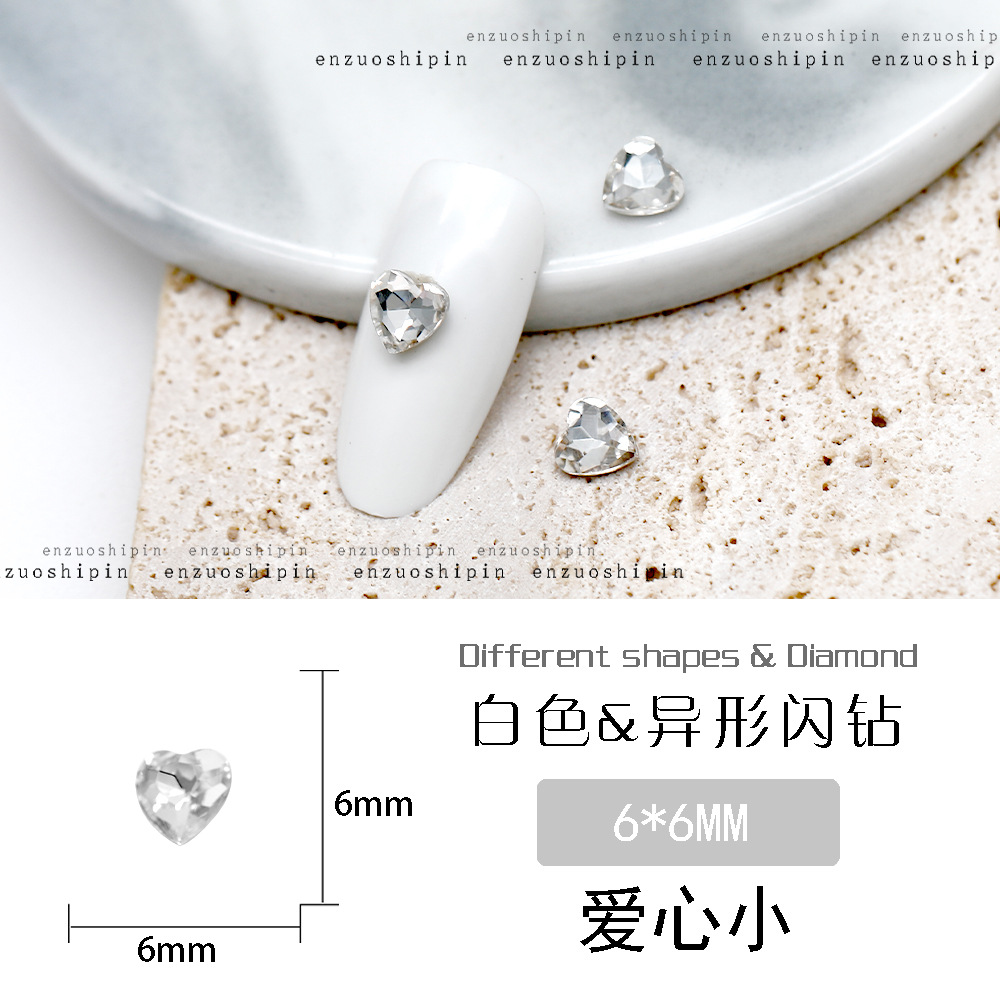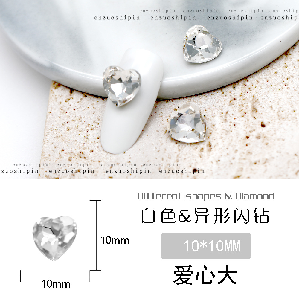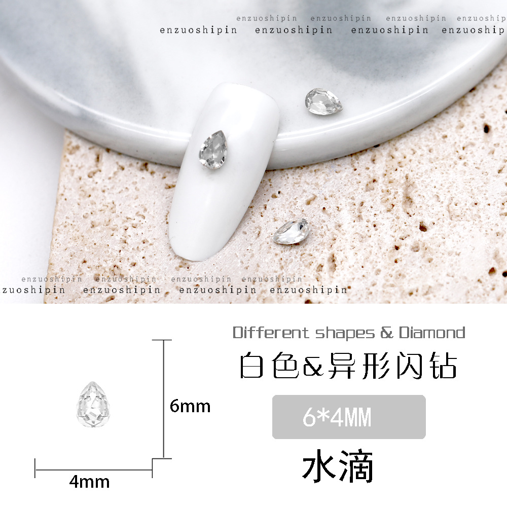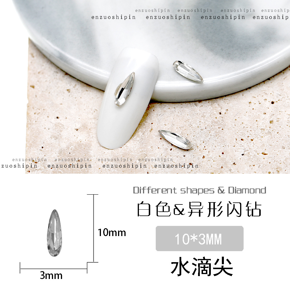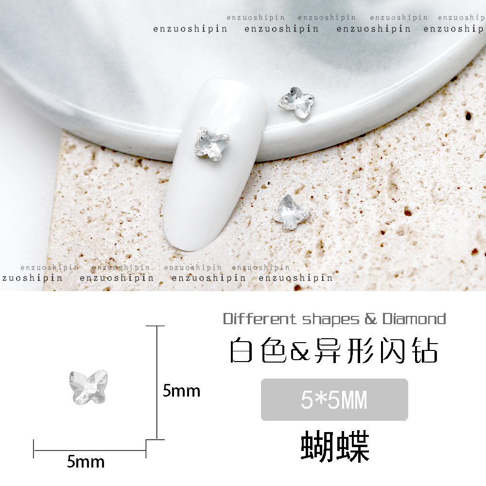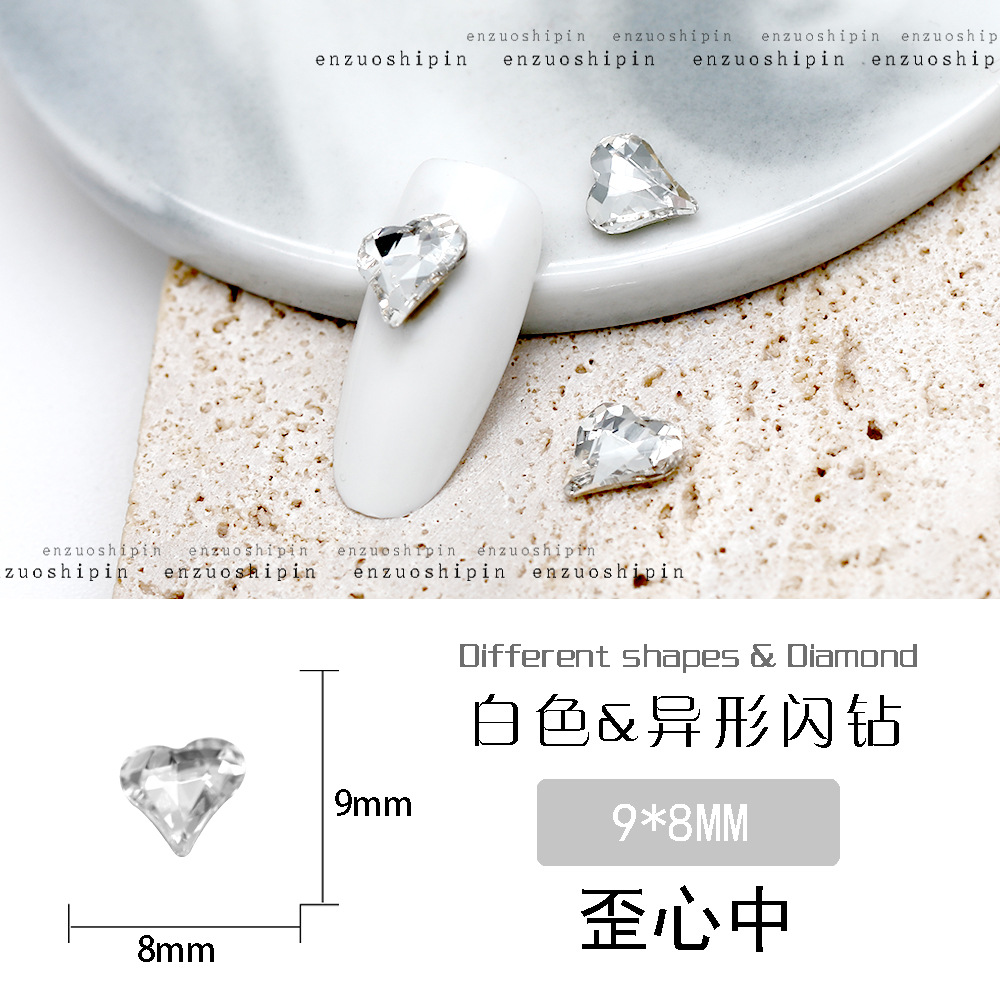 批发美甲饰品透明大钻尖底超闪歪心斧头水滴肥方蝴蝶白钻指甲配饰