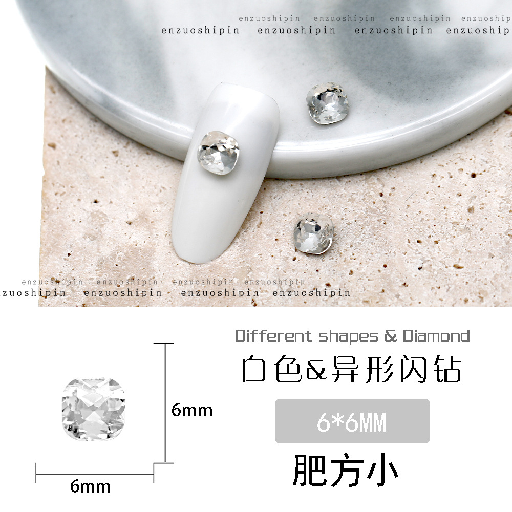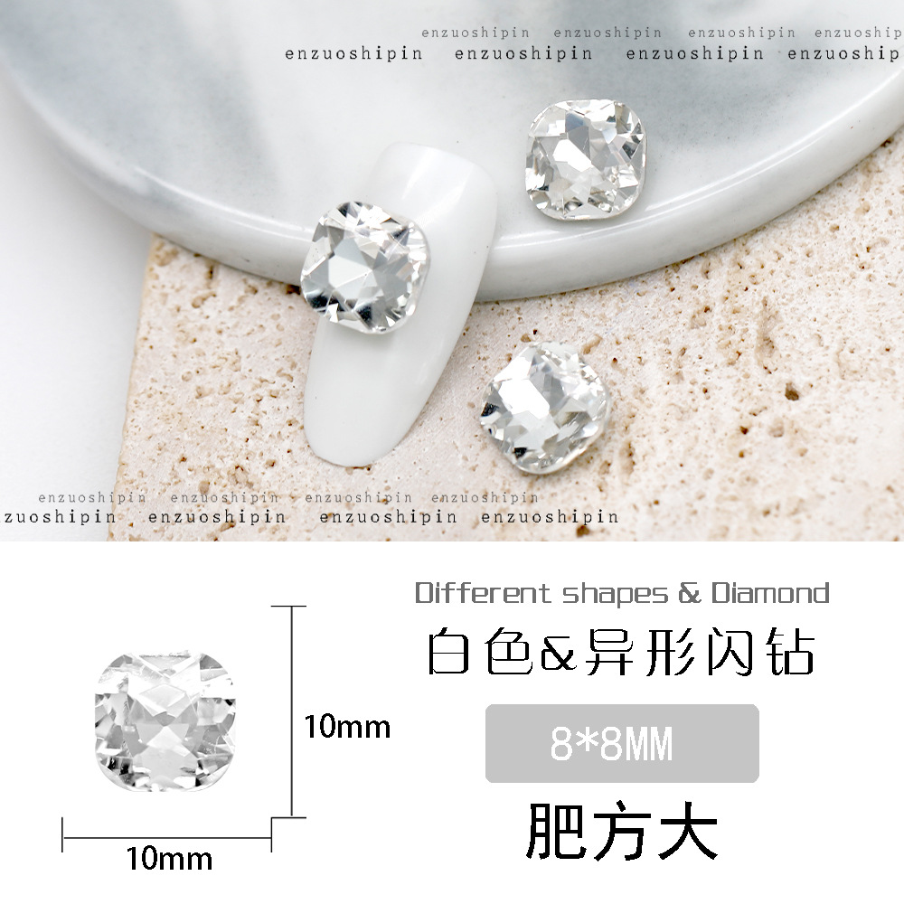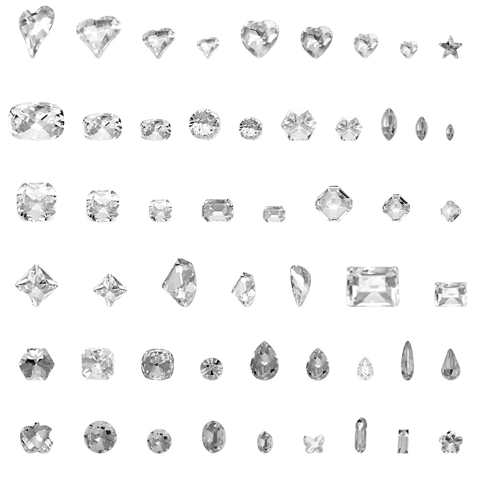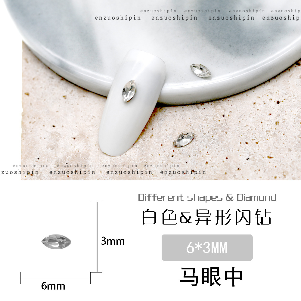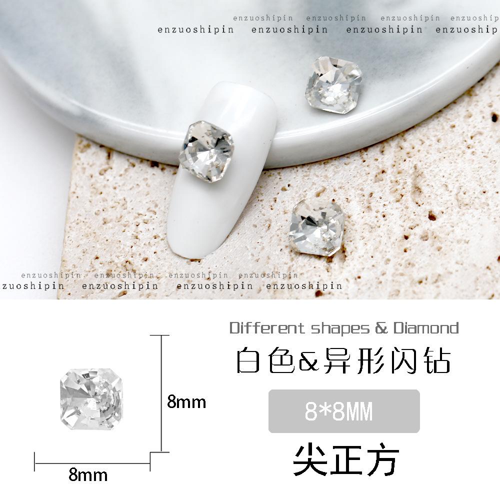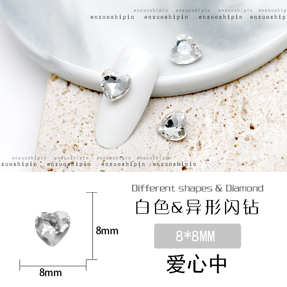 批发美甲饰品透明大钻尖底超闪歪心斧头水滴肥方蝴蝶白钻指甲配饰