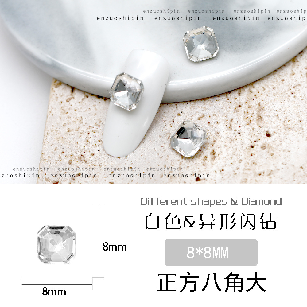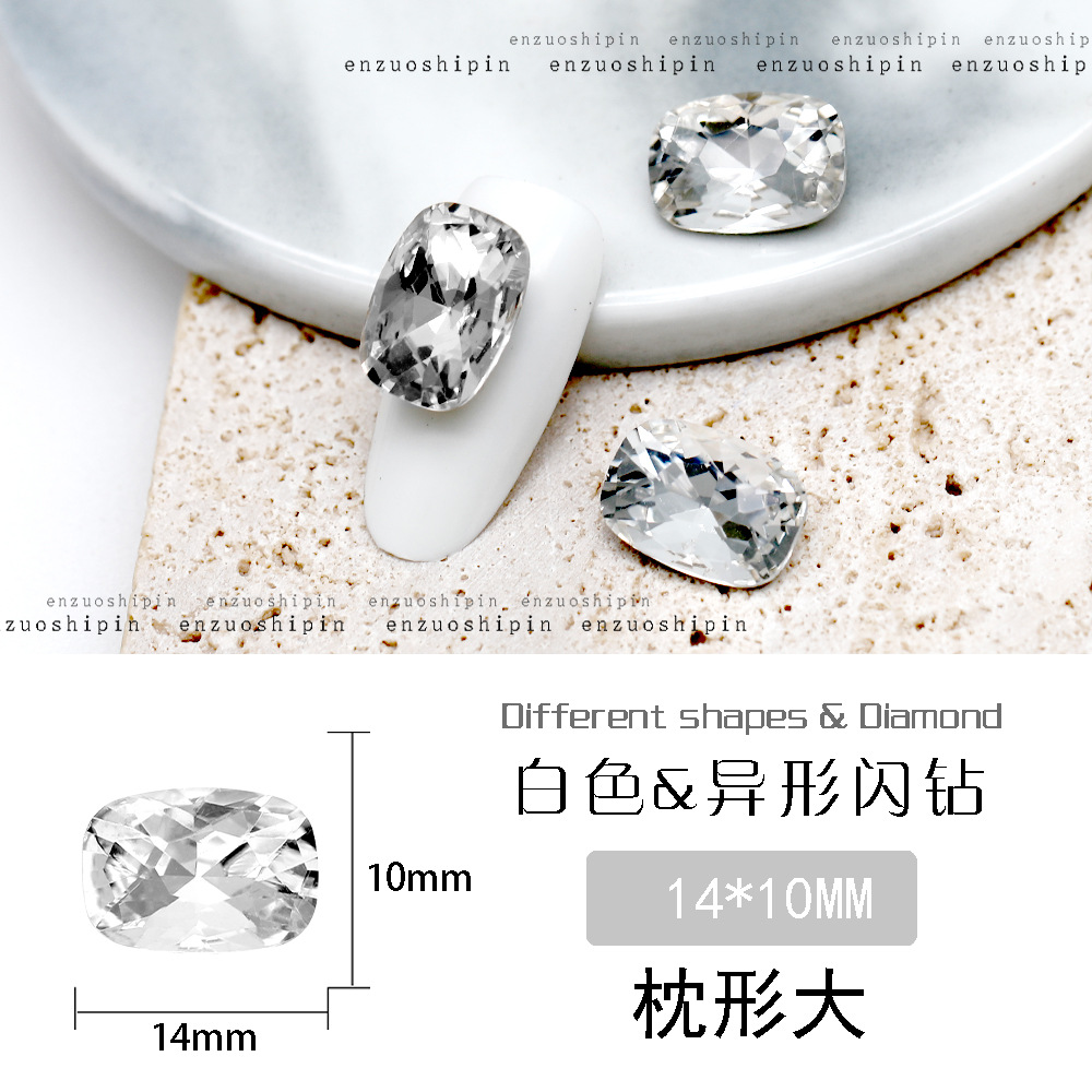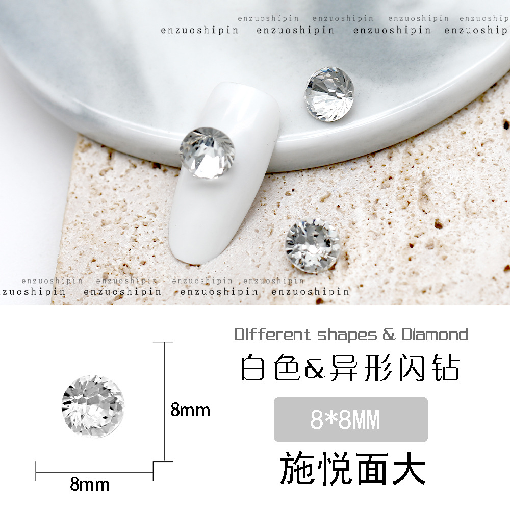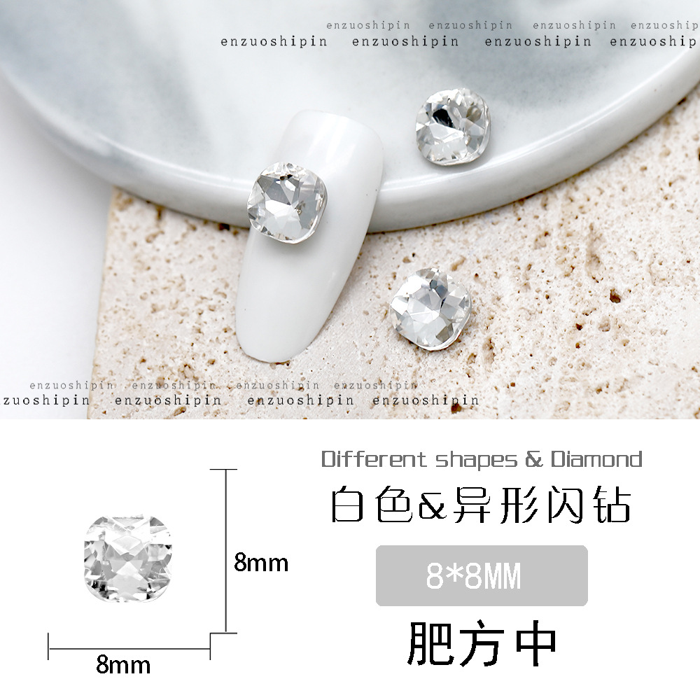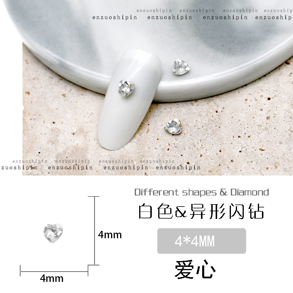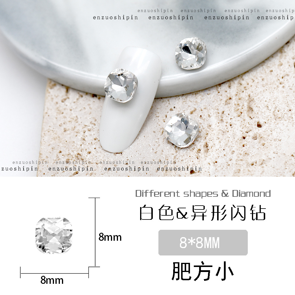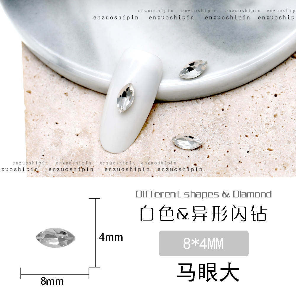 批发美甲饰品透明大钻尖底超闪歪心斧头水滴肥方蝴蝶白钻指甲配饰