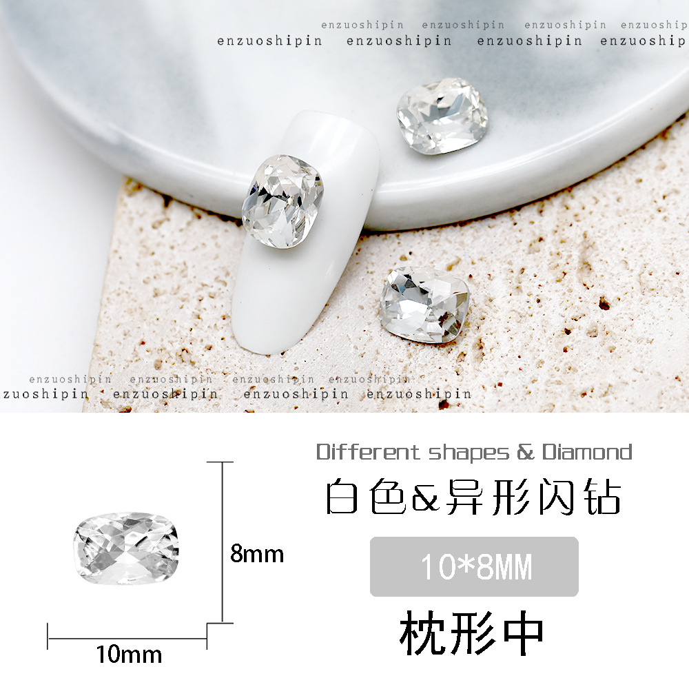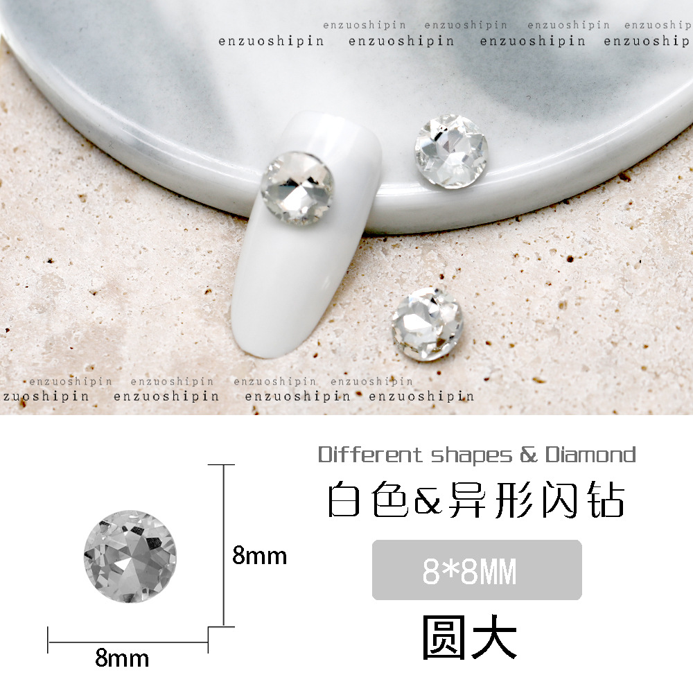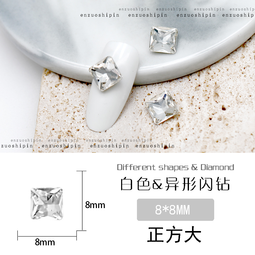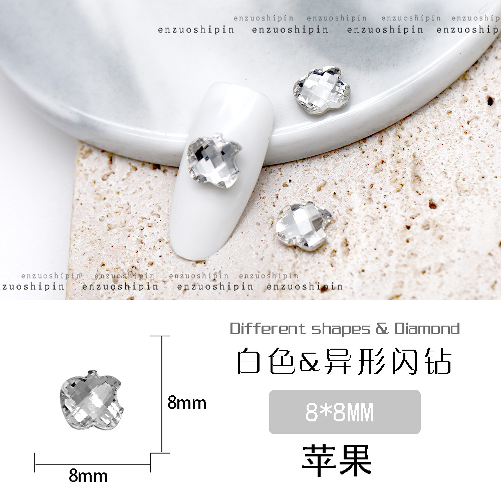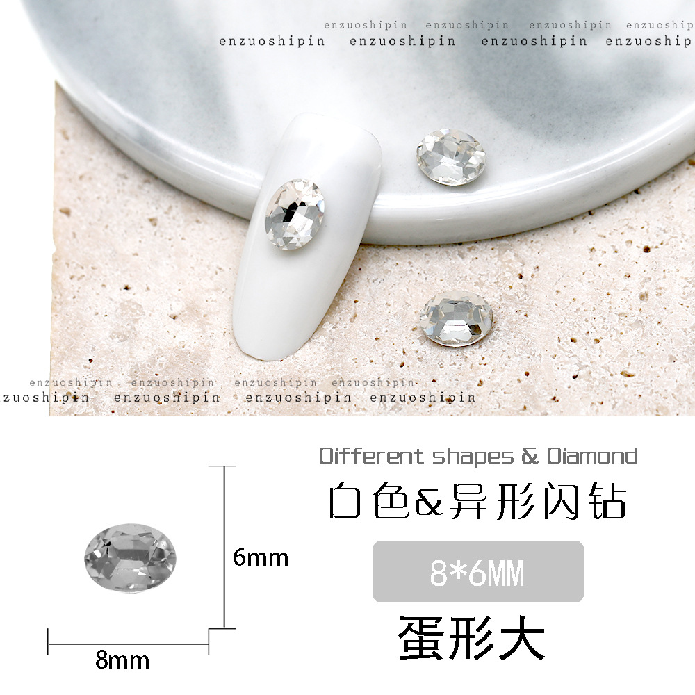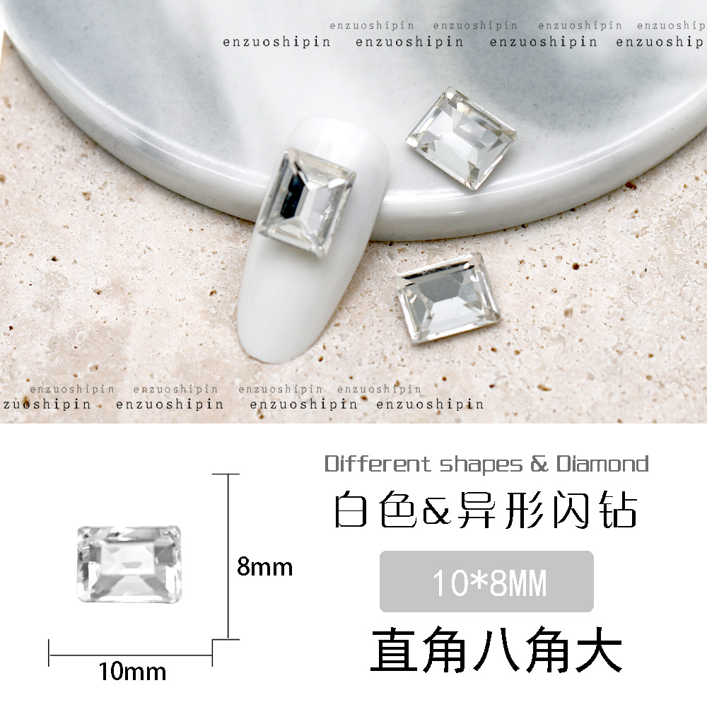 批发美甲饰品透明大钻尖底超闪歪心斧头水滴肥方蝴蝶白钻指甲配饰