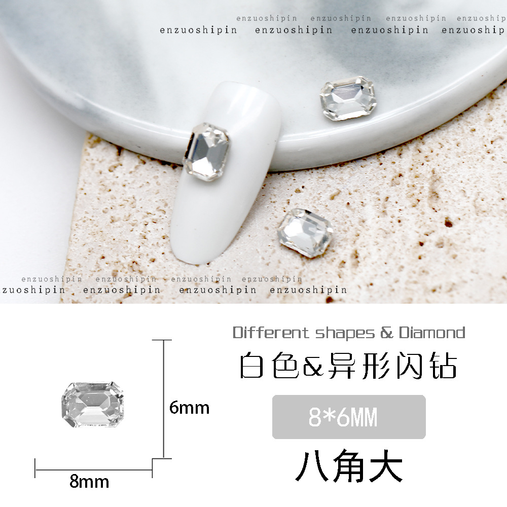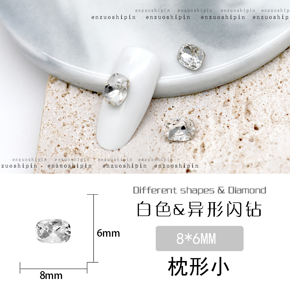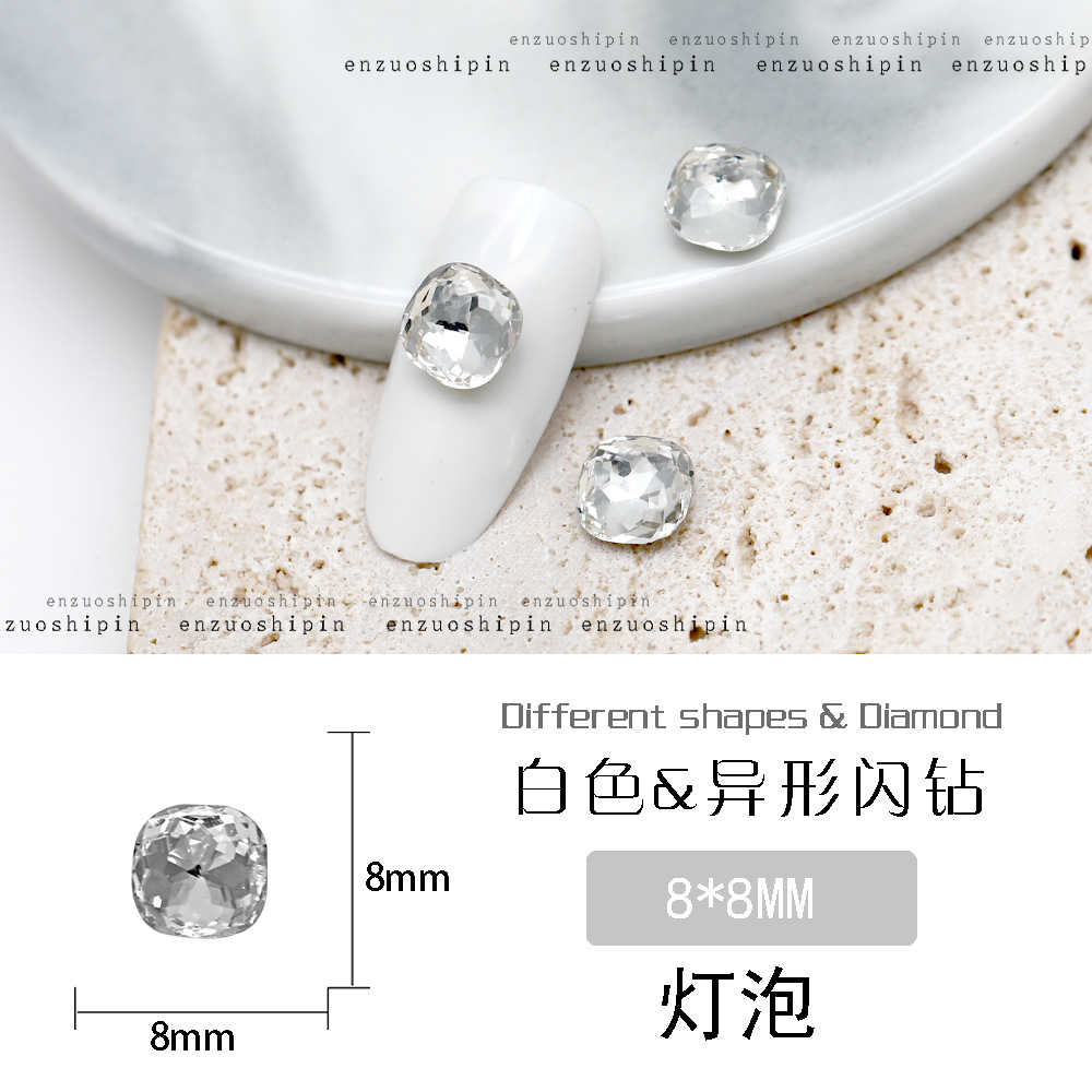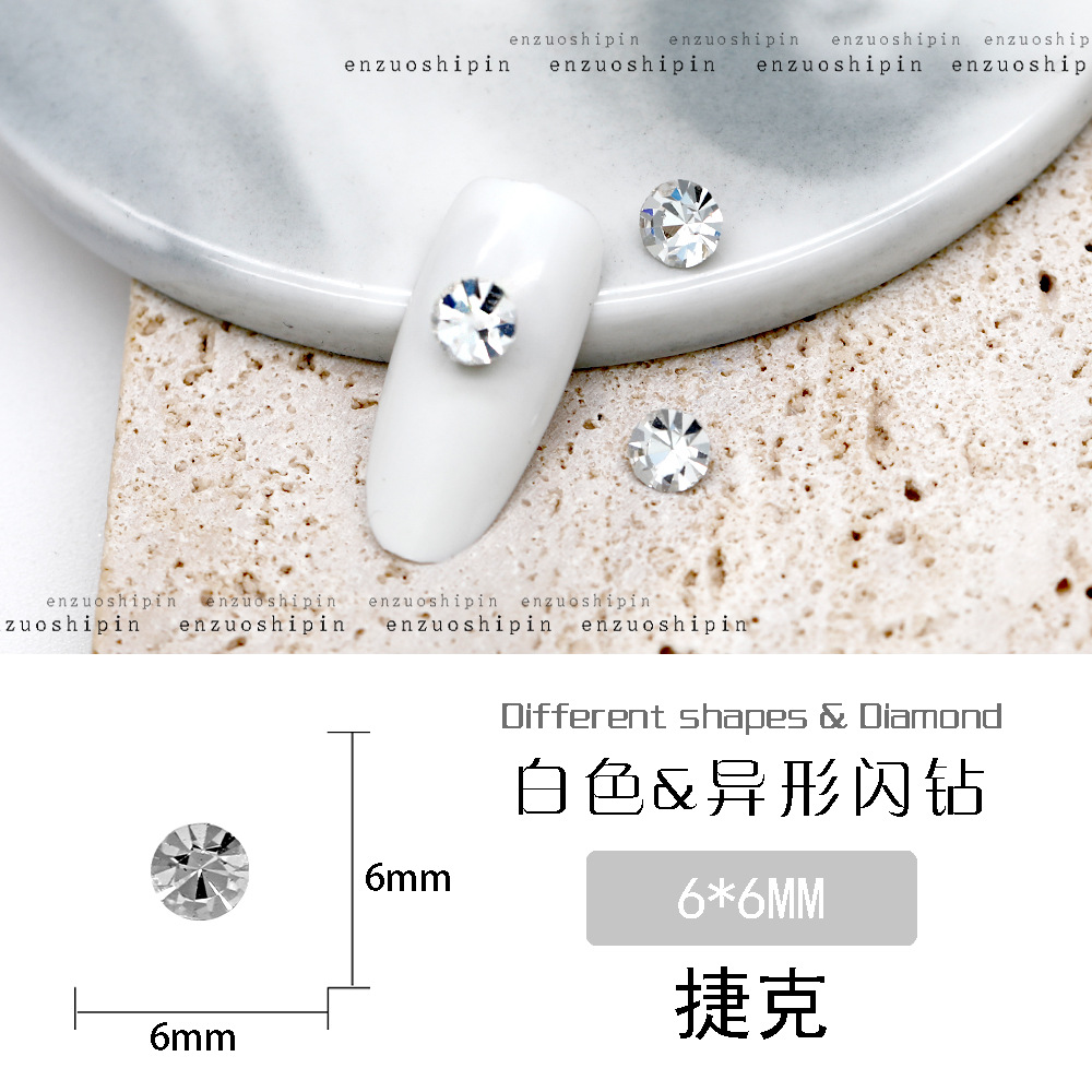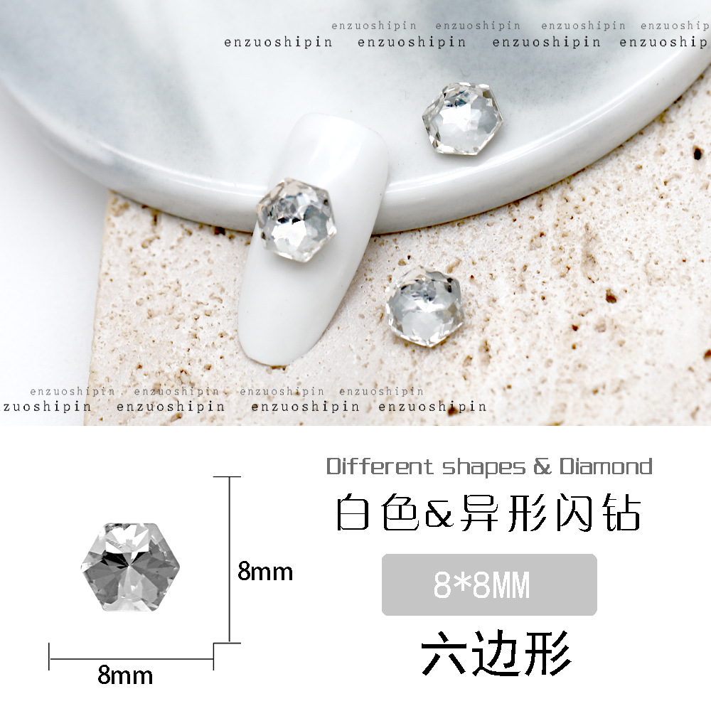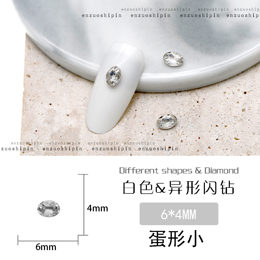 批发美甲饰品透明大钻尖底超闪歪心斧头水滴肥方蝴蝶白钻指甲配饰