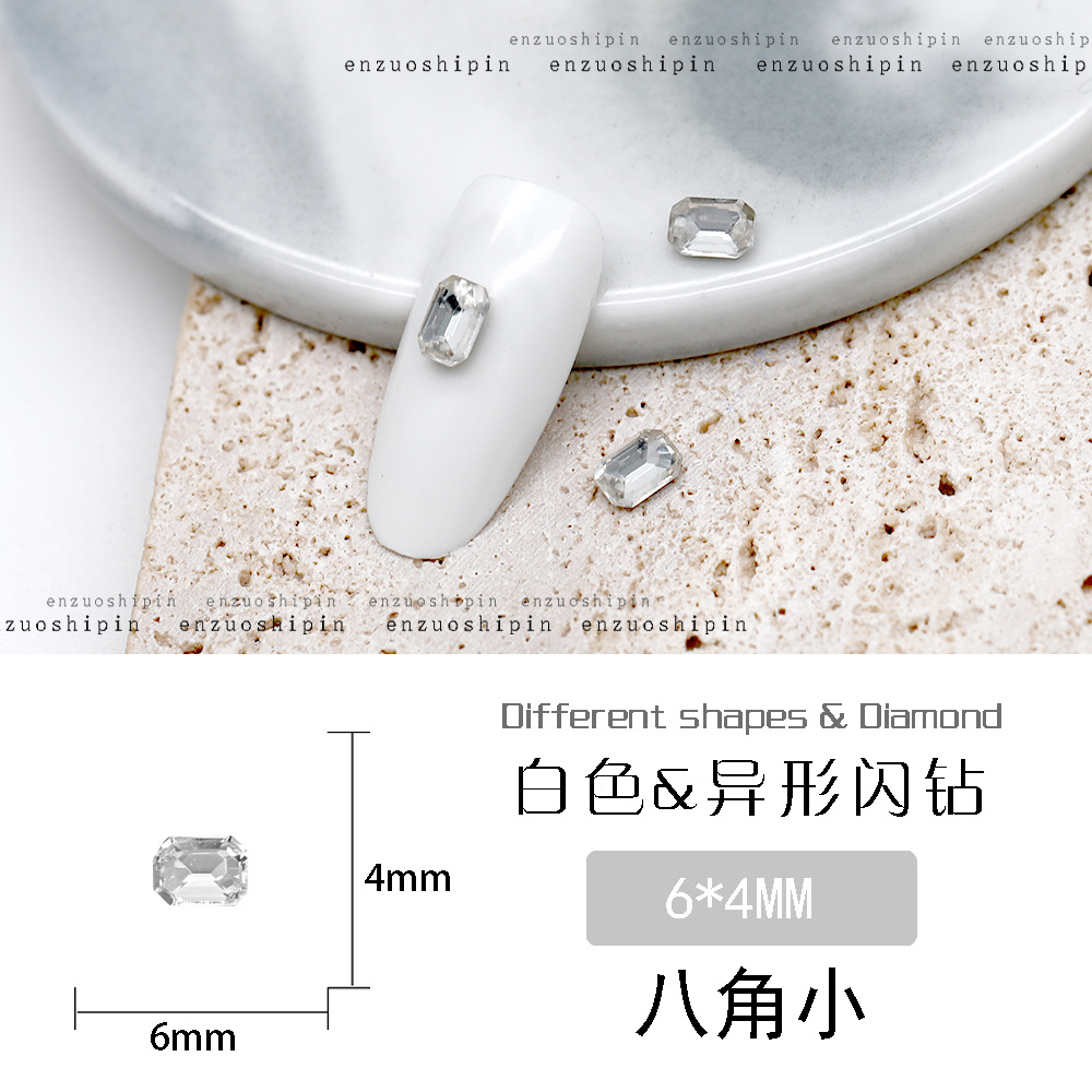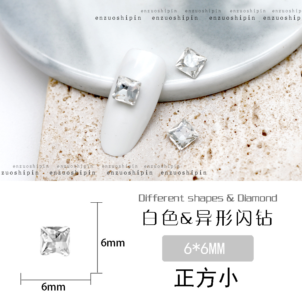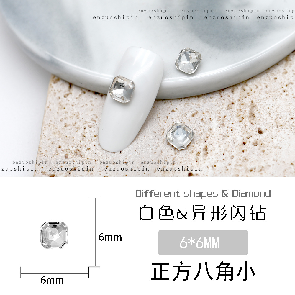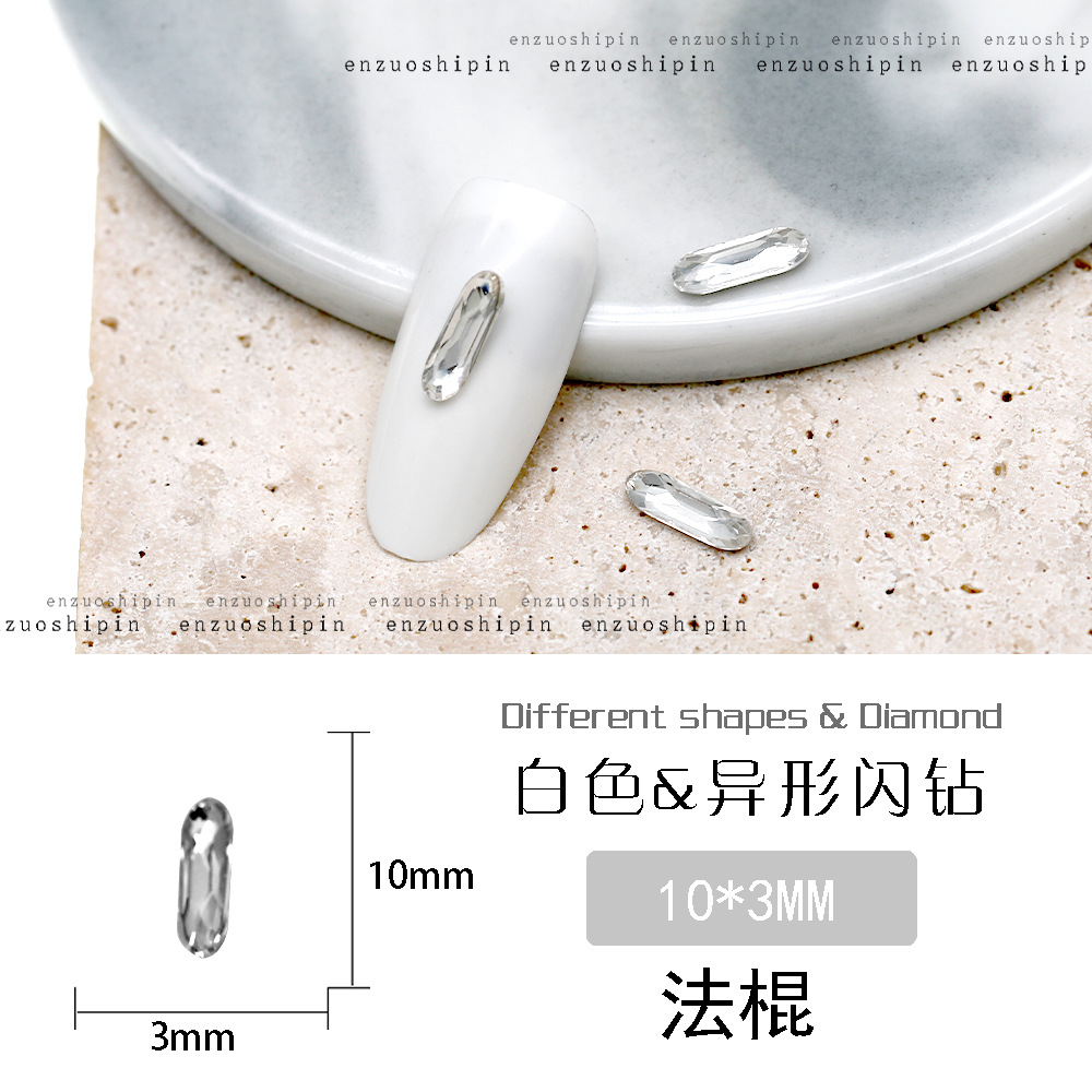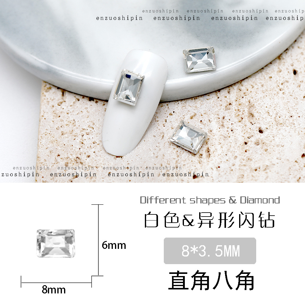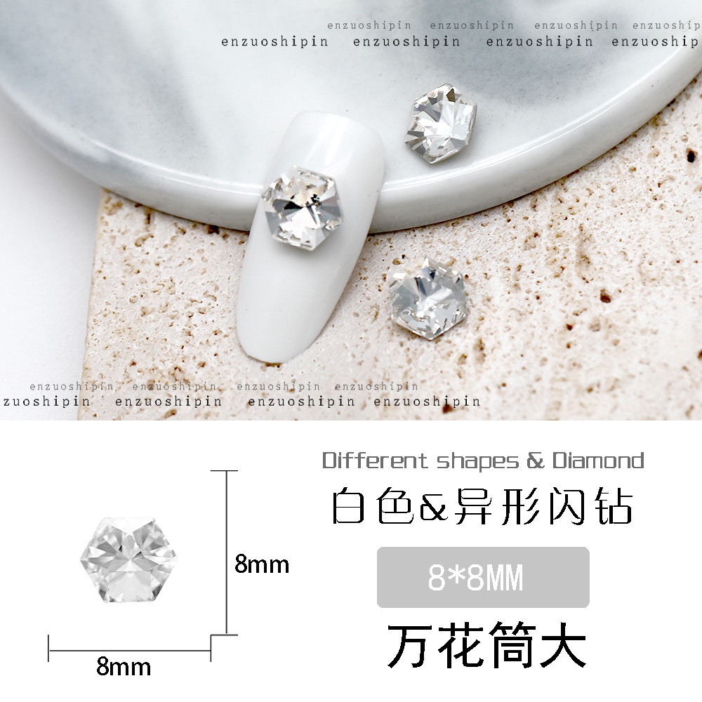 批发美甲饰品透明大钻尖底超闪歪心斧头水滴肥方蝴蝶白钻指甲配饰