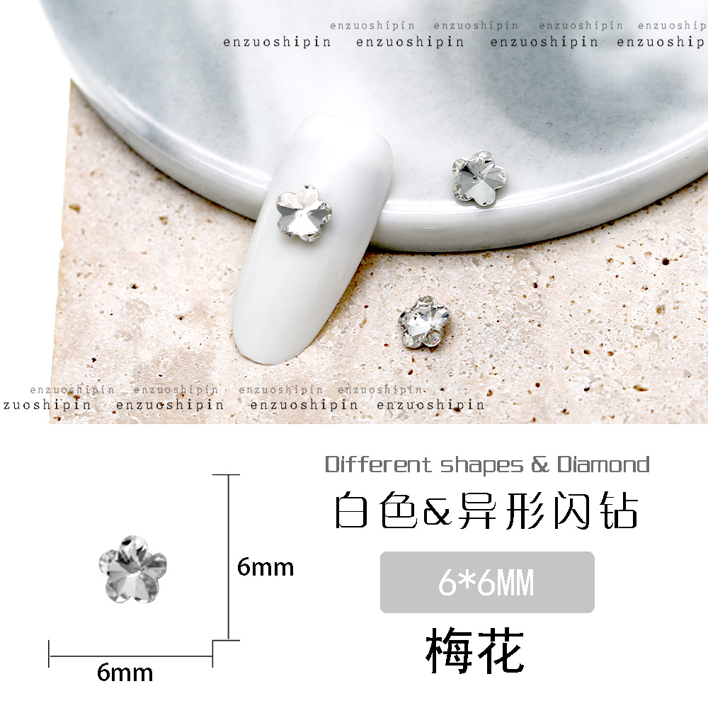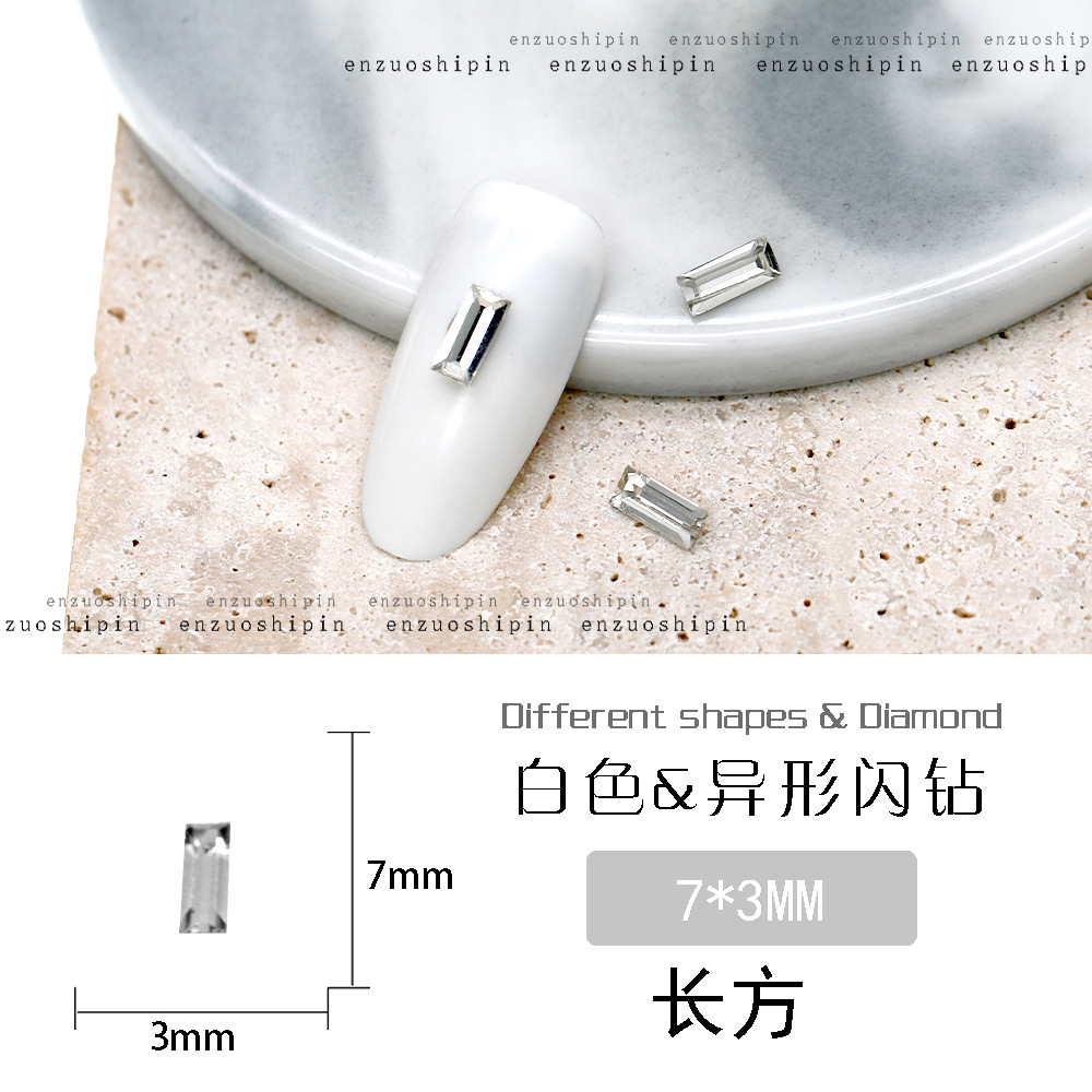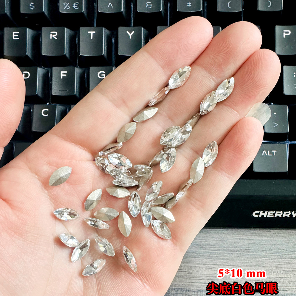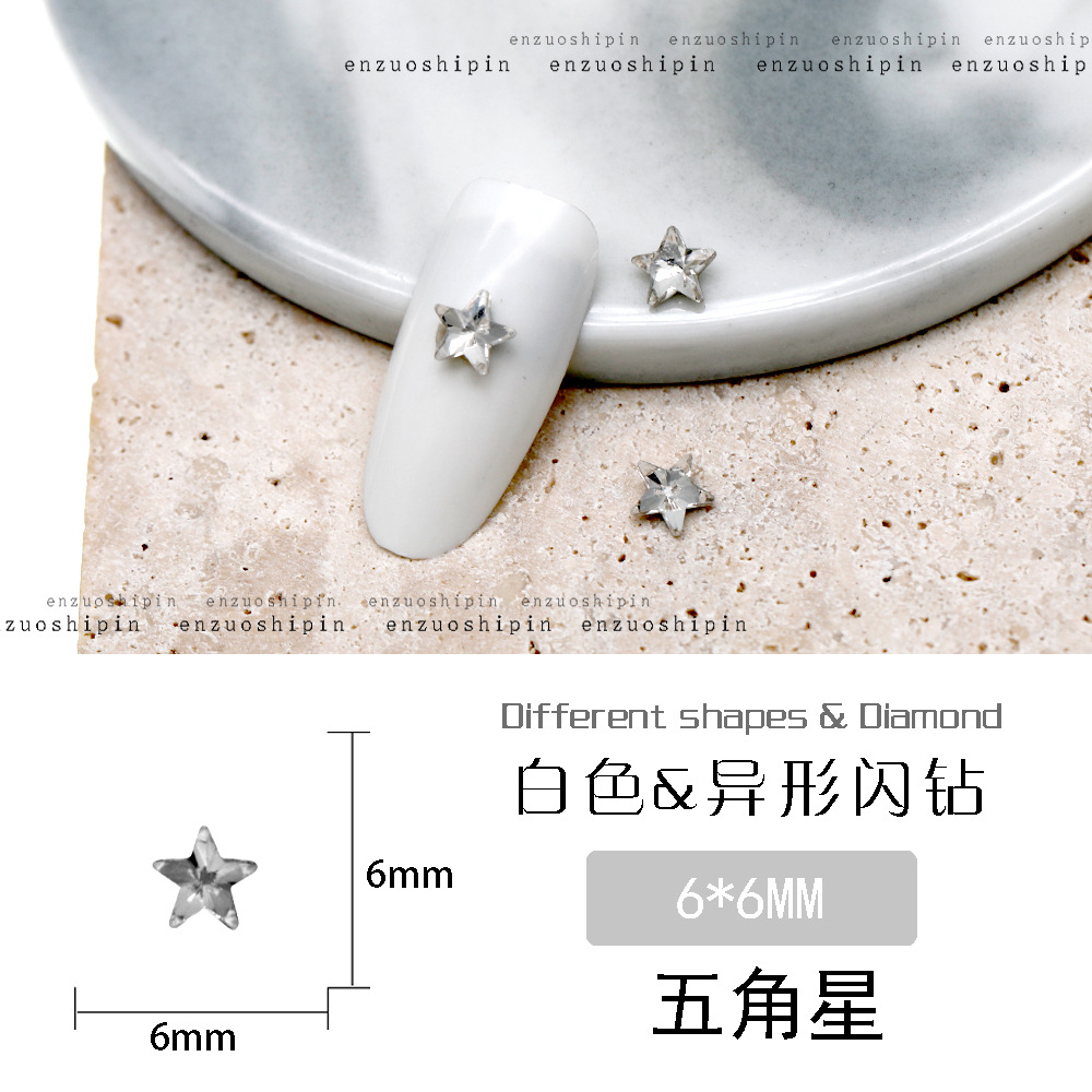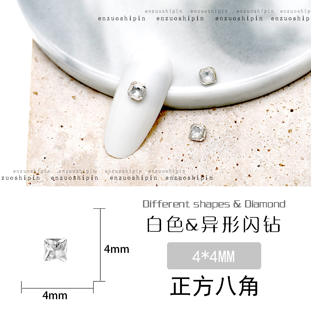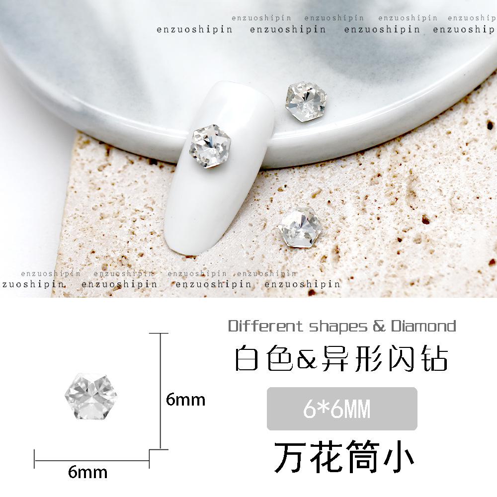 批发美甲饰品透明大钻尖底超闪歪心斧头水滴肥方蝴蝶白钻指甲配饰
