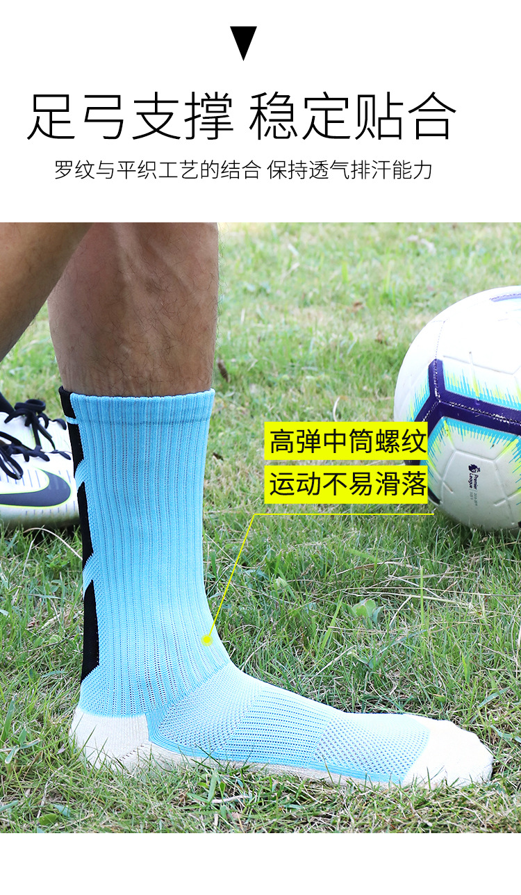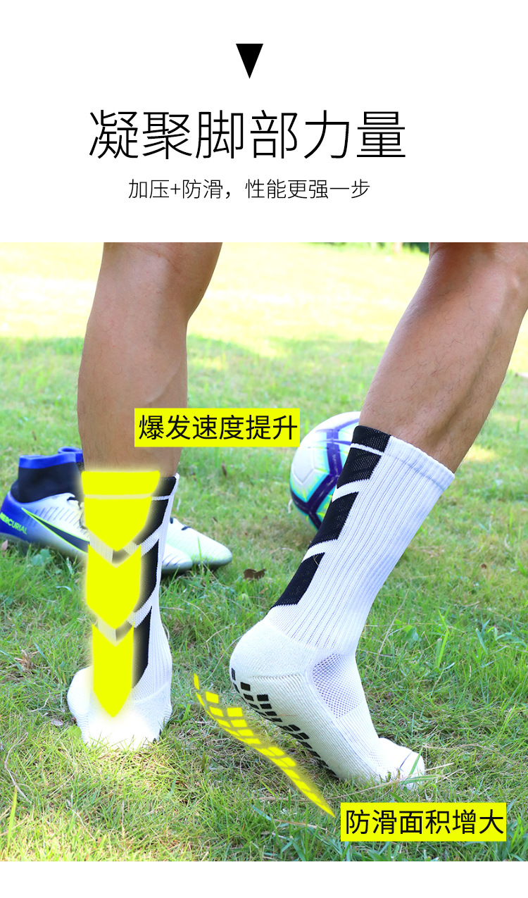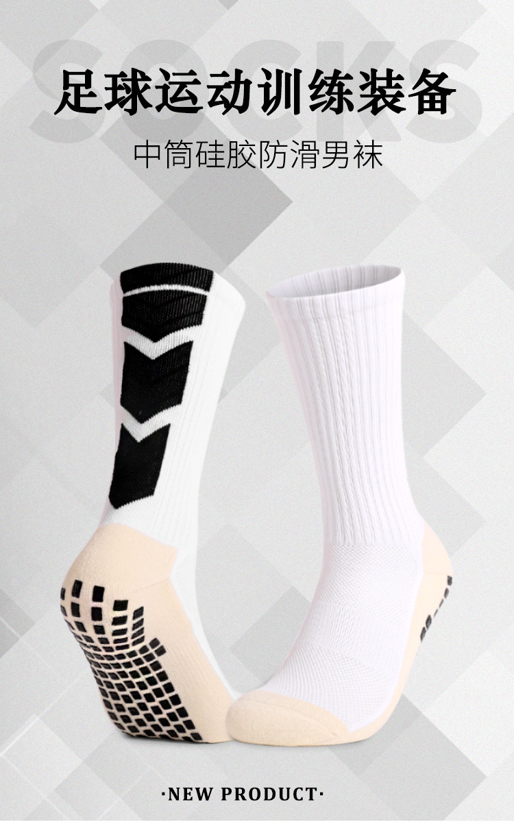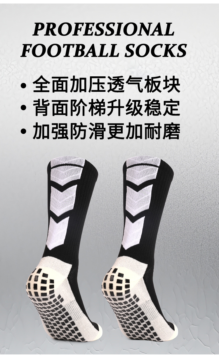 两只狼成人足球袜中长筒箭头款毛巾底吸汗防臭加厚硅胶防滑点胶袜