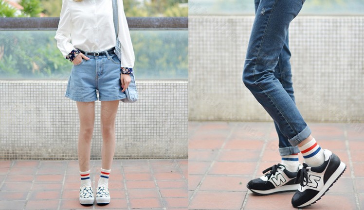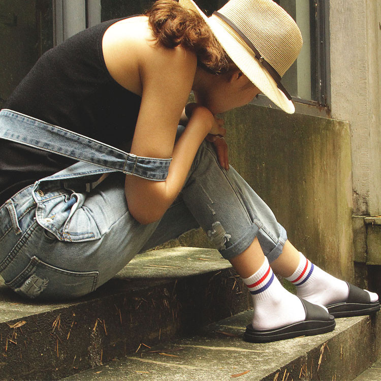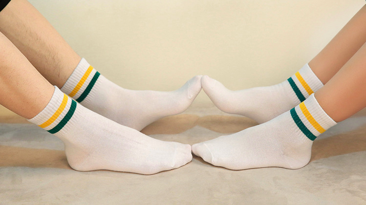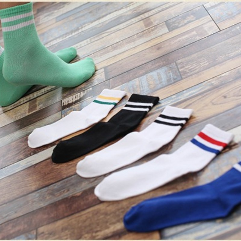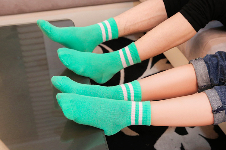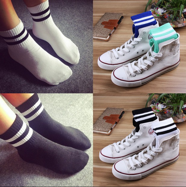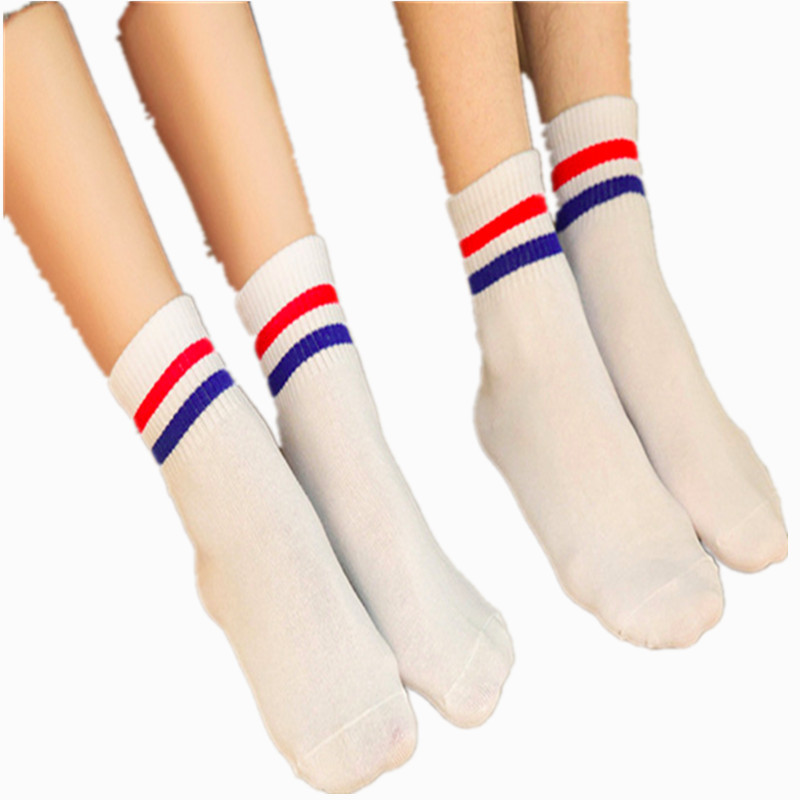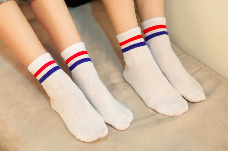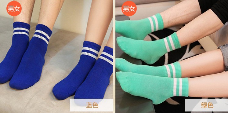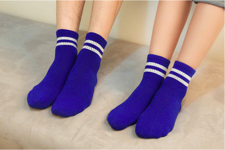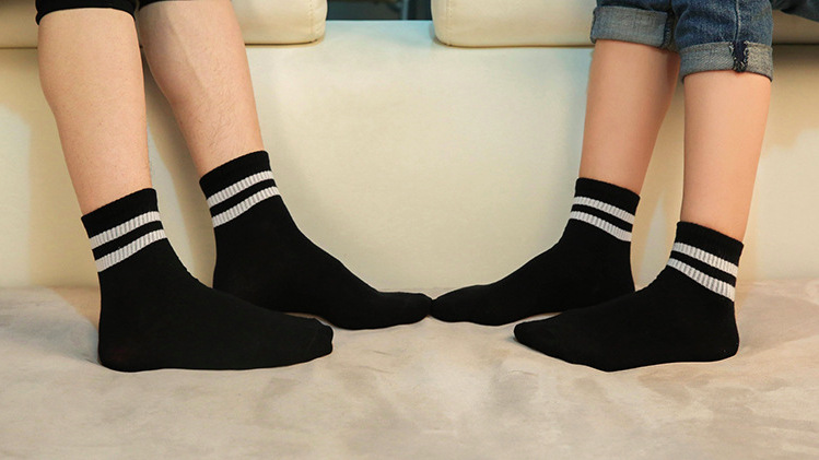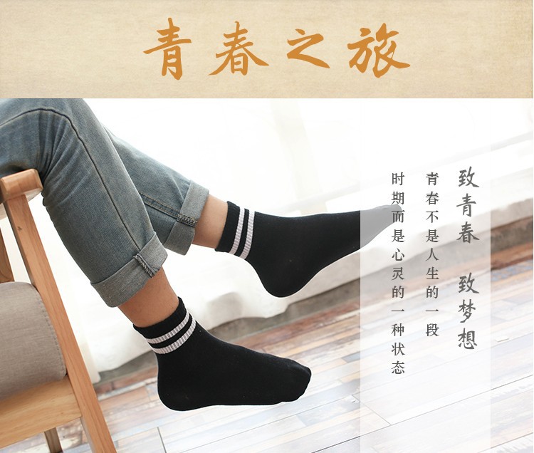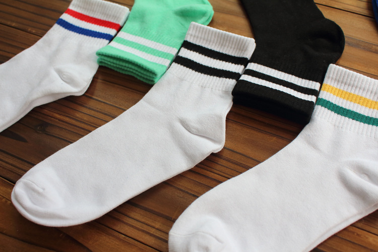 男士运动袜中筒学生袜学院风二条杠棉条纹袜子批发