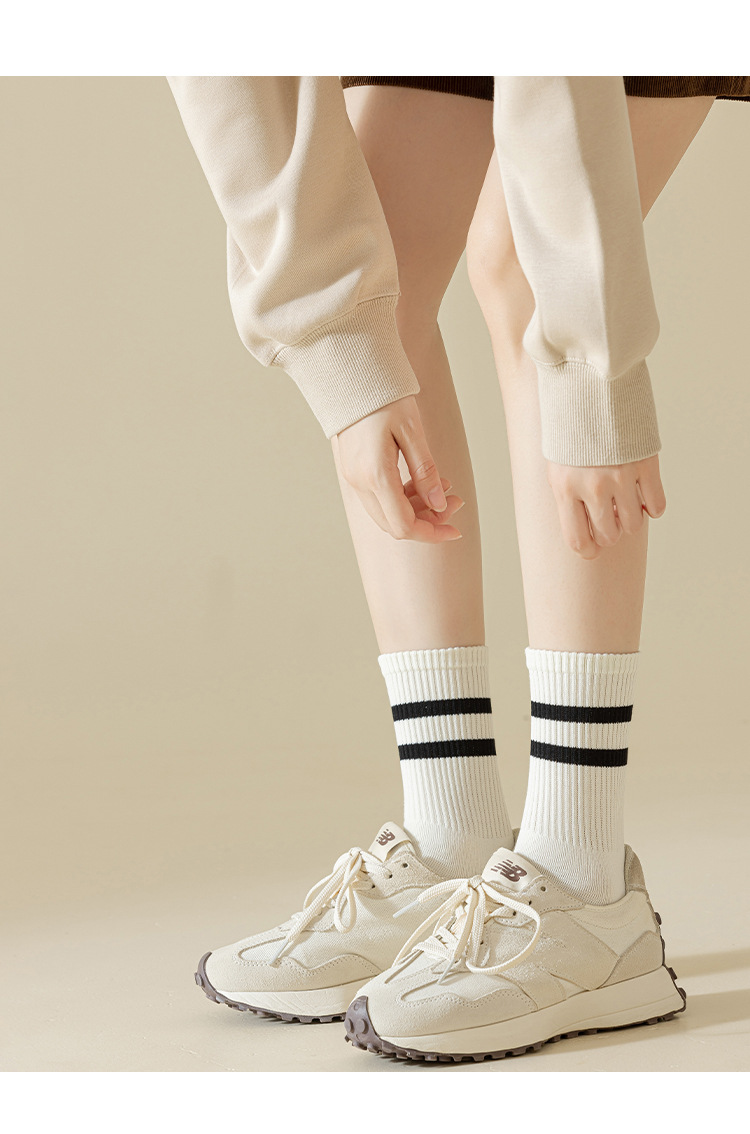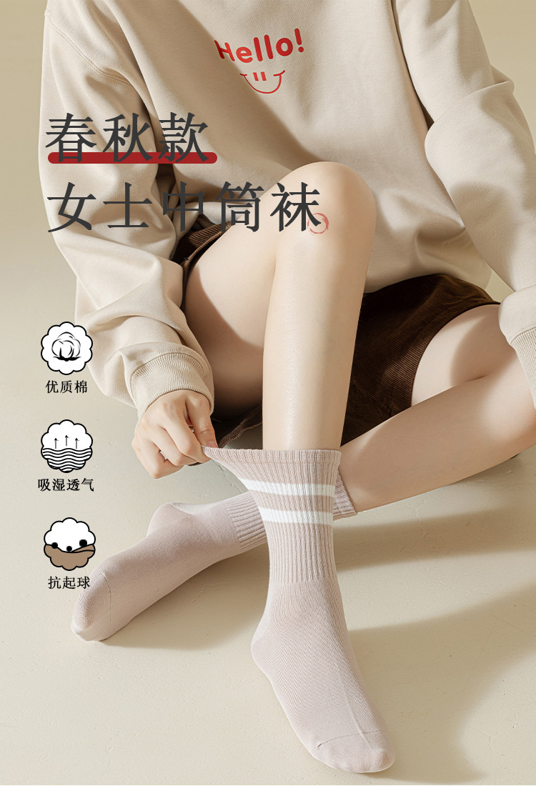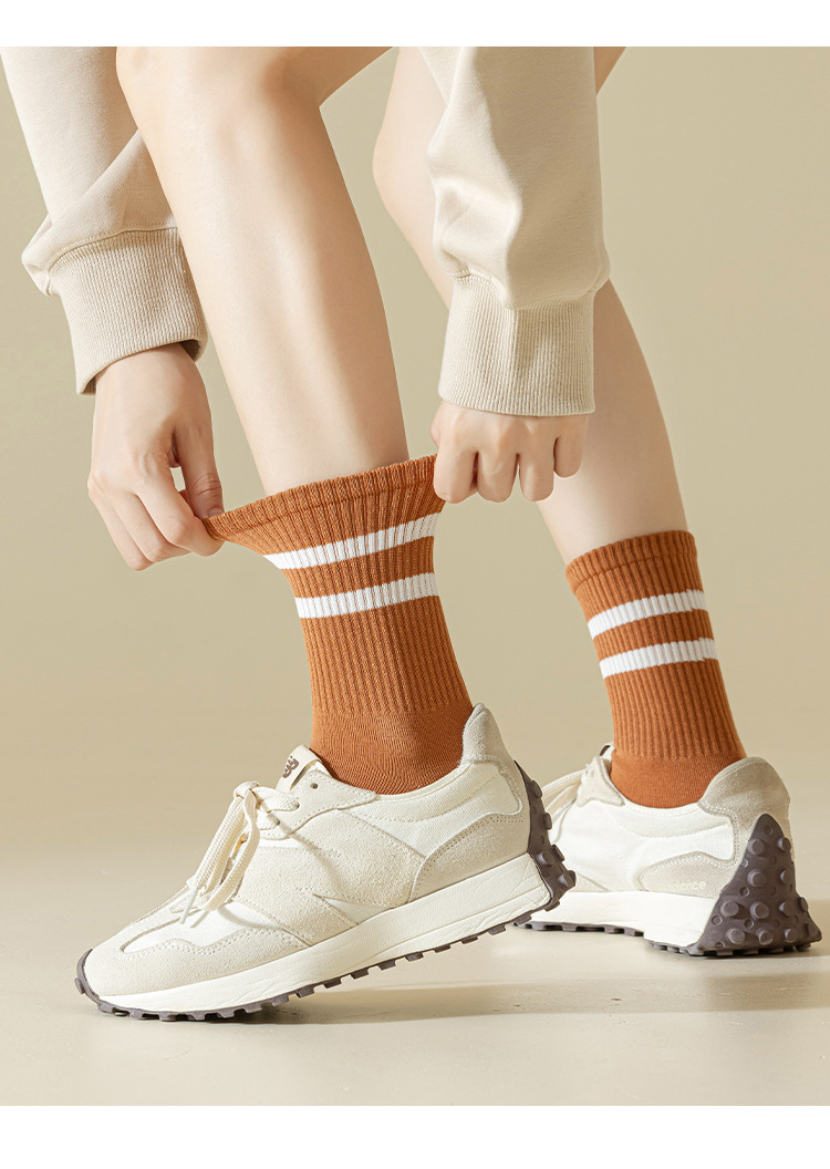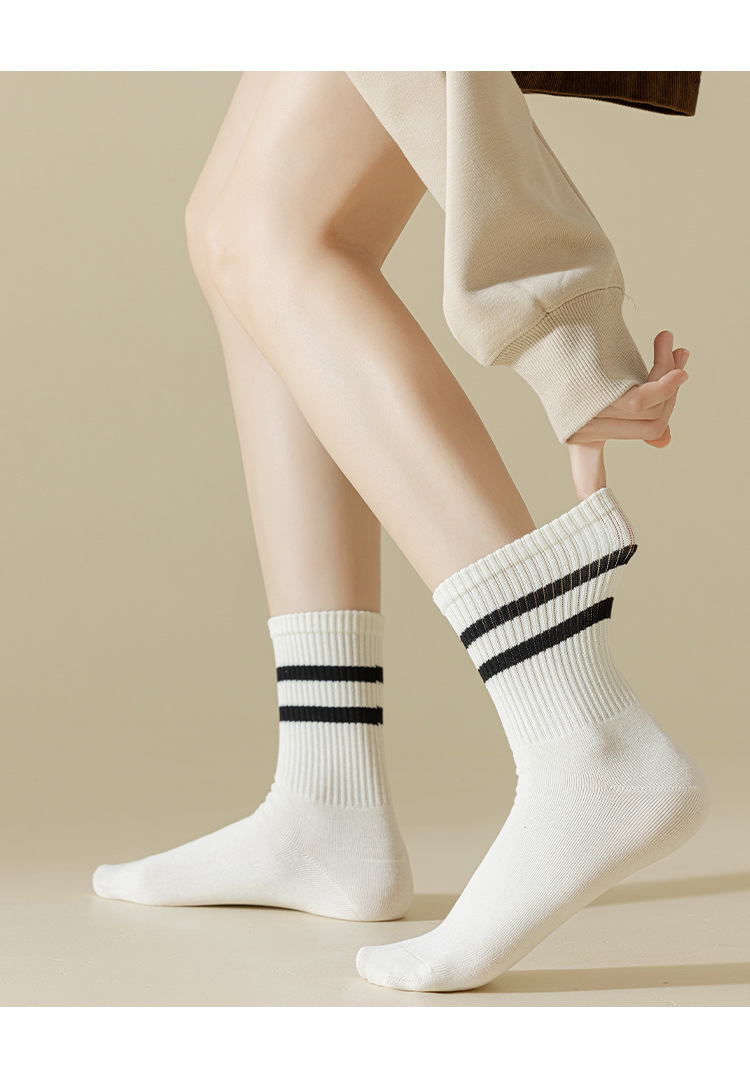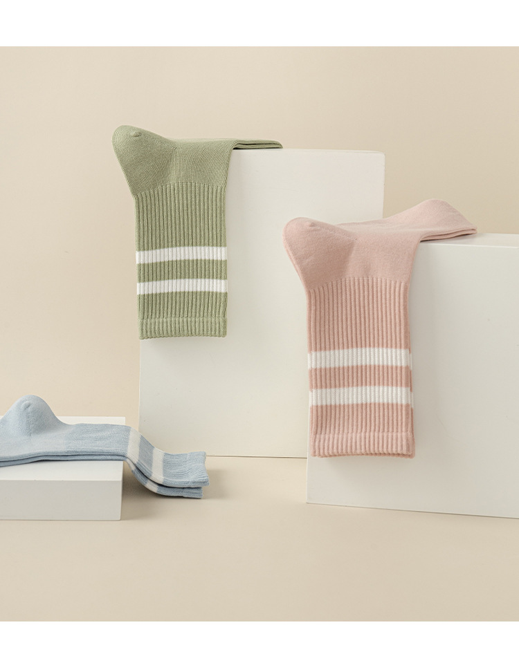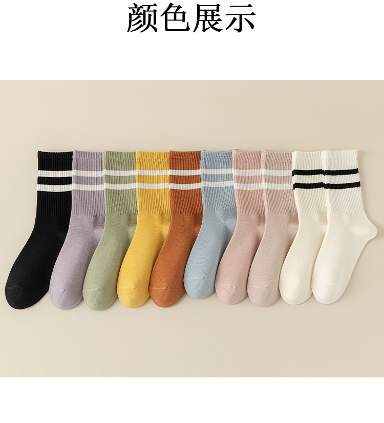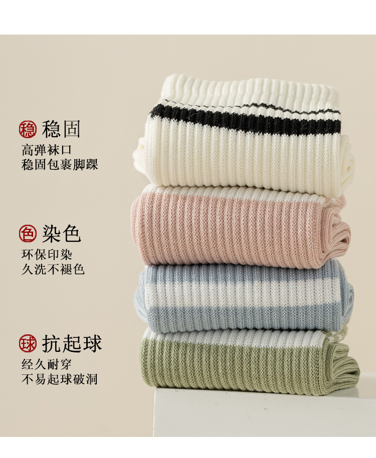 YX袜子纯棉女秋季中筒袜女士春秋全棉条纹休闲棉袜诸暨女袜批发