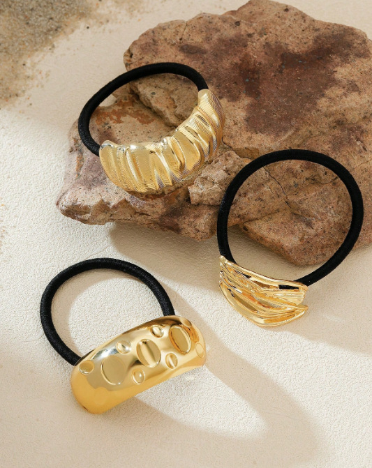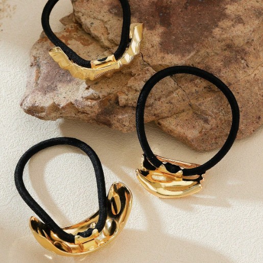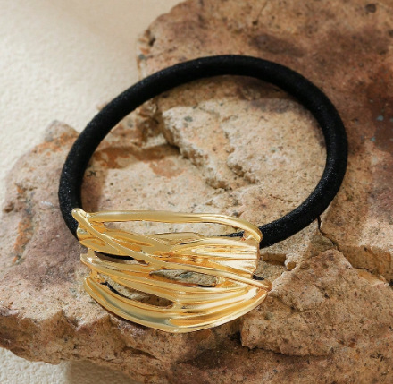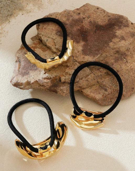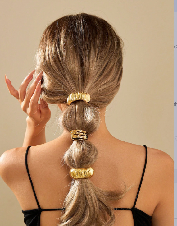 跨境新款不规则凹凸不对称金属发饰马尾头绳欧美弹力发绳