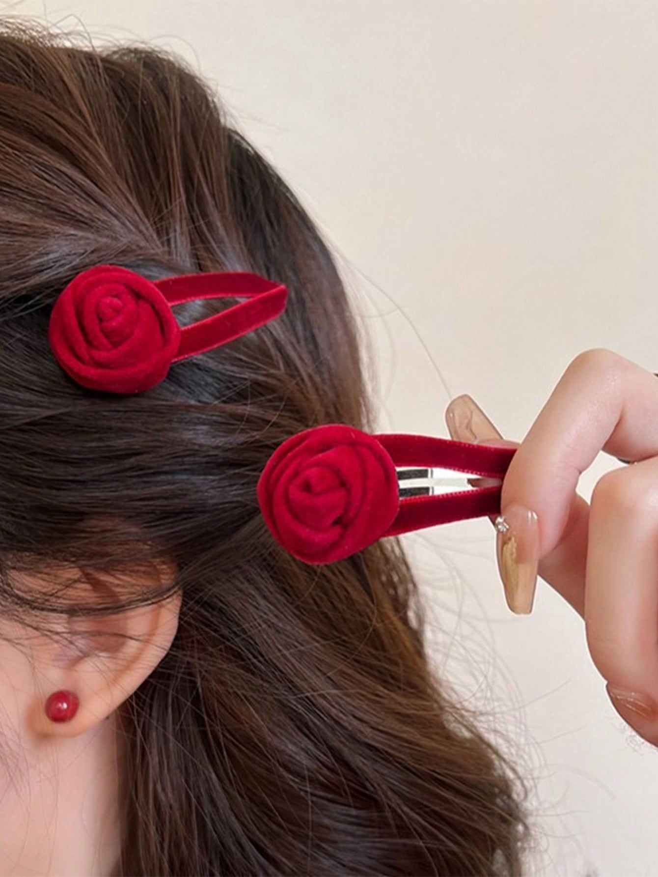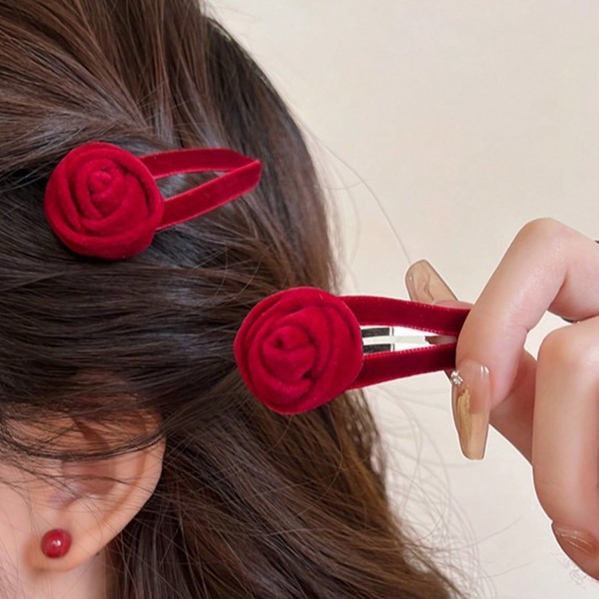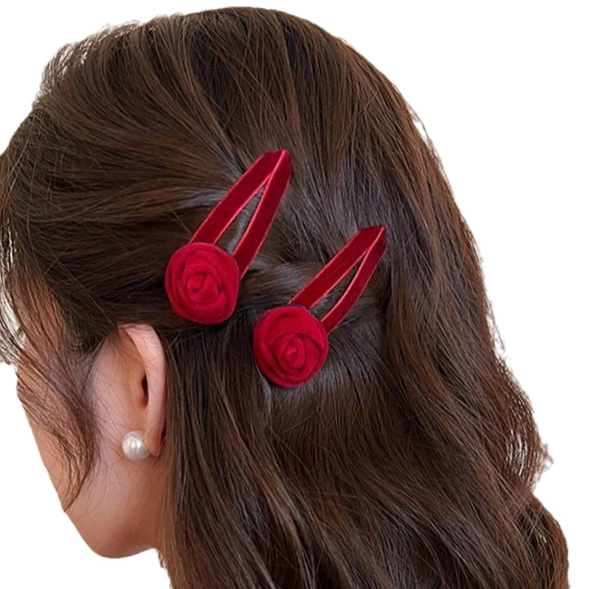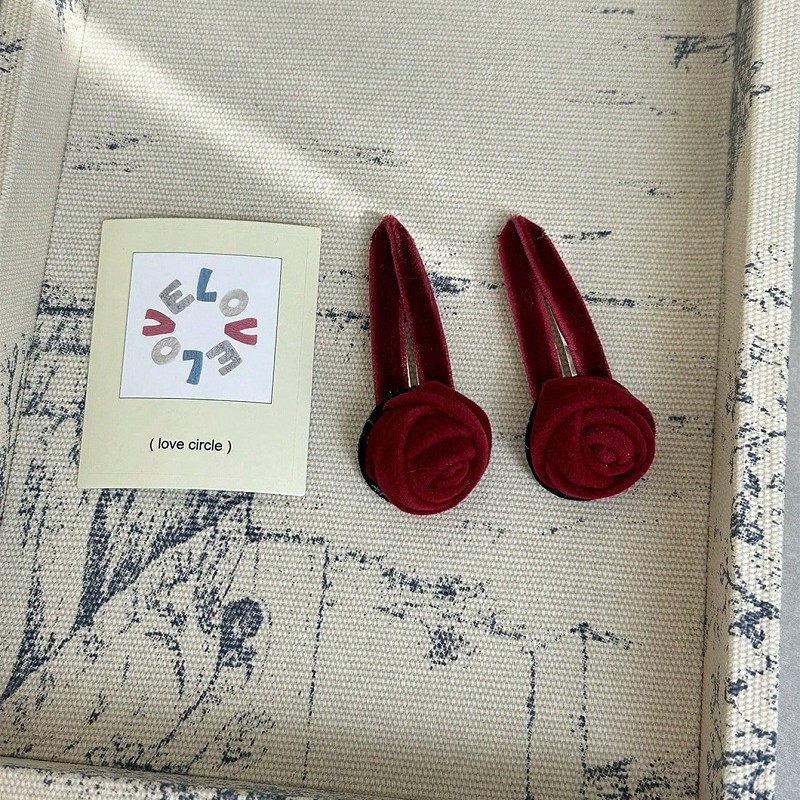法式复古丝绒玫瑰花发夹侧边发夹浪漫刘海夹女发饰