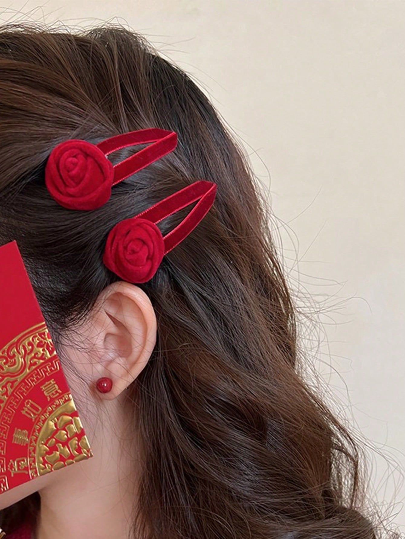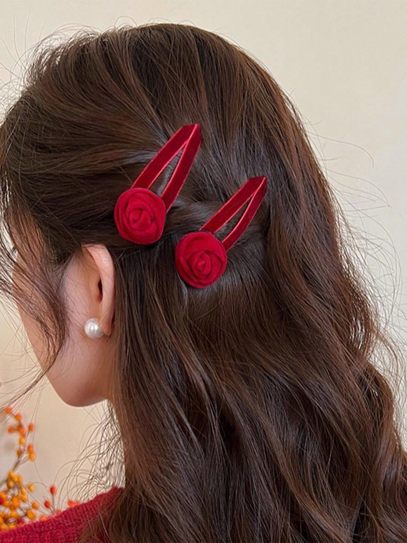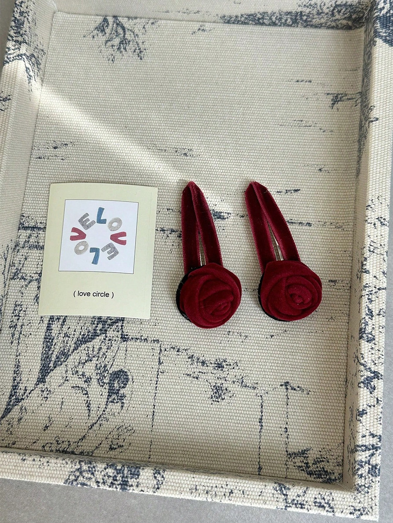 法式复古丝绒玫瑰花发夹侧边发夹浪漫刘海夹女发饰