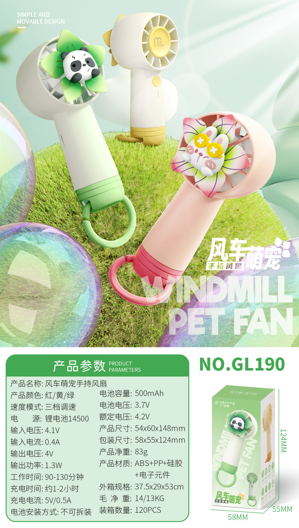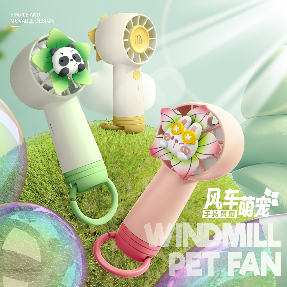 新款萌宠风车手持风扇USB充电款随身便携式小风扇学生桌面型电扇
