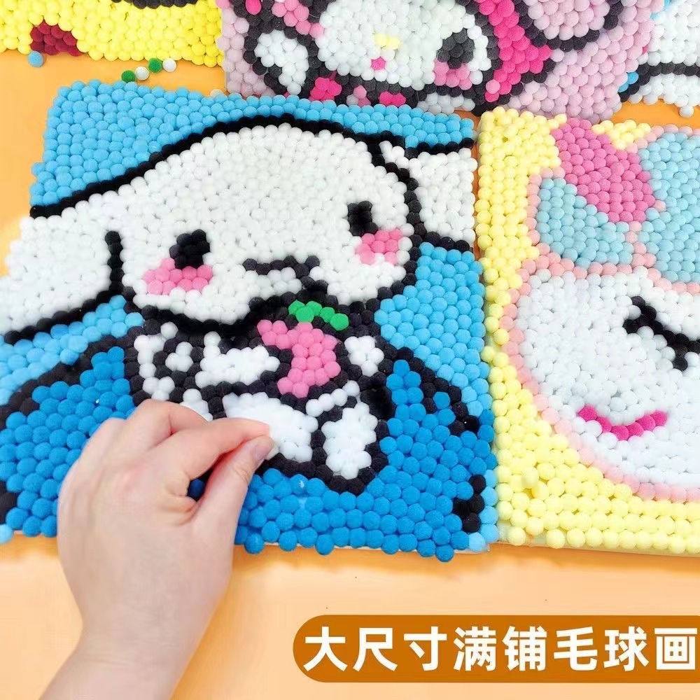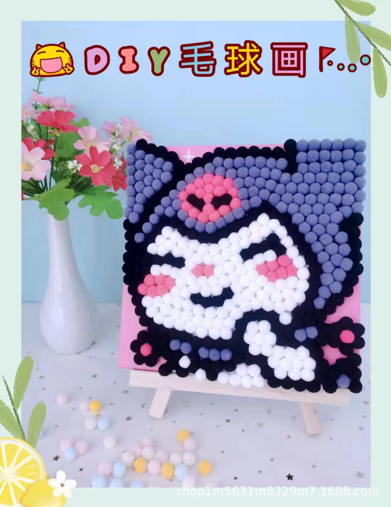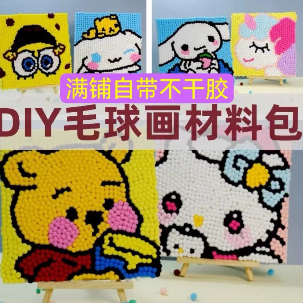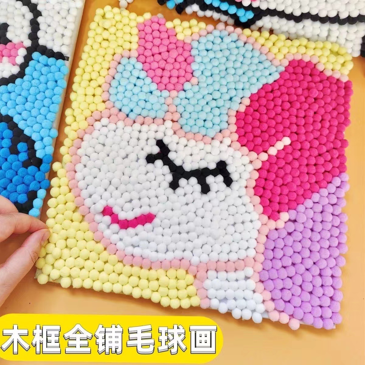 儿童毛球粘贴画diy手工创意绒球画制作材料包幼儿园益智玩具卡通