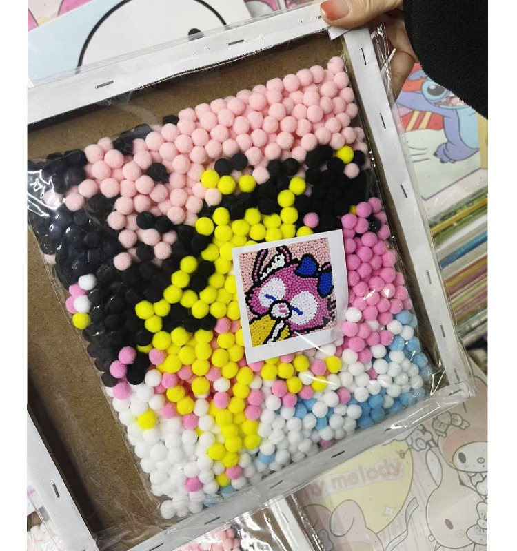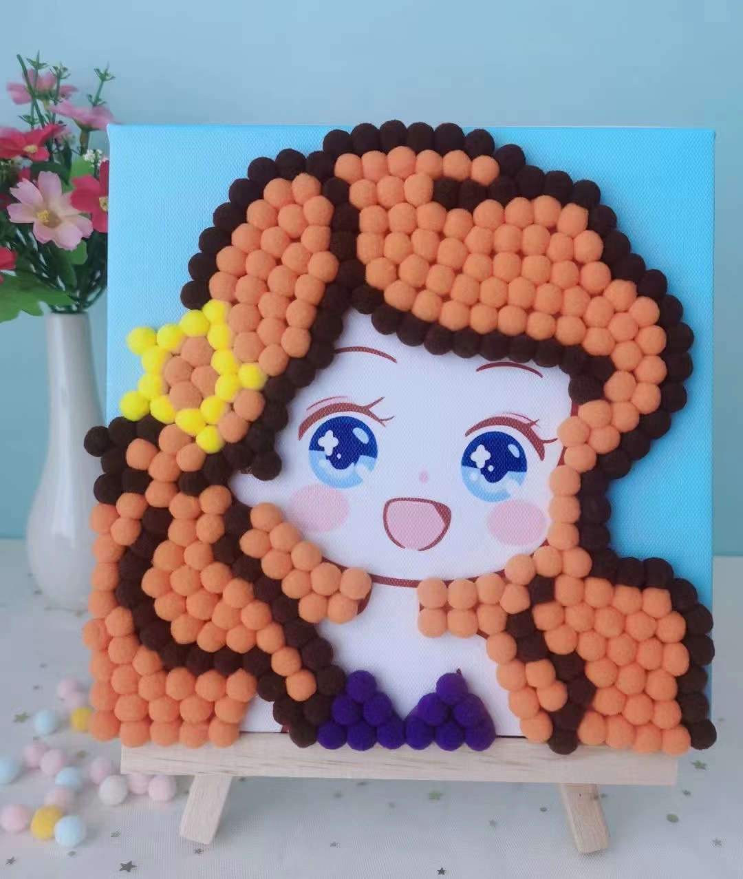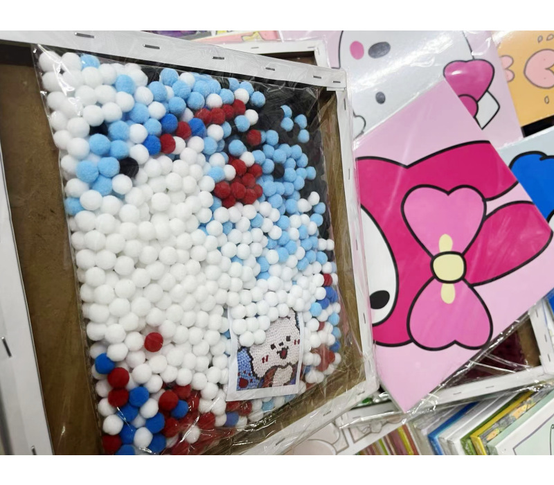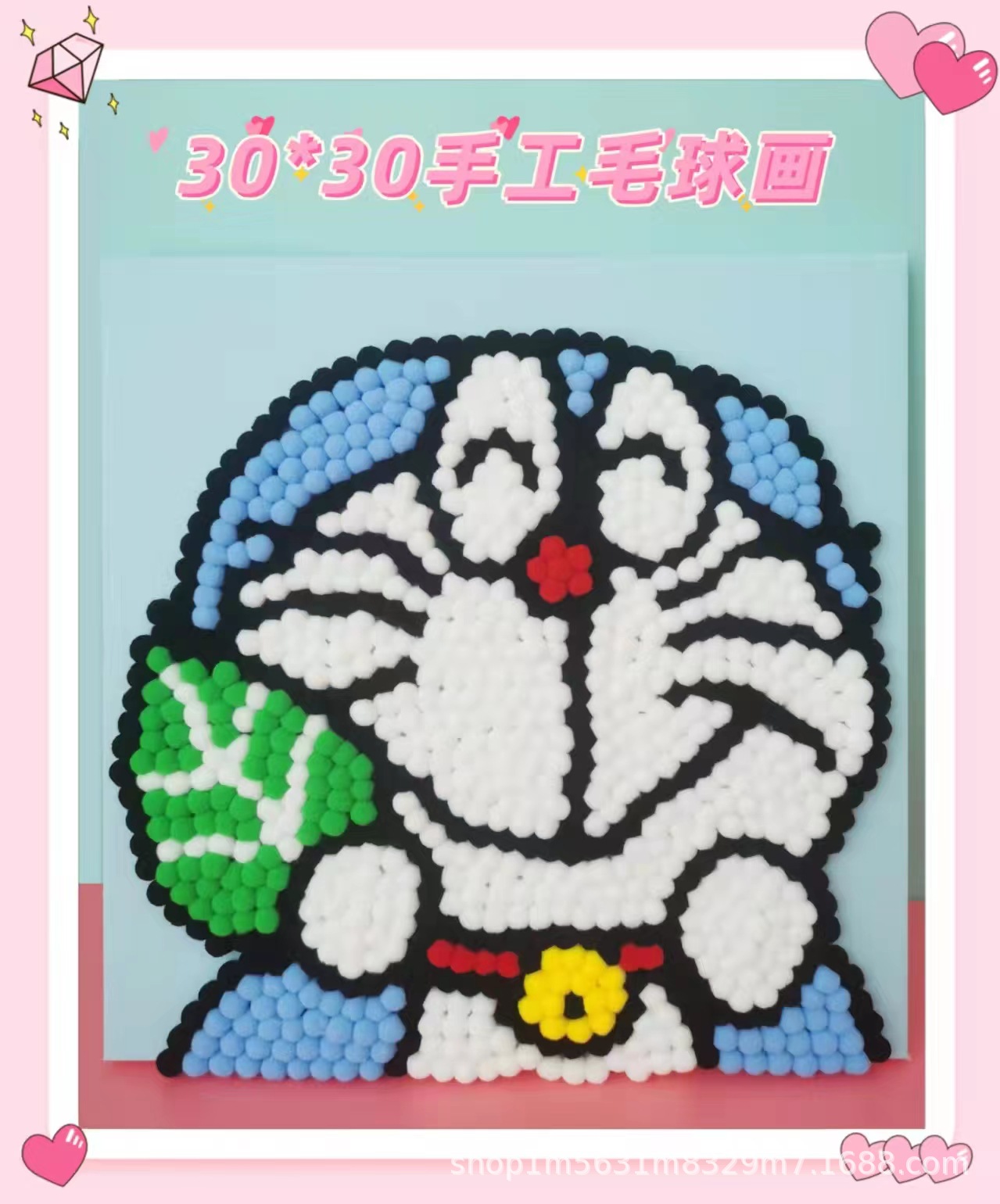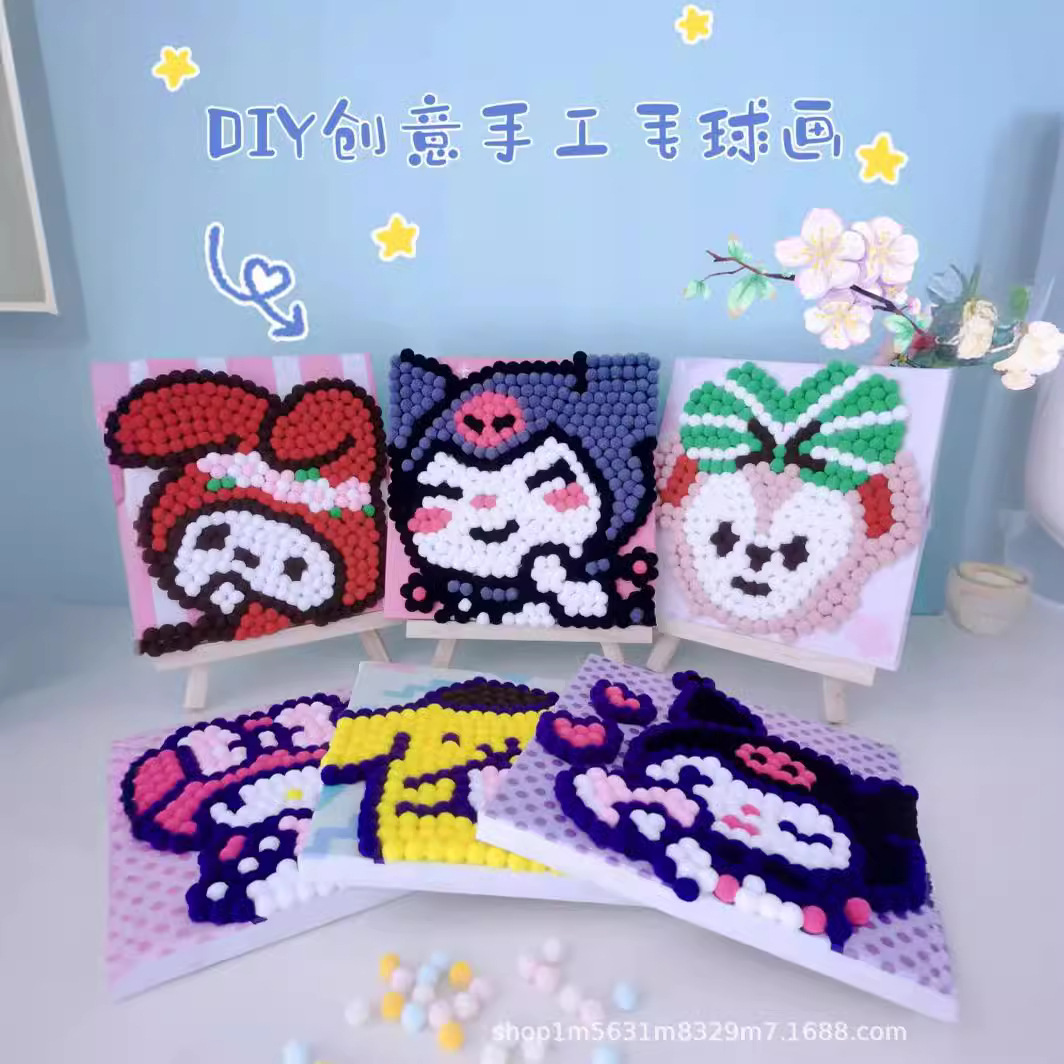 儿童毛球粘贴画diy手工创意绒球画制作材料包幼儿园益智玩具卡通