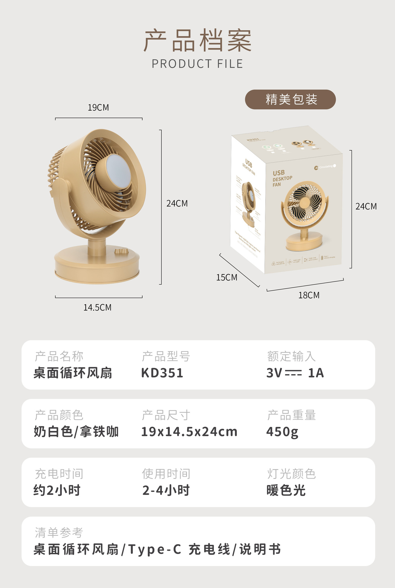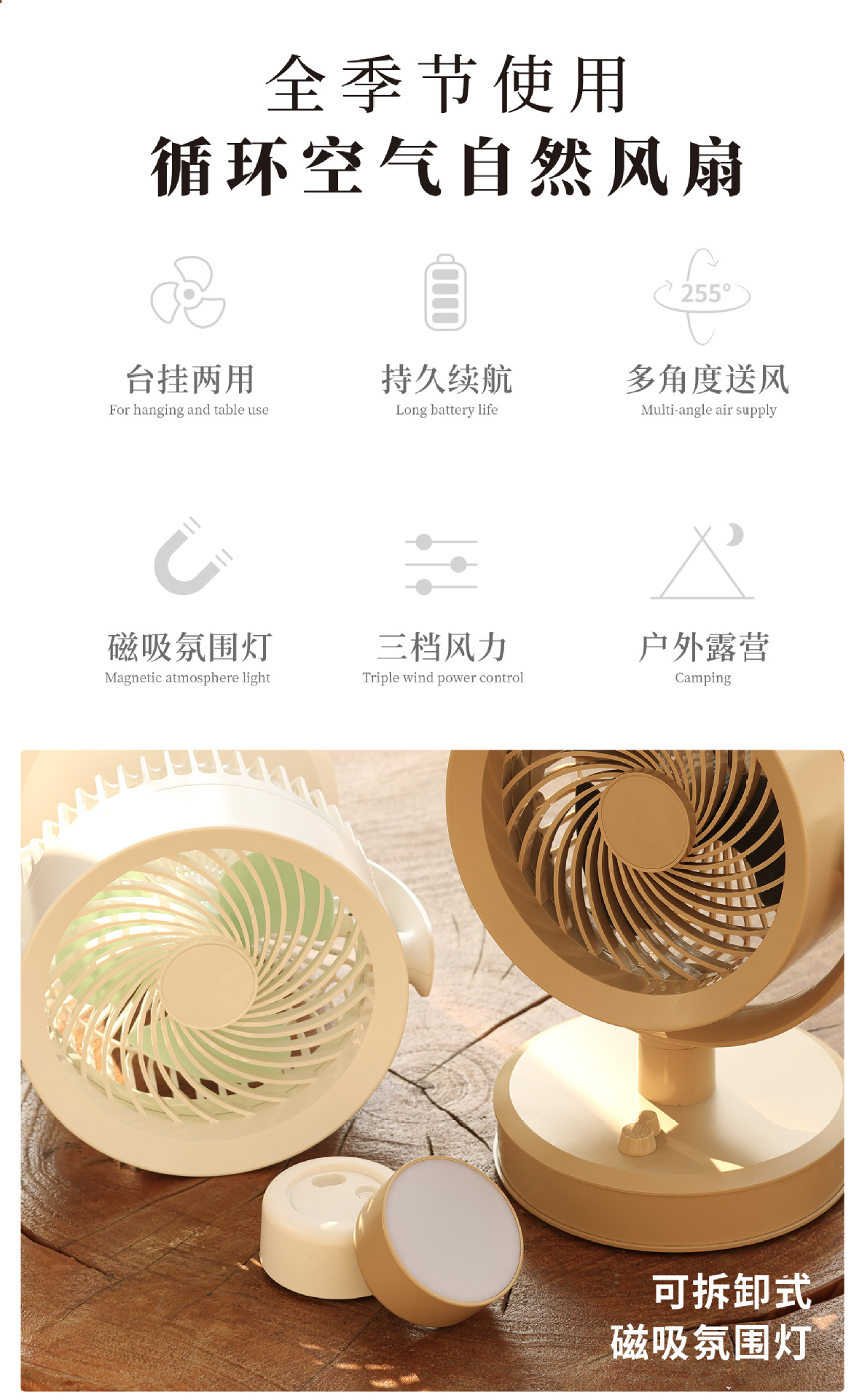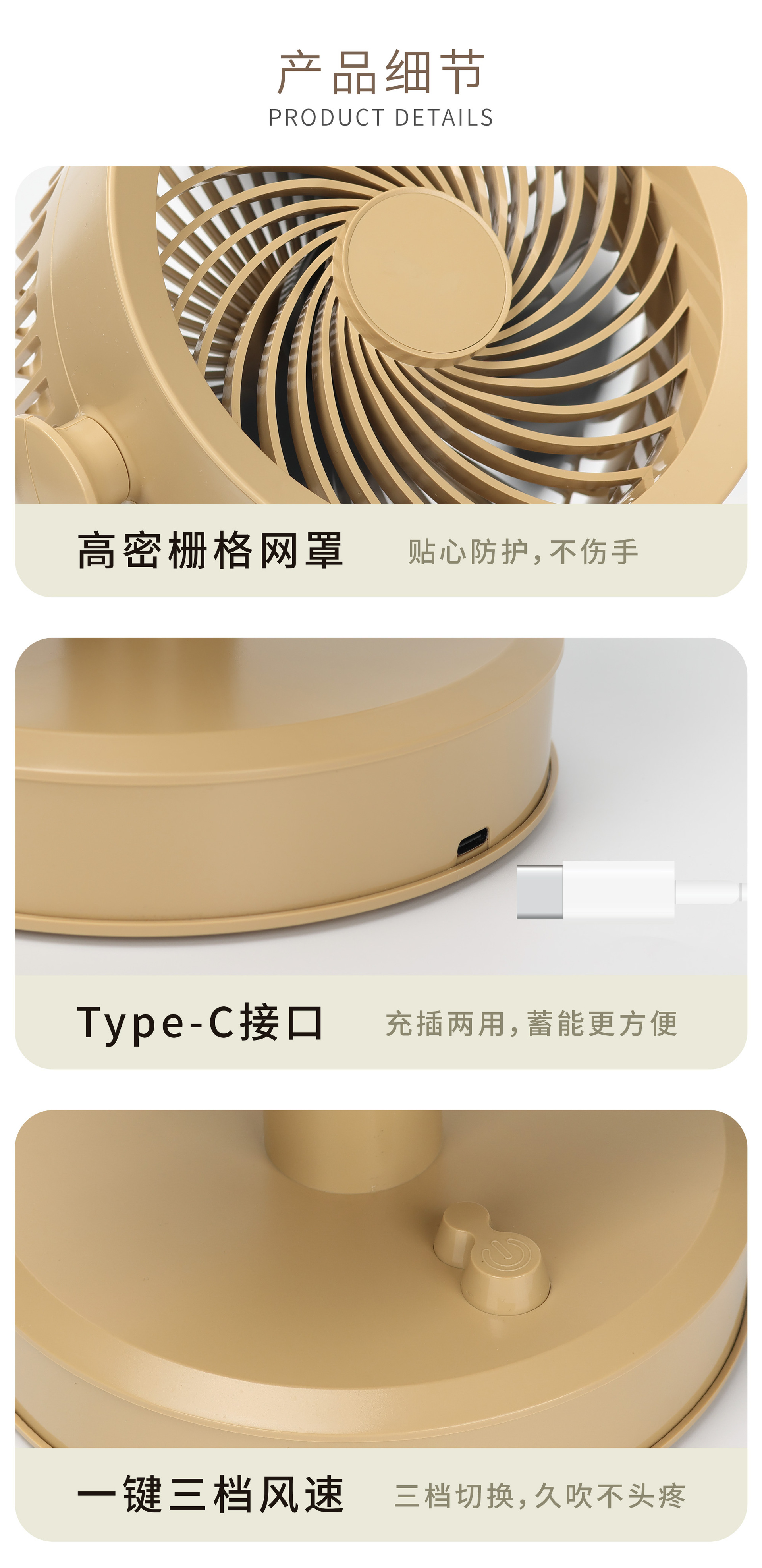 桌面电风扇户外电风扇学生风扇 USB台式小风扇办公室便携式可充电