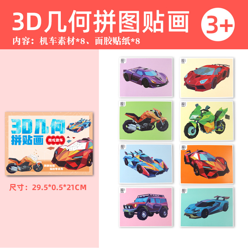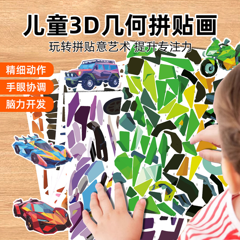 儿童益智3D几何拼贴画立体贴贴纸手工DIY材料包幼儿园手工作业本