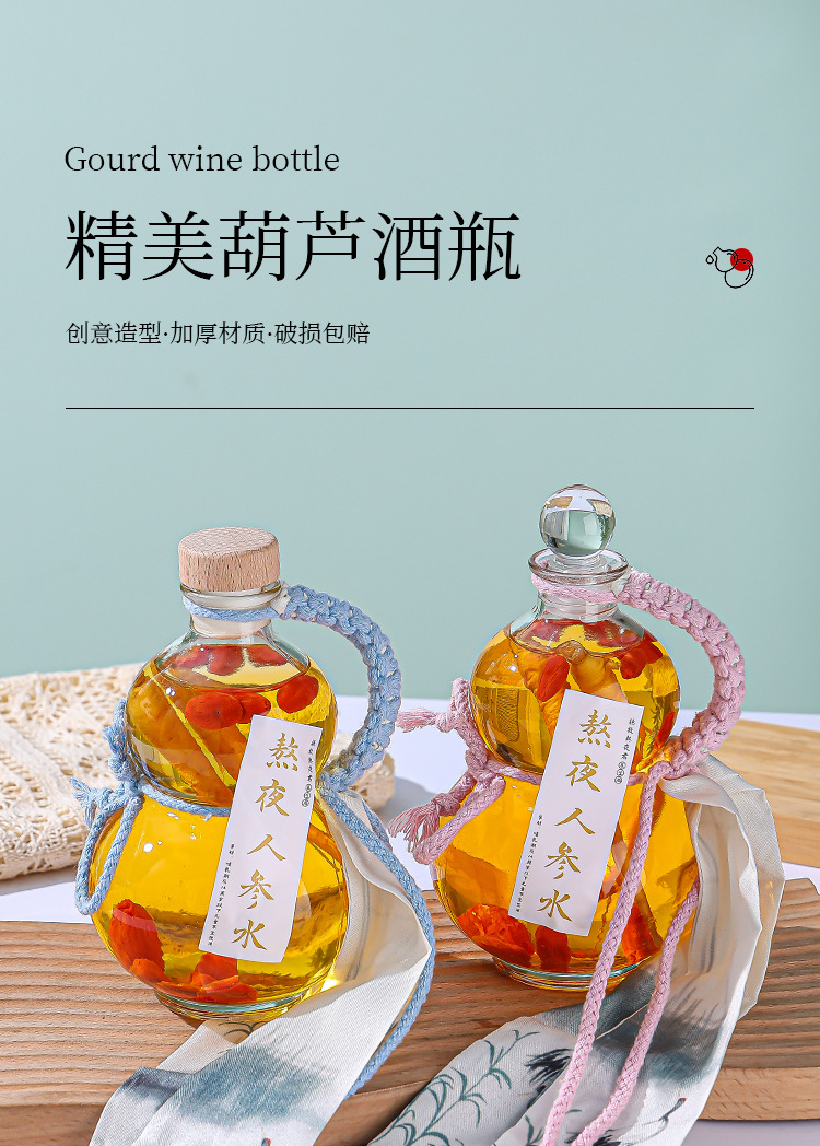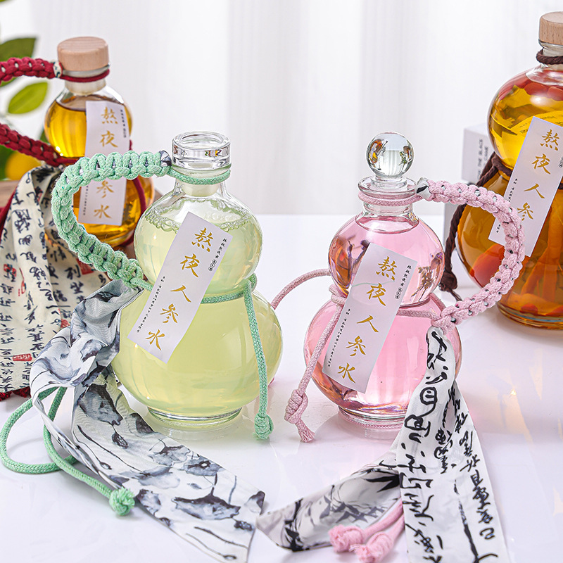 新品金葫芦瓶500ml玻璃瓶奶茶瓶景点专用瓶玻璃酒瓶可印刷logo