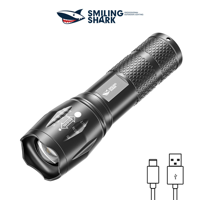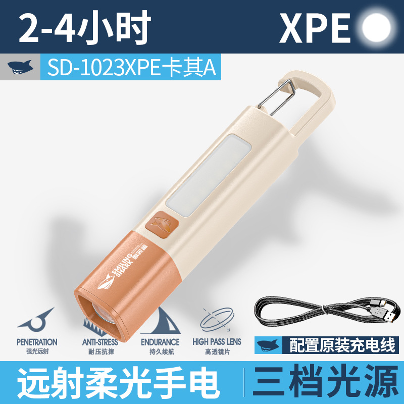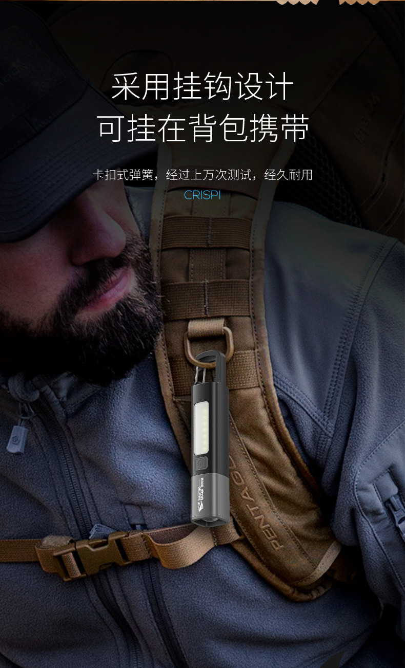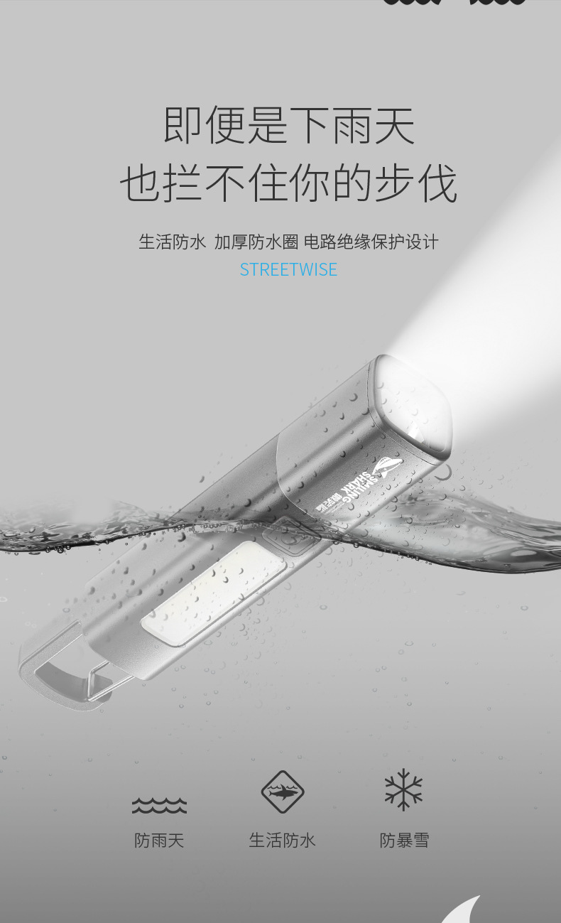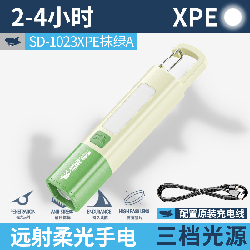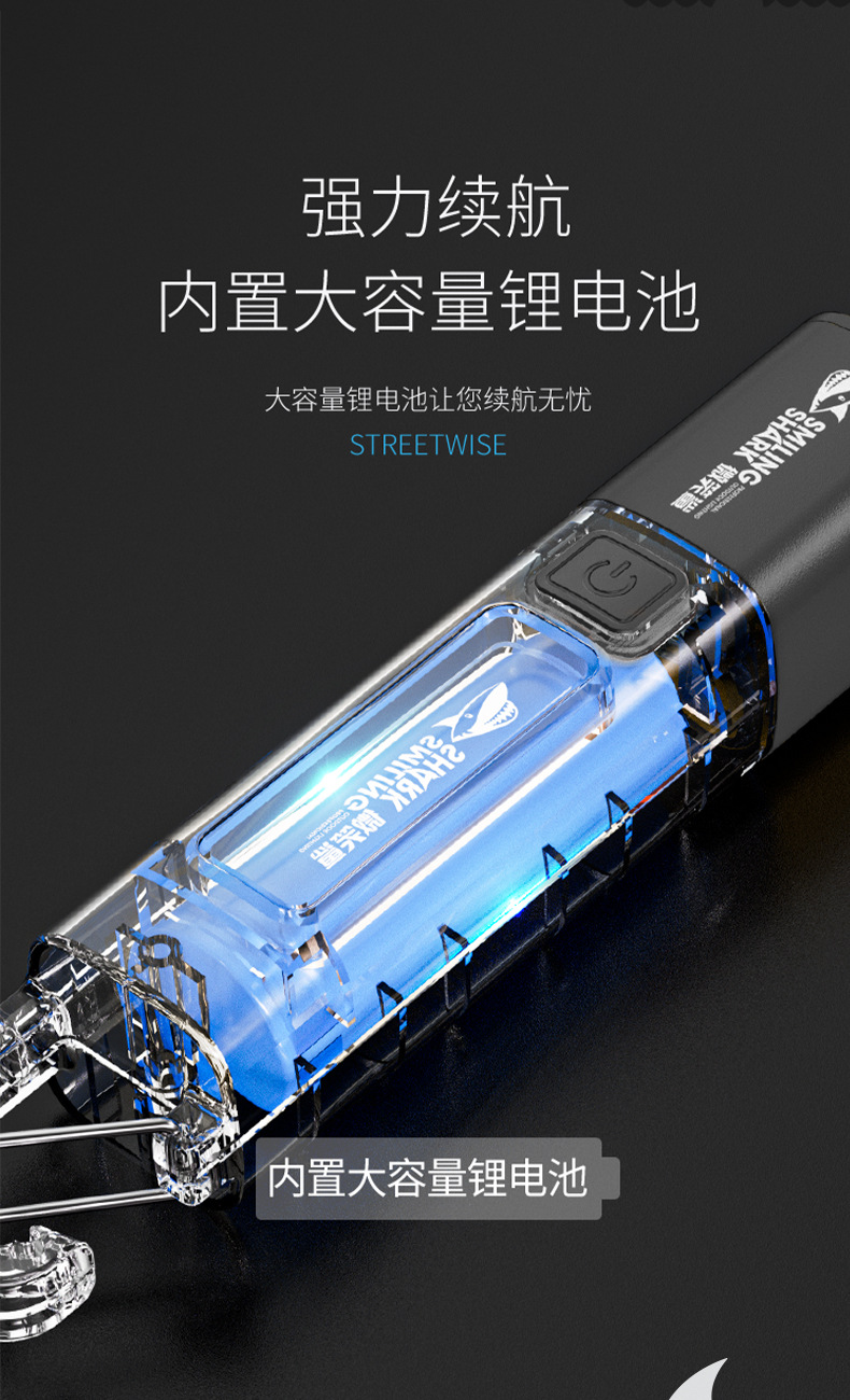 微笑鲨户外露营照明手电筒变焦远射COB泛光侧灯挂钩锁扣设计便携