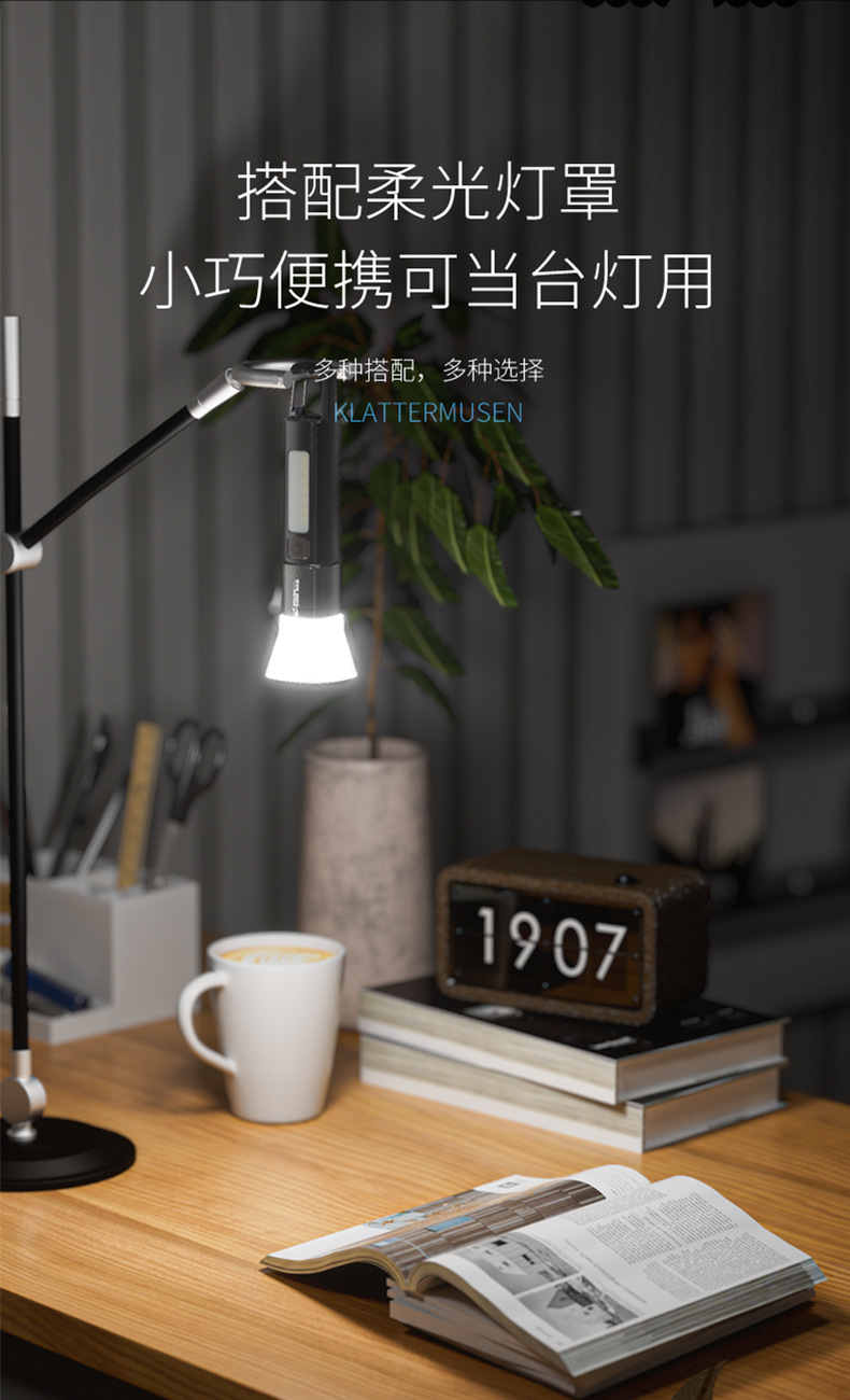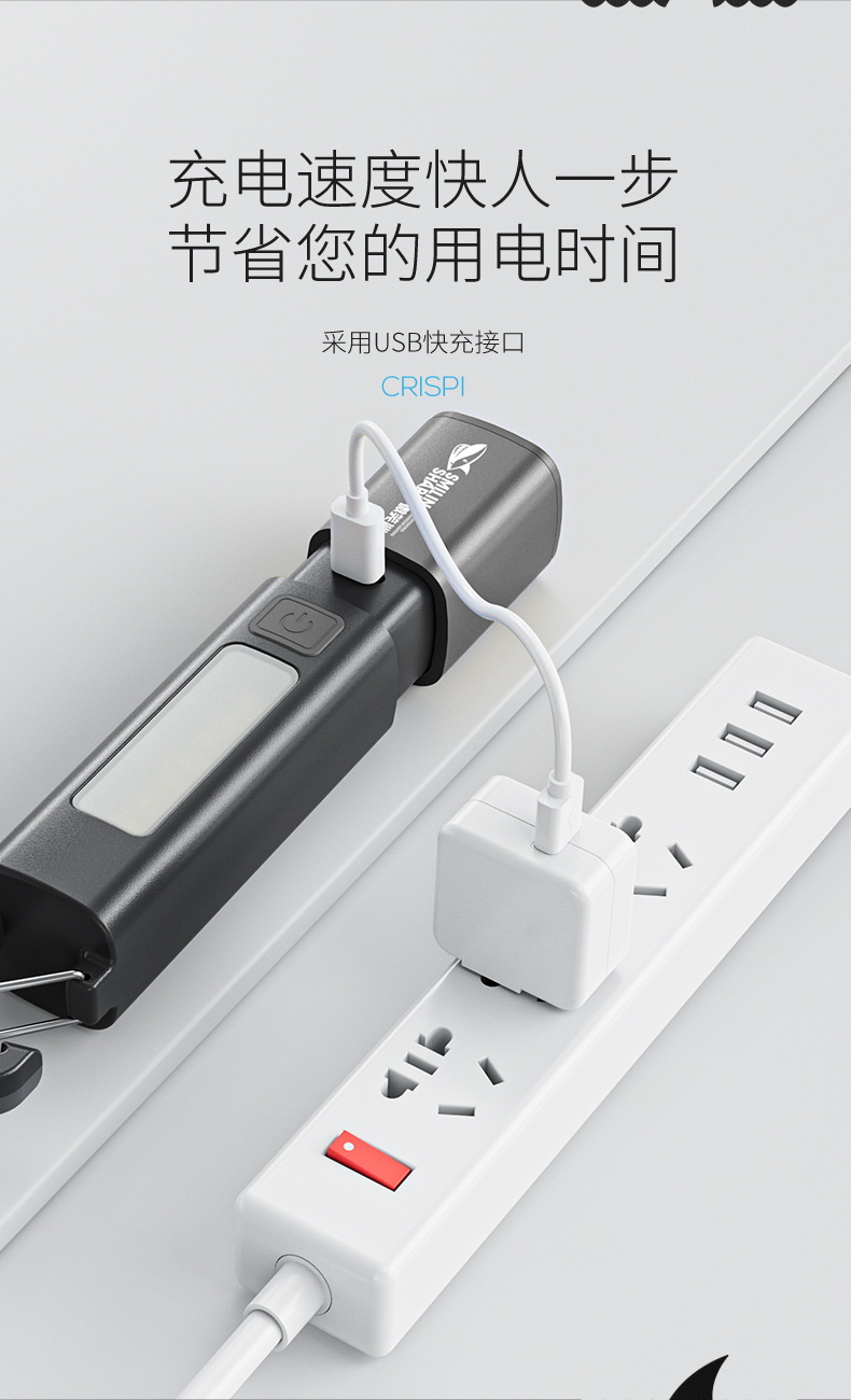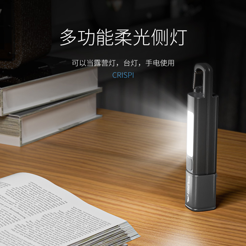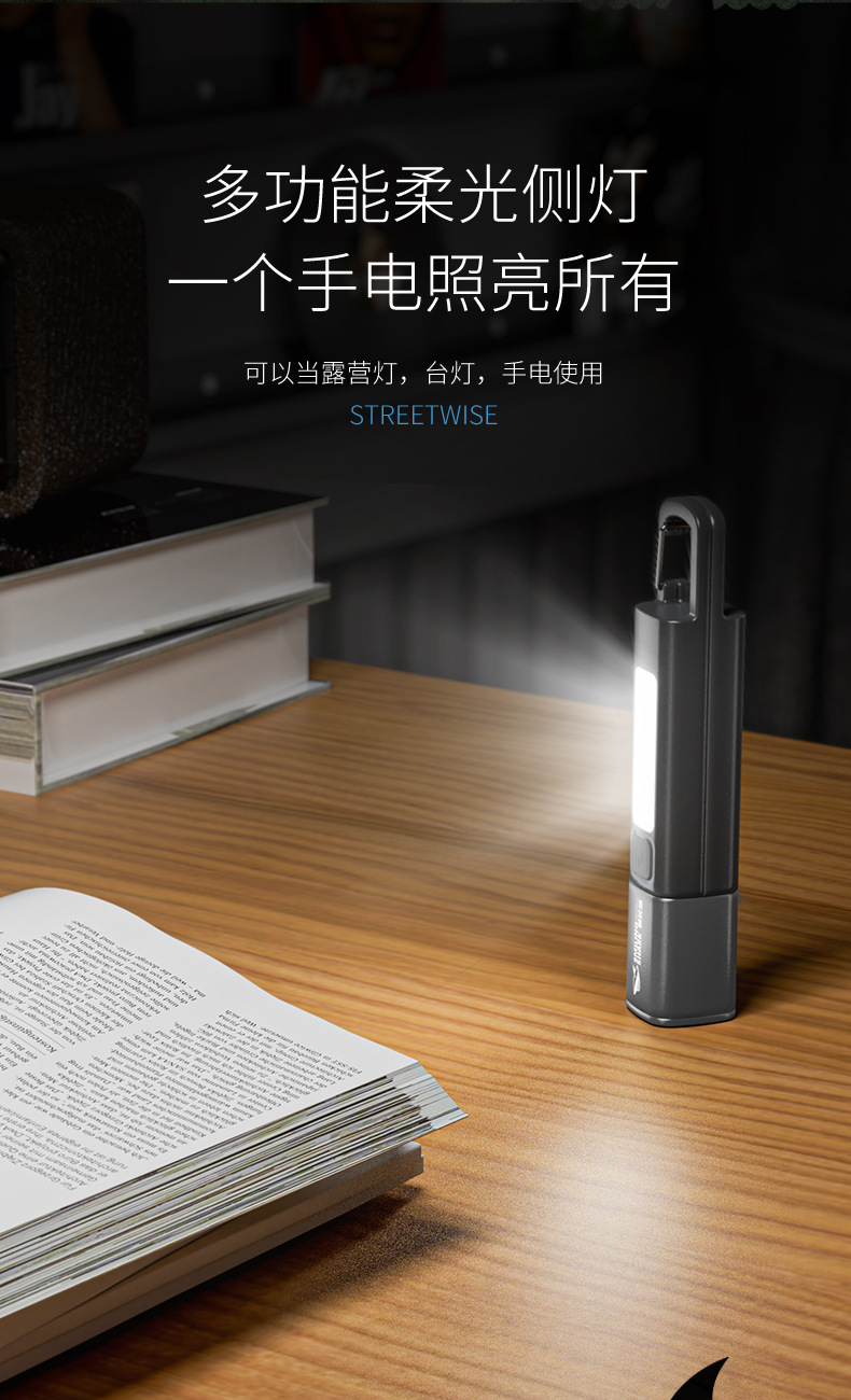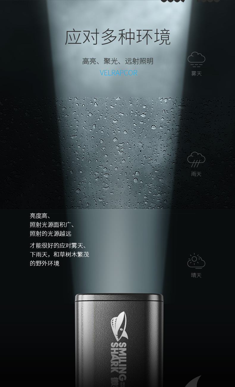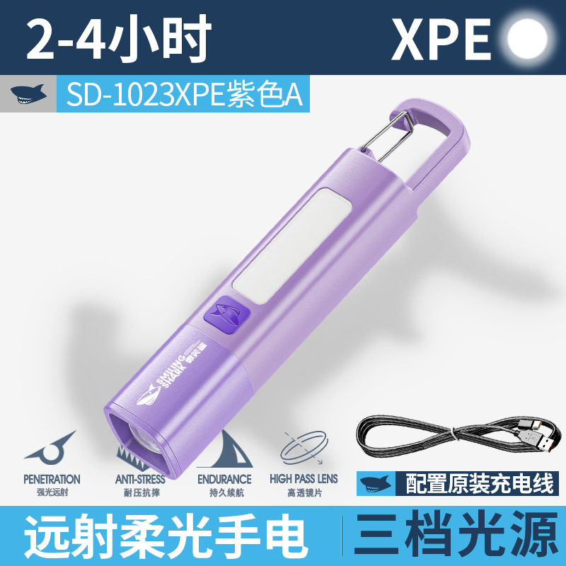 微笑鲨户外露营照明手电筒变焦远射COB泛光侧灯挂钩锁扣设计便携