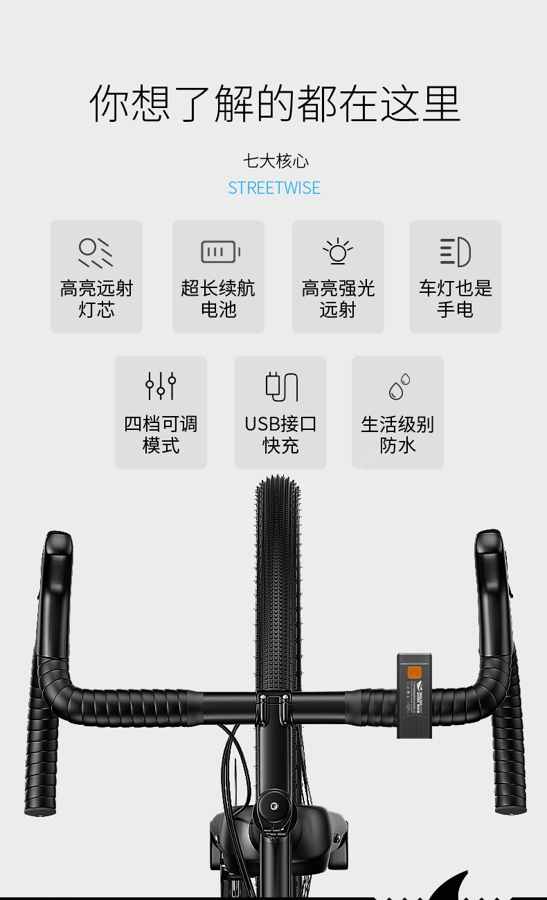 微笑鲨户外照明自行车夜骑灯强光手电筒单车灯前灯骑行装备