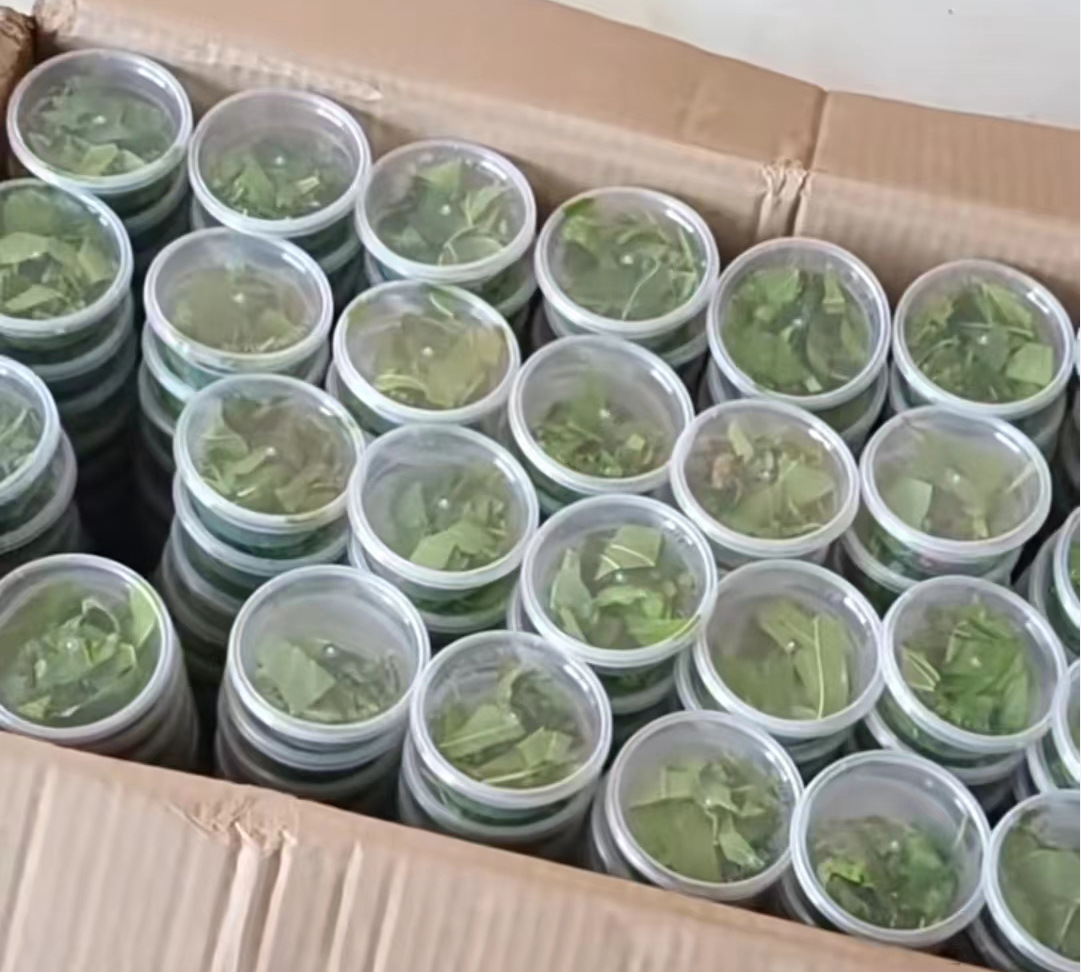 每份是10条小蚕+1个小喂养盒,配路上运输桑叶,不另外配桑叶。