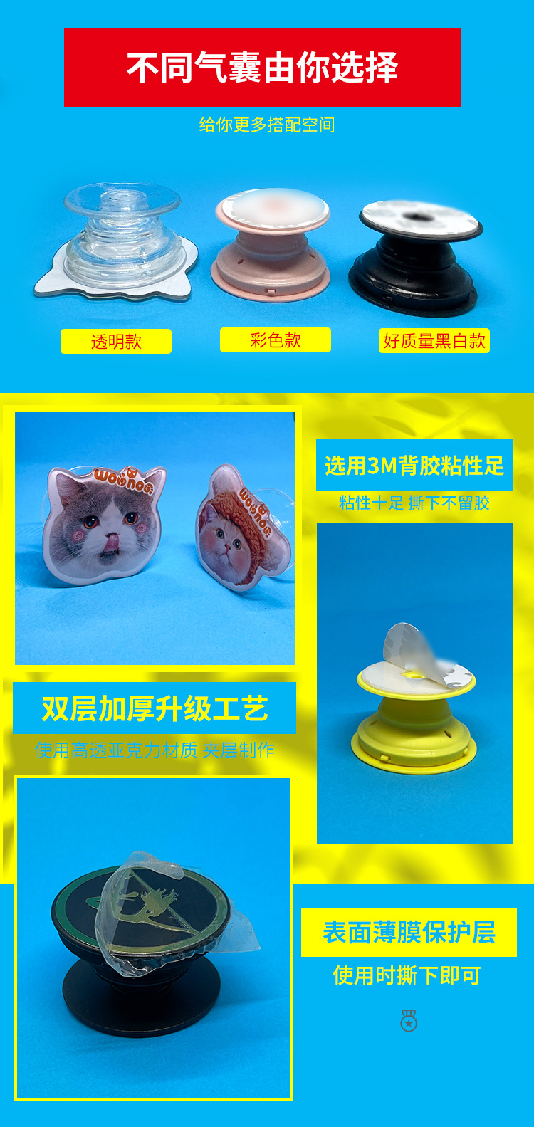 爆款手机气囊支架彩绘印刷亚克力滴胶手机气囊支架POP气囊支架
