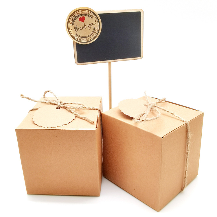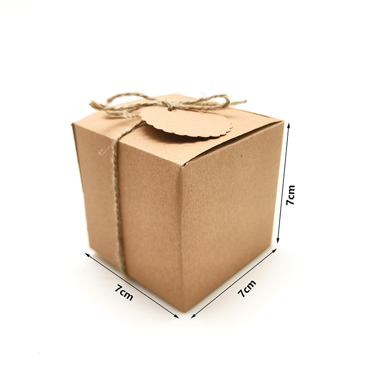 欧式正方形7*7*7年皮纸礼盒婚庆用品喜糖盒带麻绳吊牌