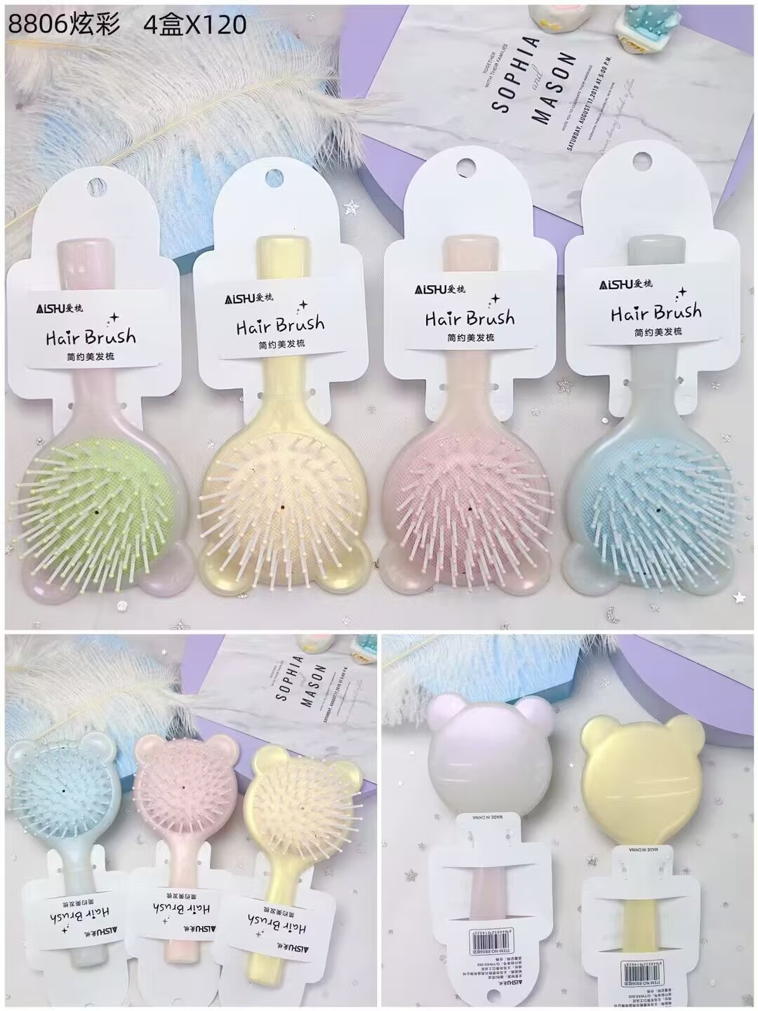 新款奶茶色彩色气垫气囊 按摩梳 半圆头大板美发梳子卡通气囊梳子