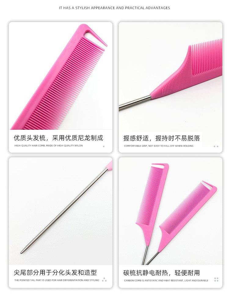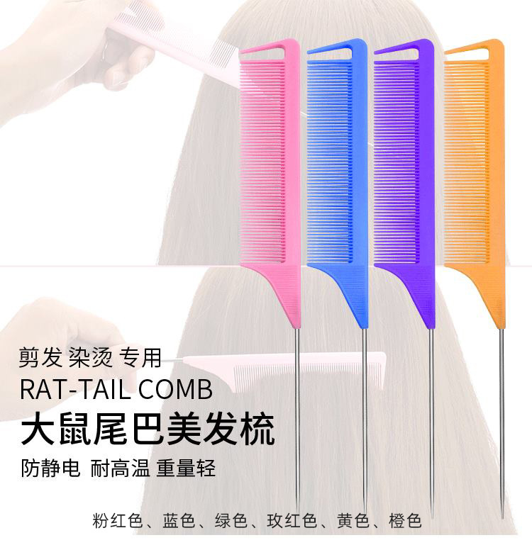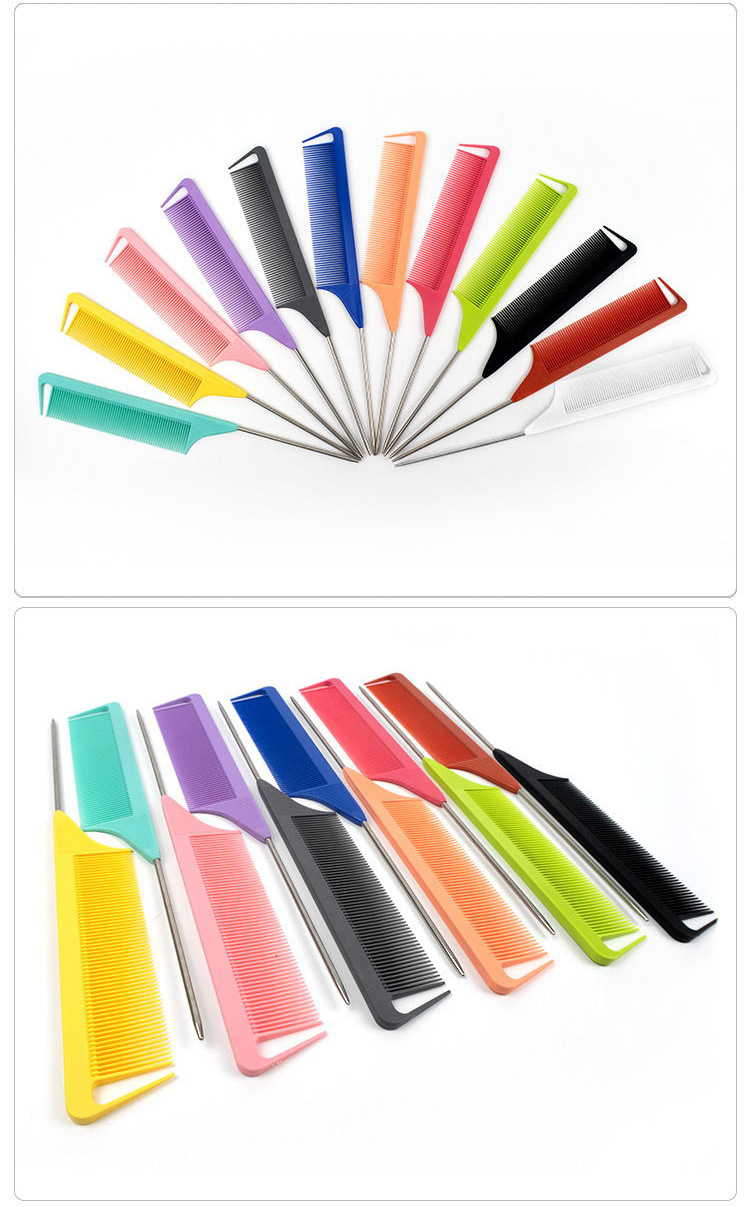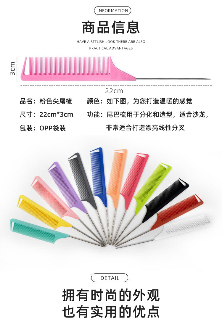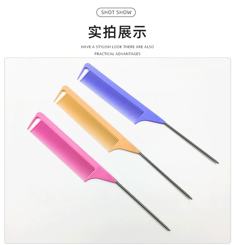 美发尖尾梳子铁尾钢尾挑发梳理发师彩虹剪发梳打毛梳子