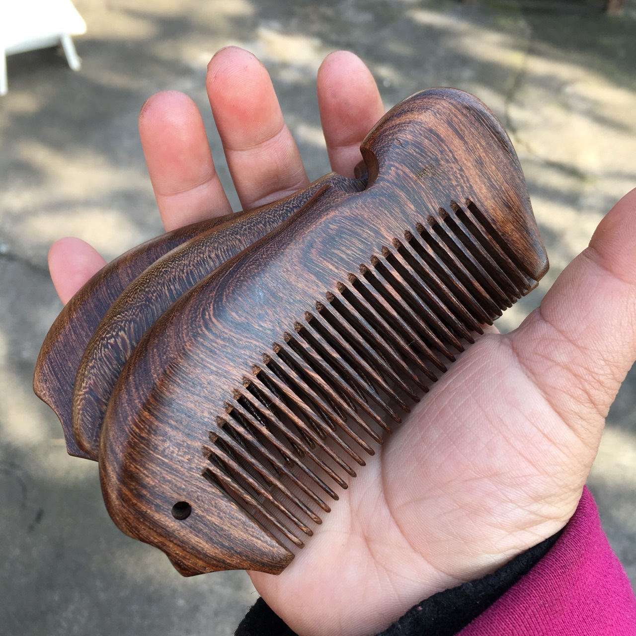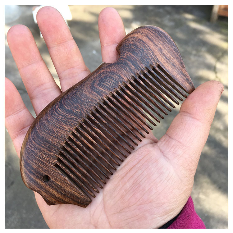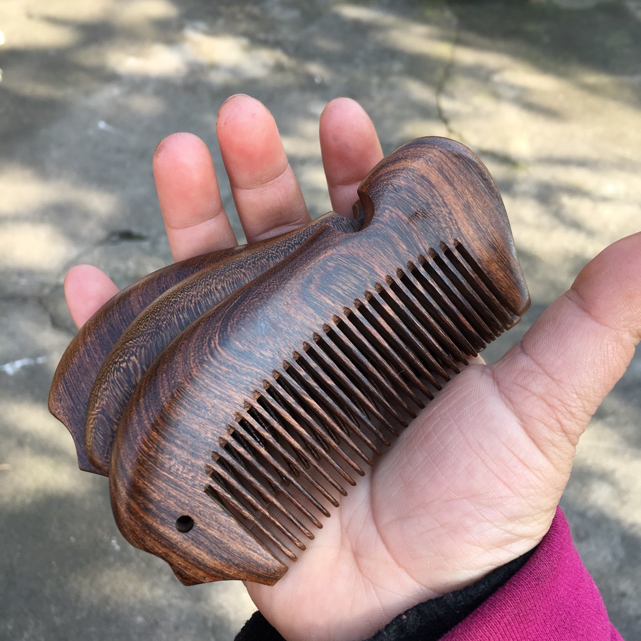 加厚黑金檀鱼梳子整木金丝檀多功能经络美发梳檀儿童礼品梳批发
