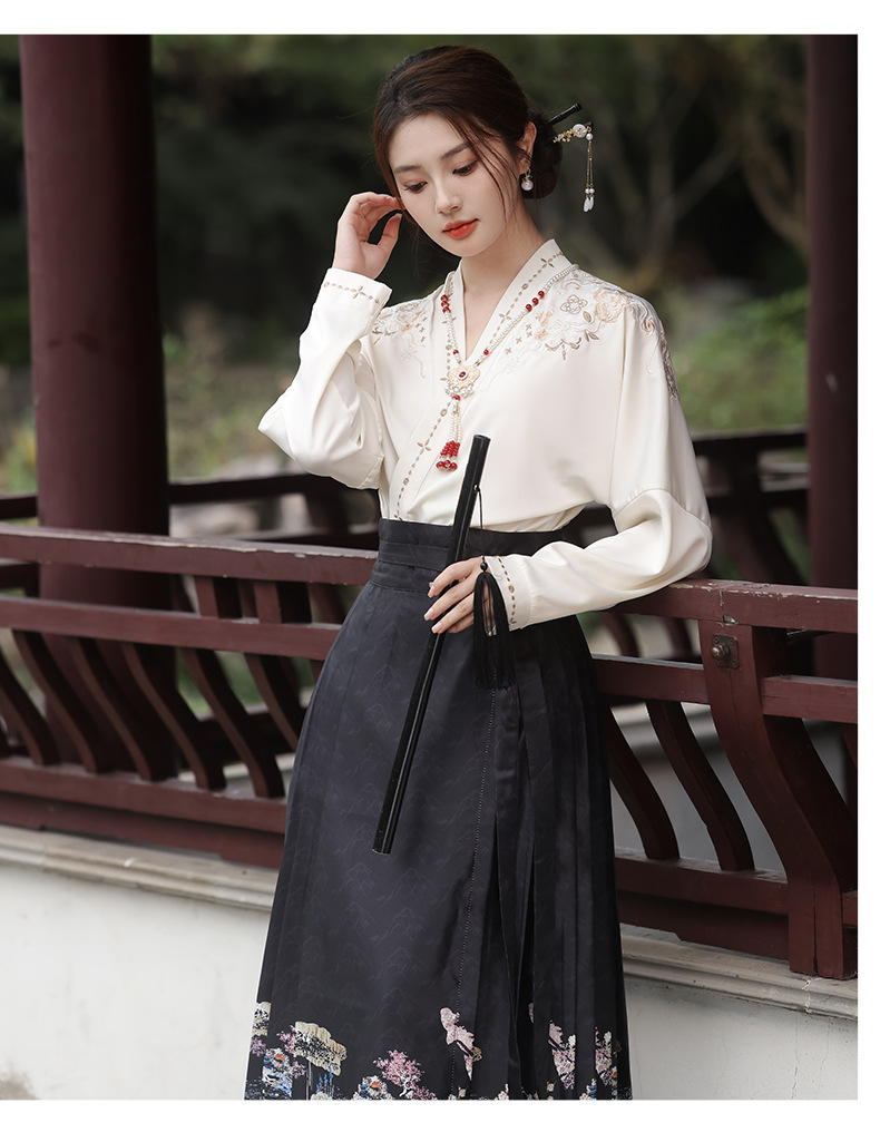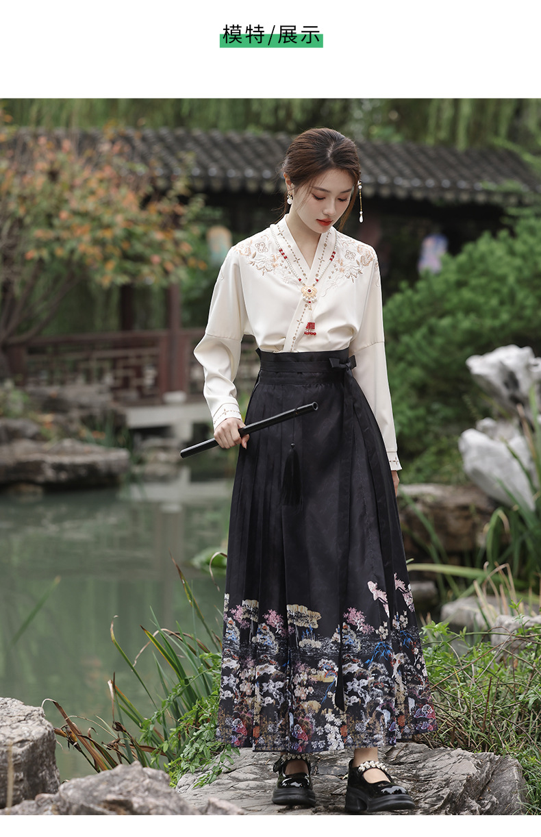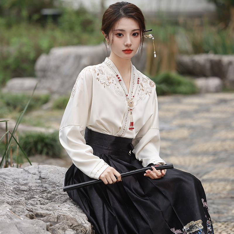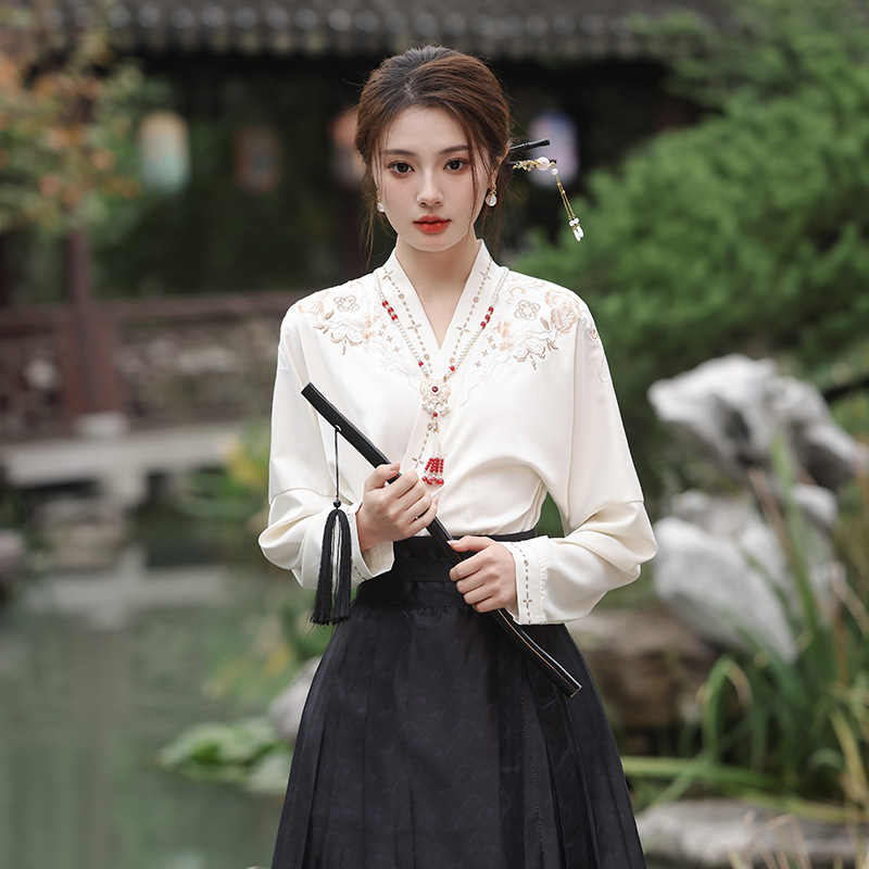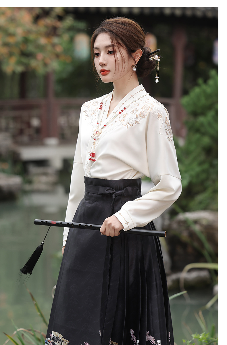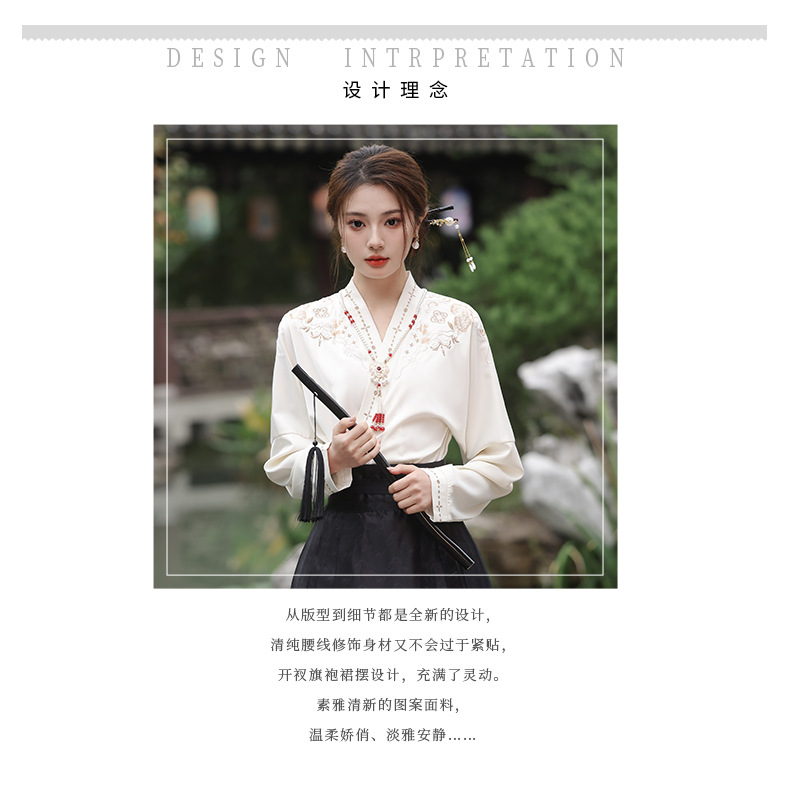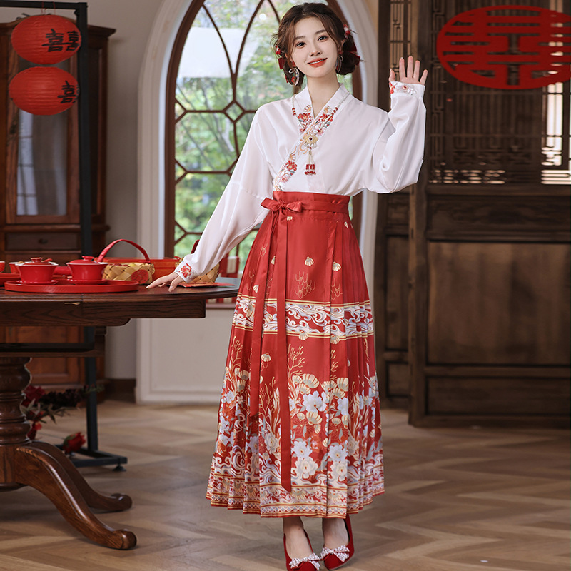 2025新款新中式中国风改良汉服日常一片式系带马面裙绣花上衣套装