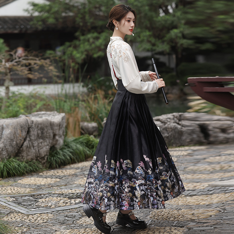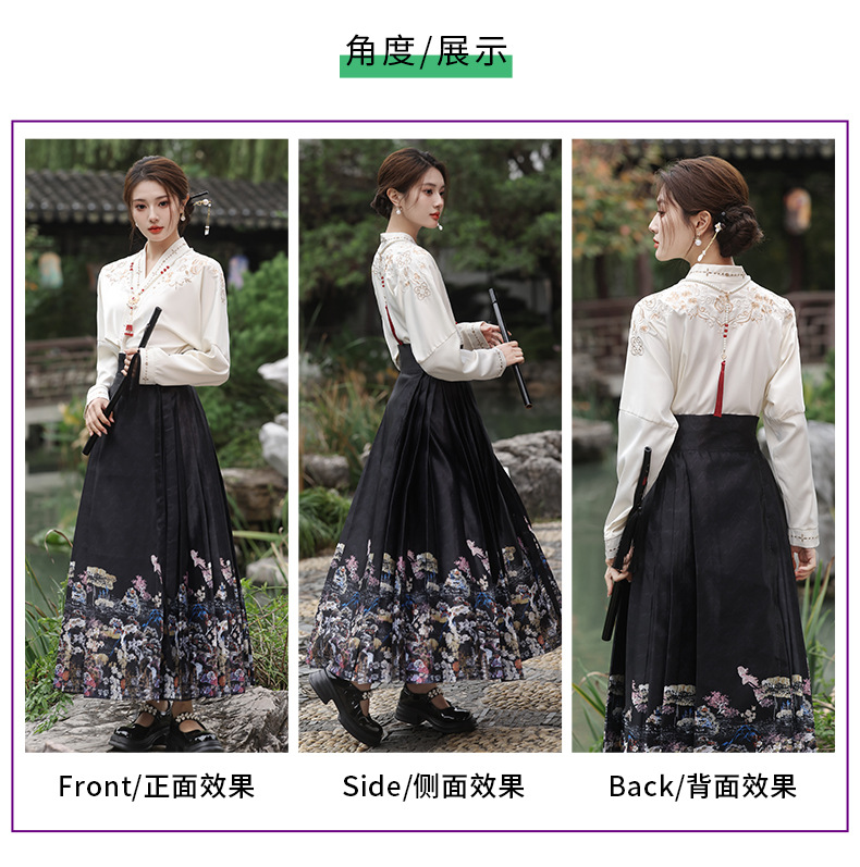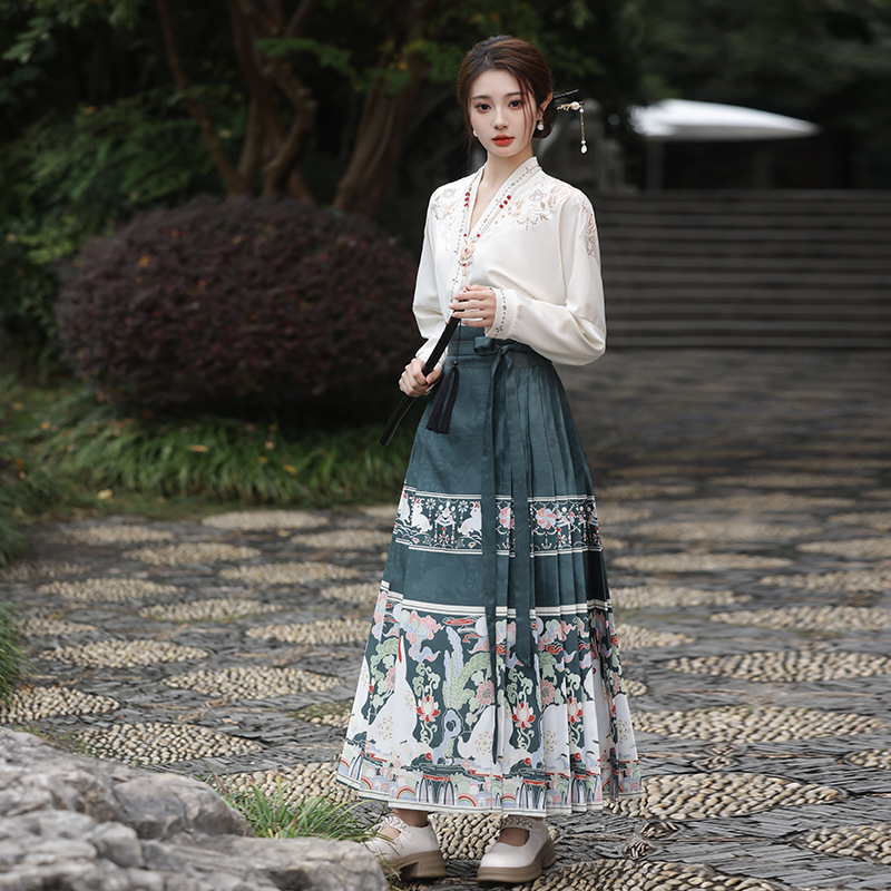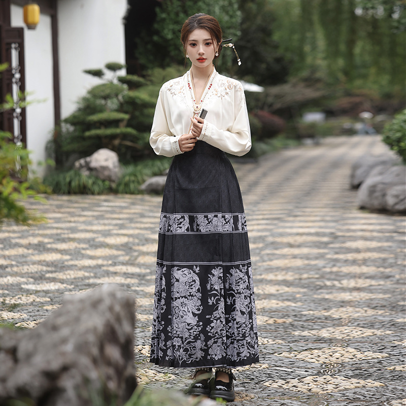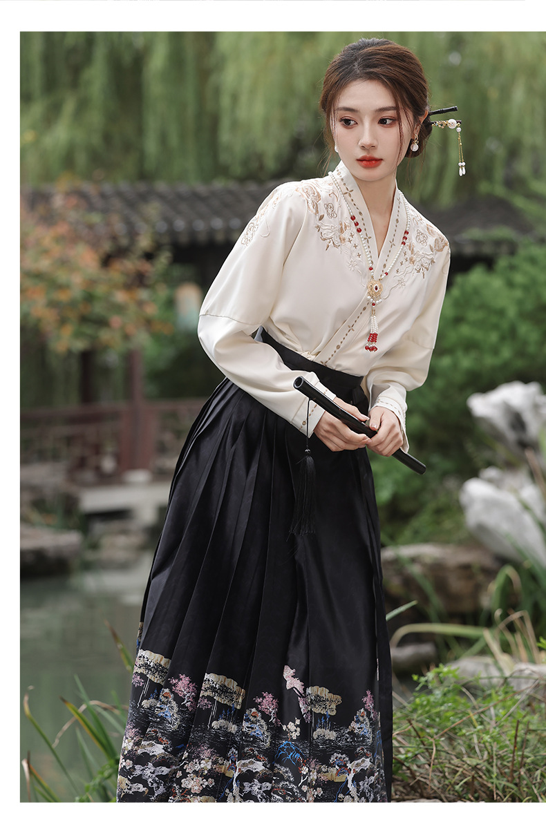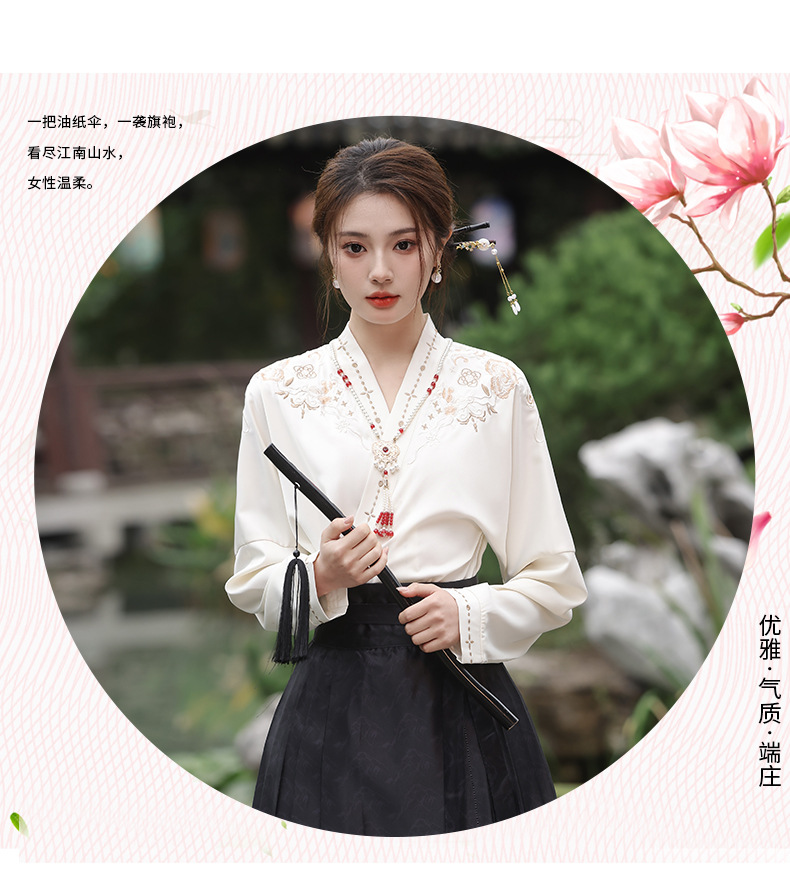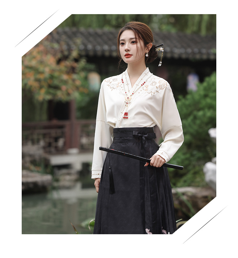 2025新款新中式中国风改良汉服日常一片式系带马面裙绣花上衣套装
