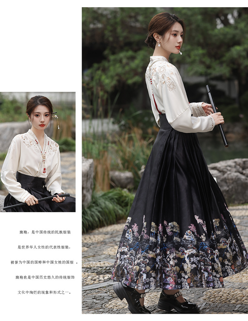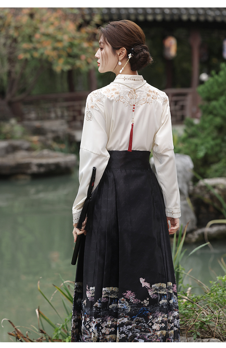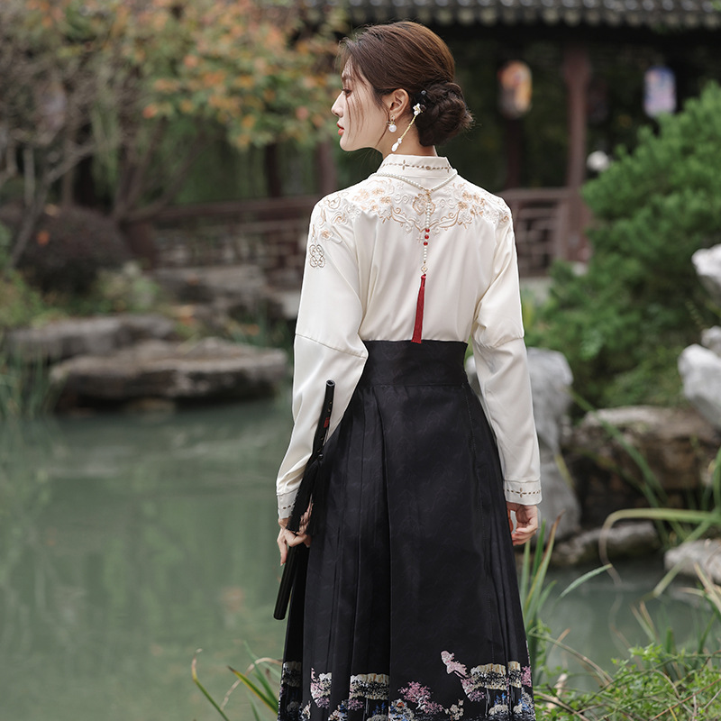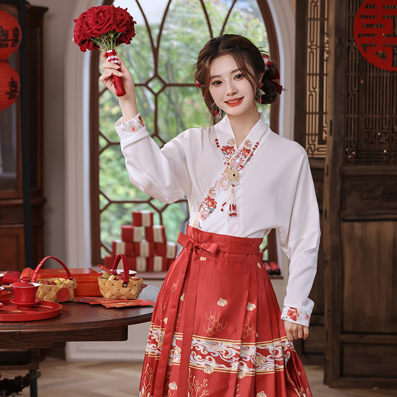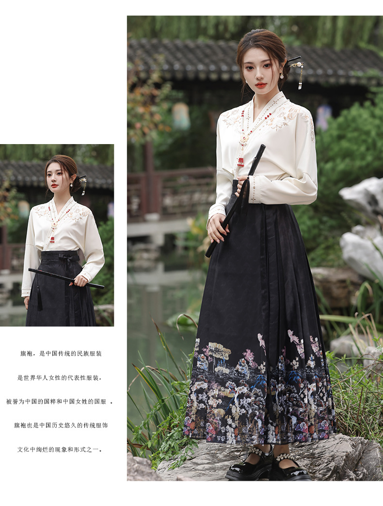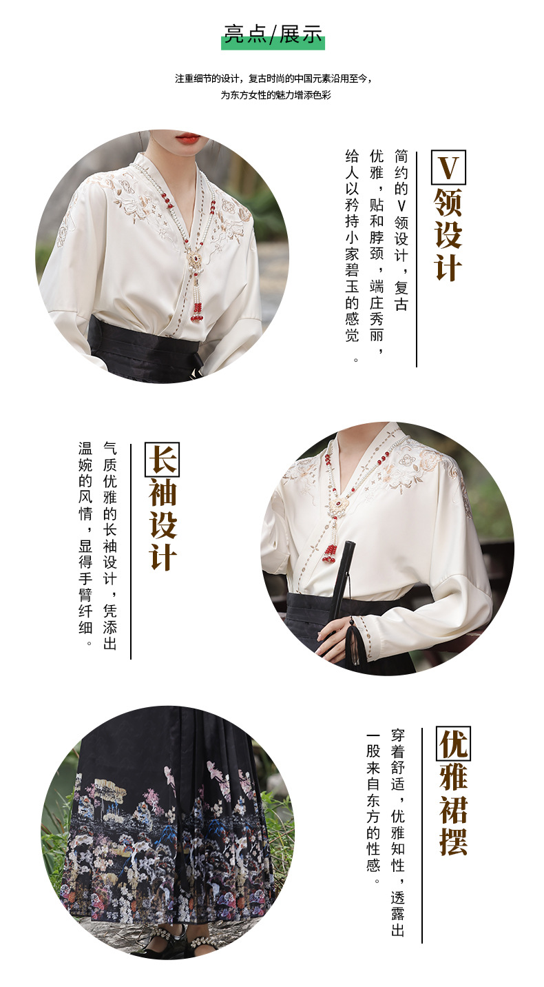 2025新款新中式中国风改良汉服日常一片式系带马面裙绣花上衣套装
